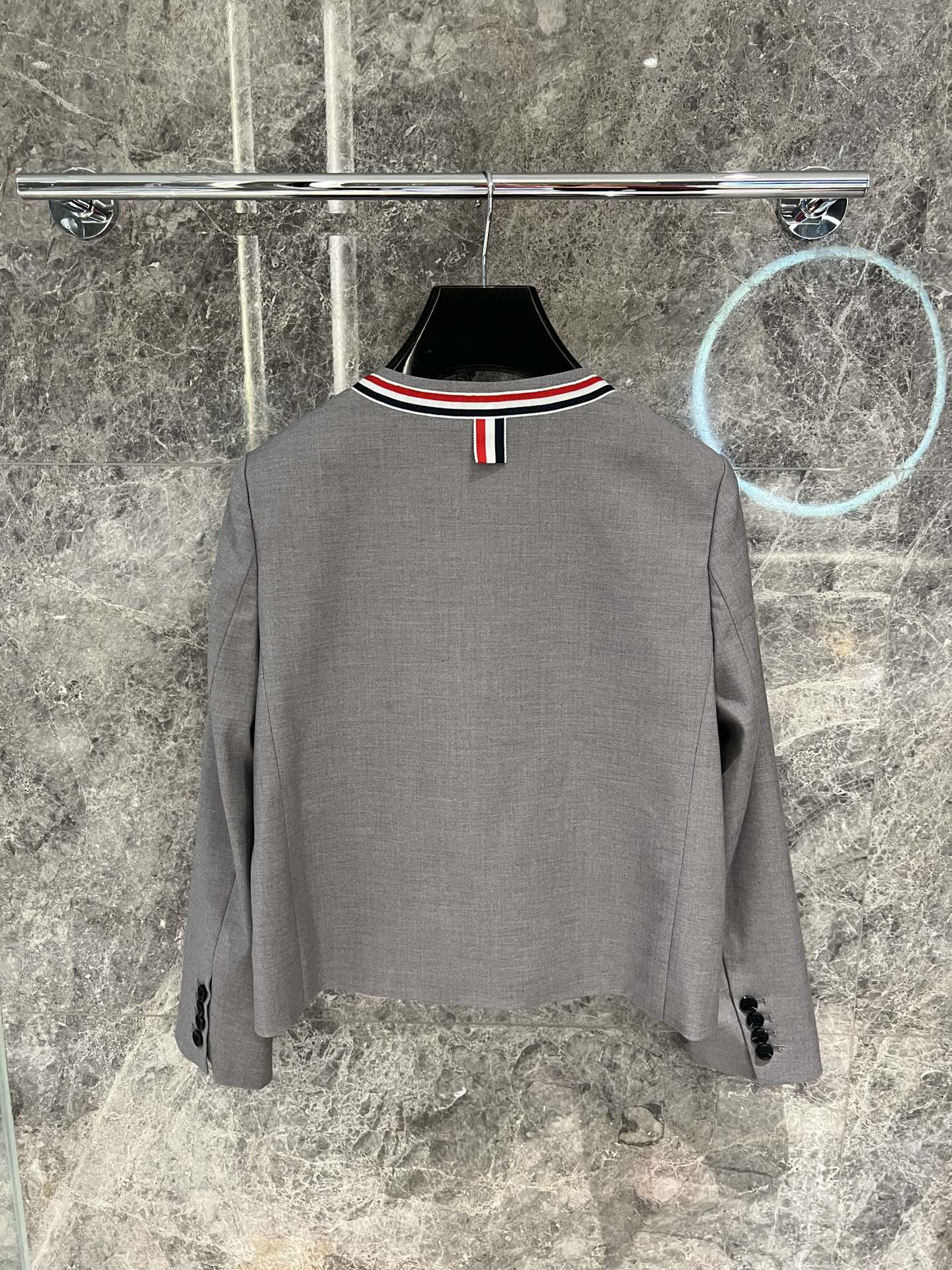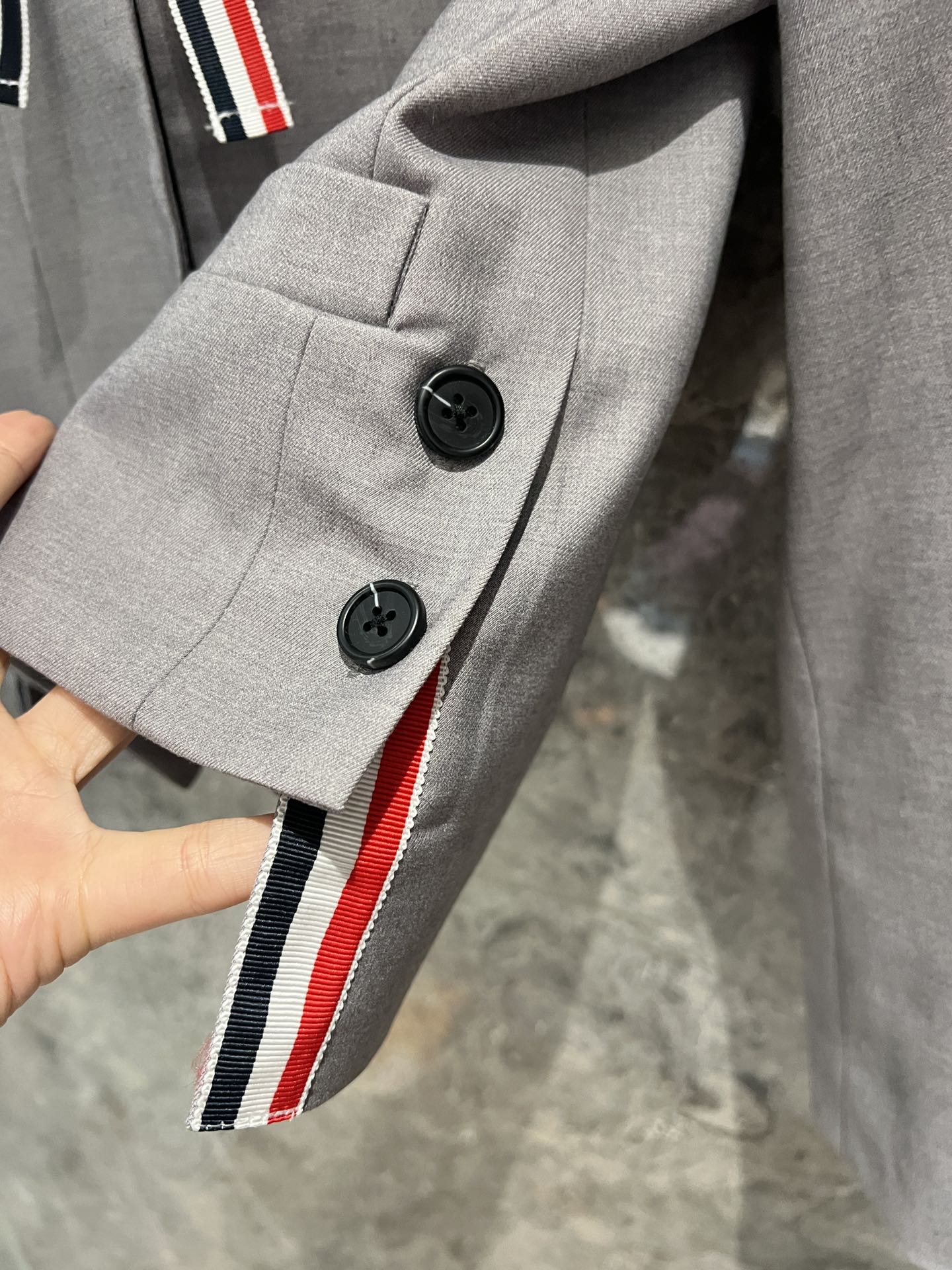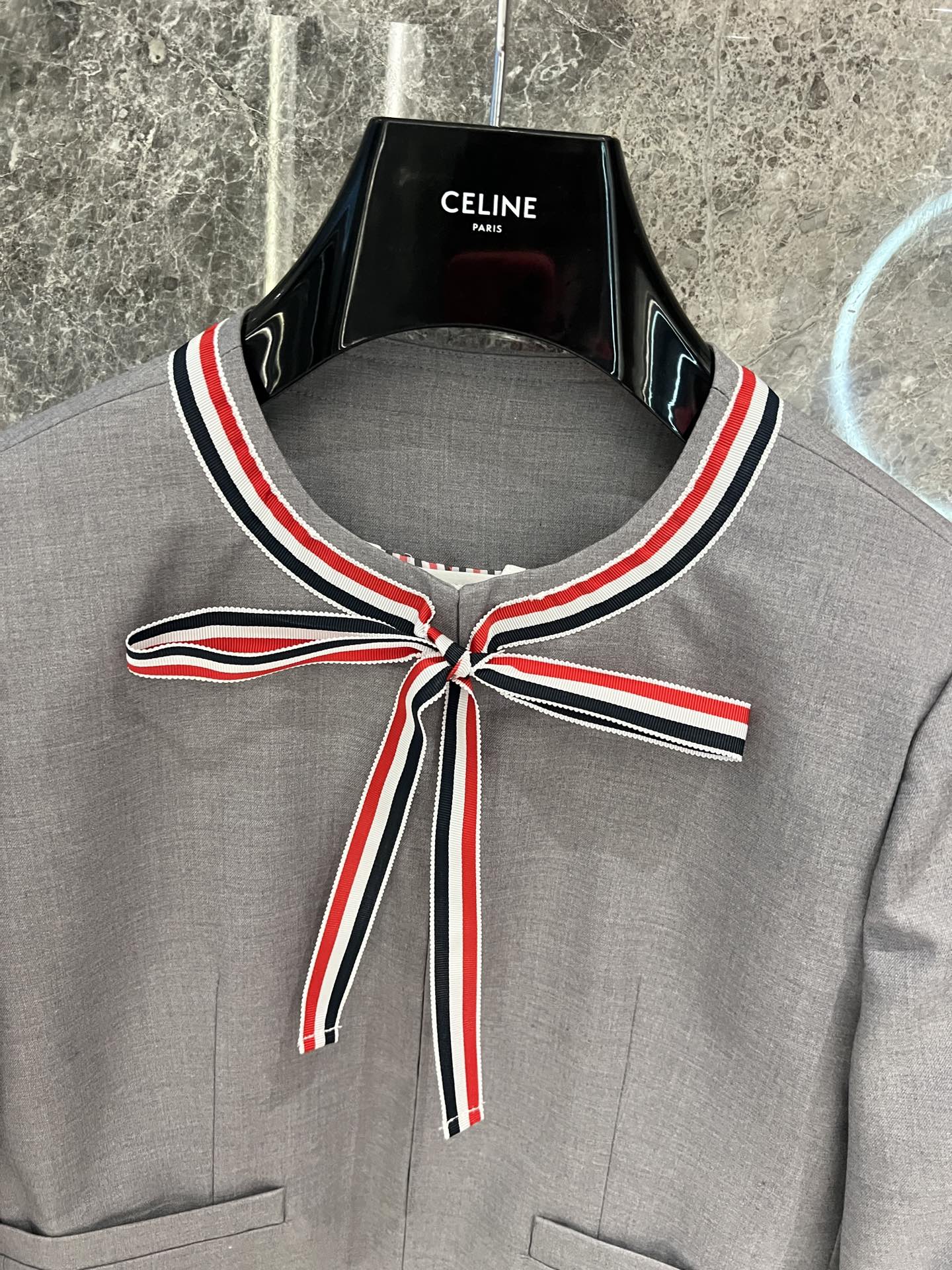 这款衣服是AAAAA 1:1 质量 (非常棒). 使用了和原版一模一样的材料. 商标部分也保持了和汤姆布朗/Thom Browne一样. 图片拍摄是实物衣服拍摄, 您所收到的实物保证和我们图片一模一样.
