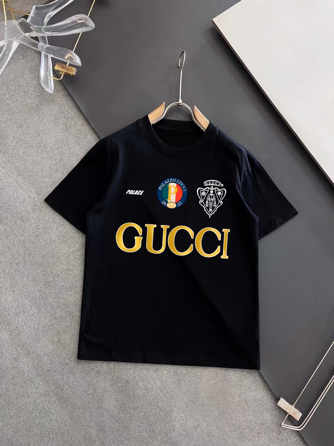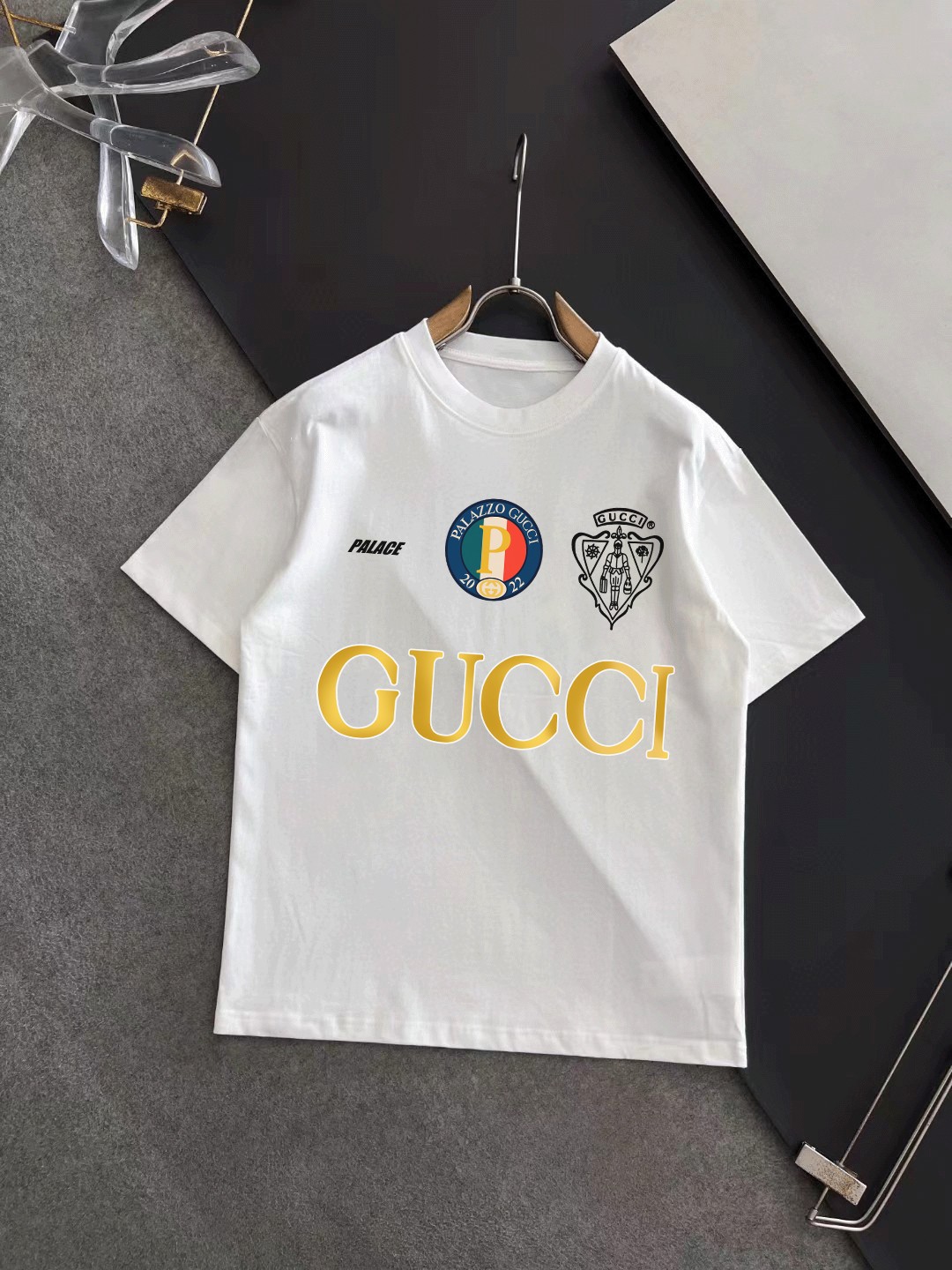 这款衣服是AAAAA 1:1 质量 (非常棒). 使用了和原版一模一样的材料. 商标部分也保持了和古奇/Gucci一样. 图片拍摄是实物衣服拍摄, 您所收到的实物保证和我们图片一模一样.