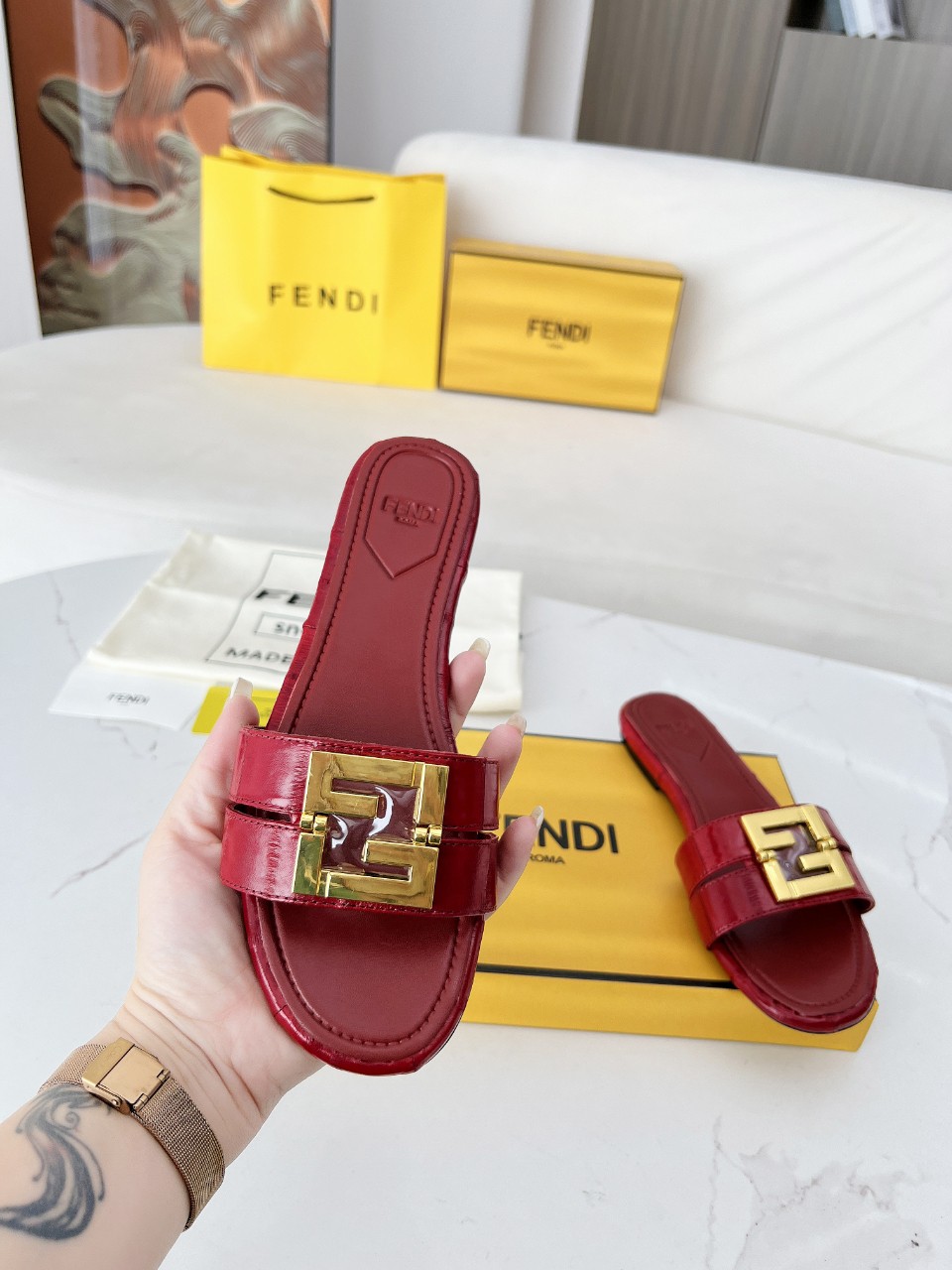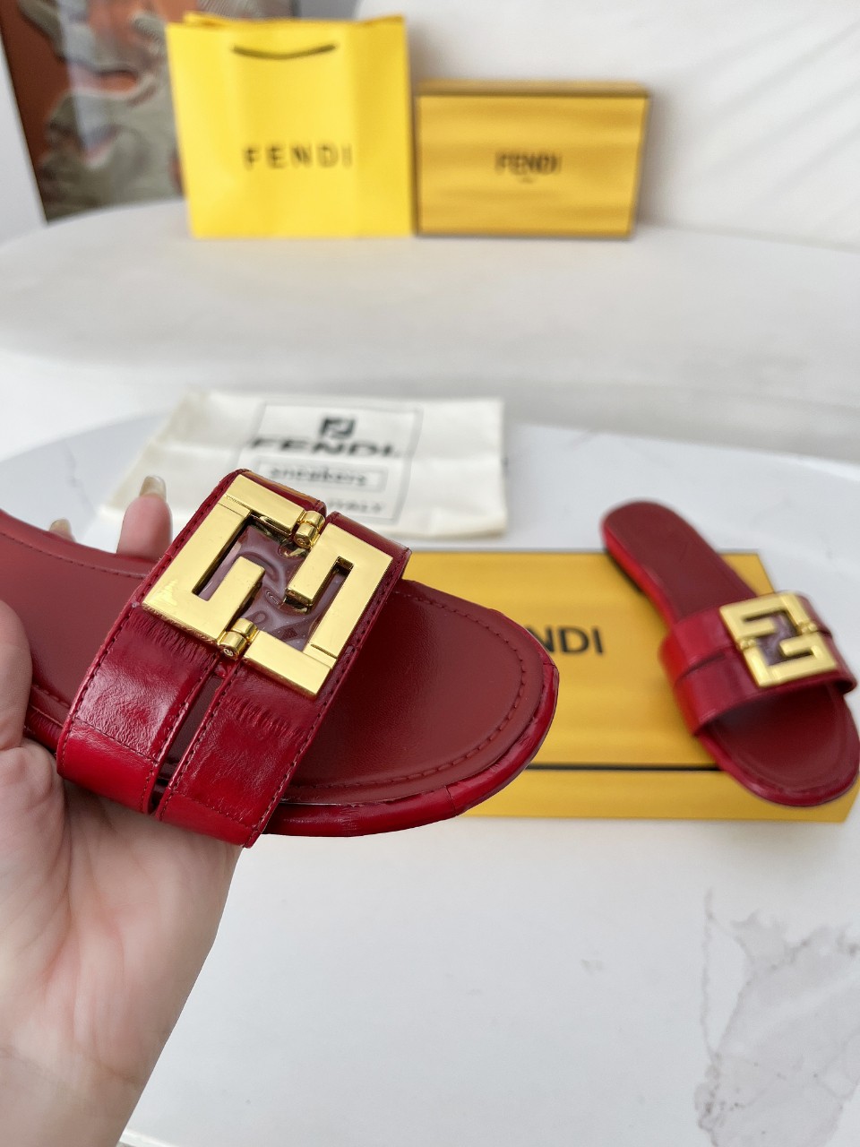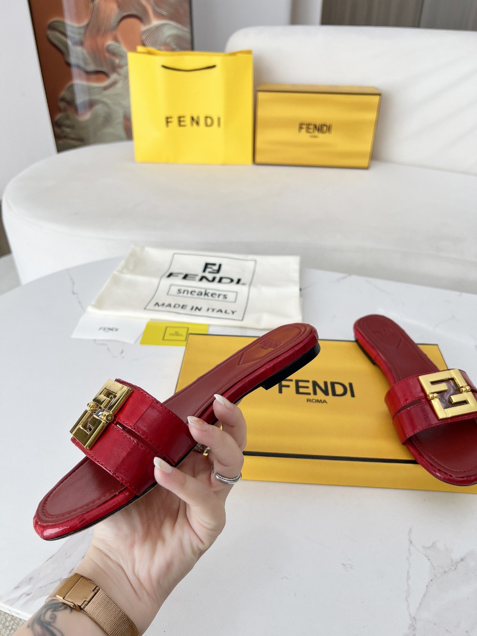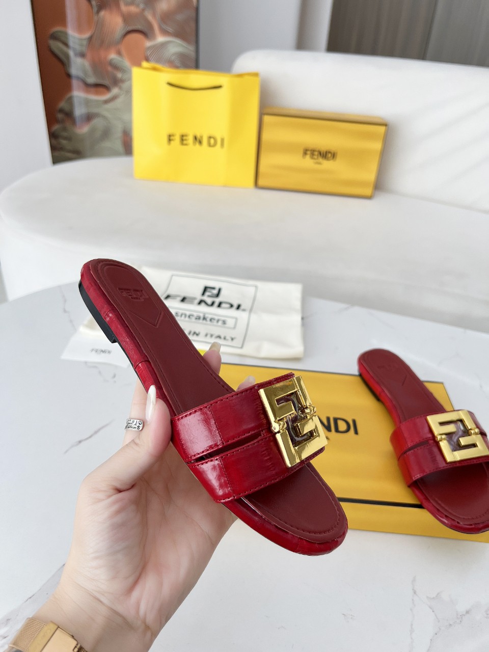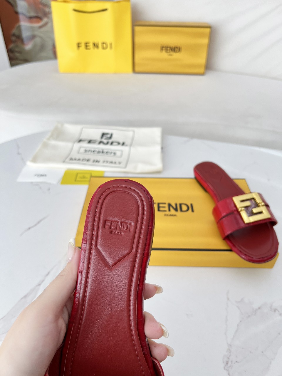 这款鞋子是AAAAA 1:1 质量 (非常棒). 使用了和原版一模一样的材料. 商标部分也保持了和芬迪/Fendi一样. 图片拍摄是实物鞋子拍摄, 您所收到的实物保证和我们图片一模一样.