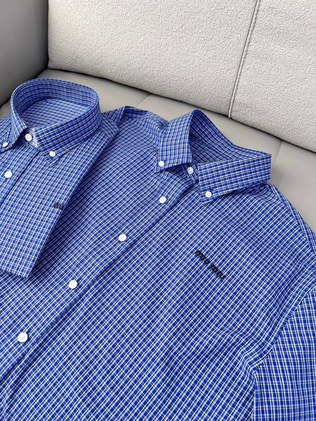 这款衣服是AAAAA 1:1 质量 (非常棒). 使用了和原版一模一样的材料. 商标部分也保持了和缪缪/Miu Miu一样. 图片拍摄是实物衣服拍摄, 您所收到的实物保证和我们图片一模一样.