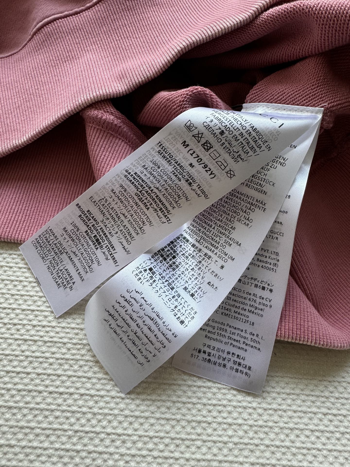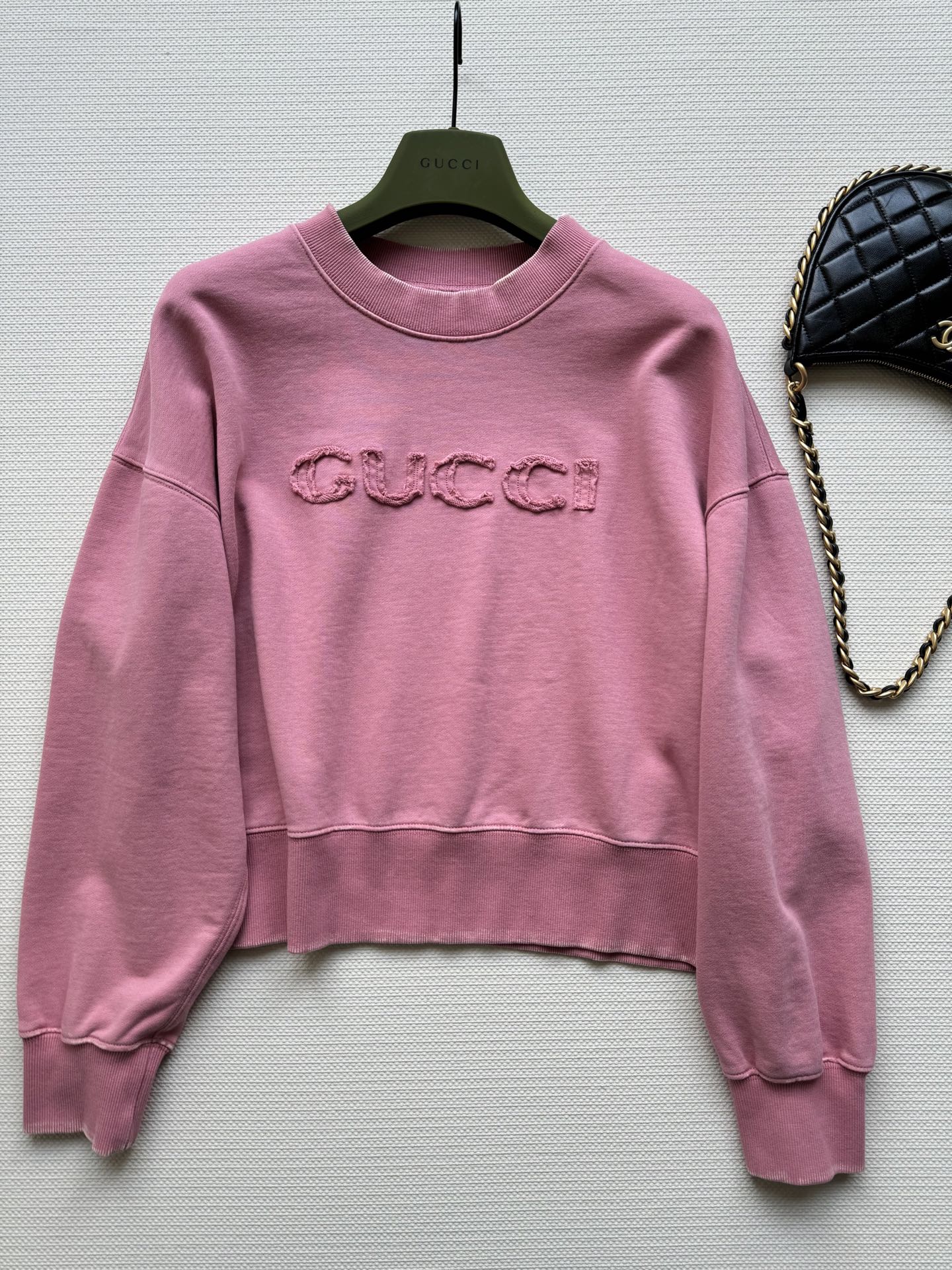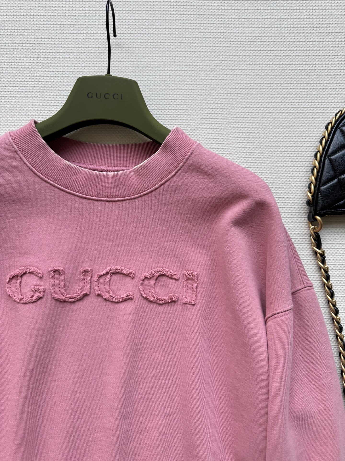 这款衣服是AAAAA 1:1 质量 (非常棒). 使用了和原版一模一样的材料. 商标部分也保持了和古奇/Gucci一样. 图片拍摄是实物衣服拍摄, 您所收到的实物保证和我们图片一模一样.