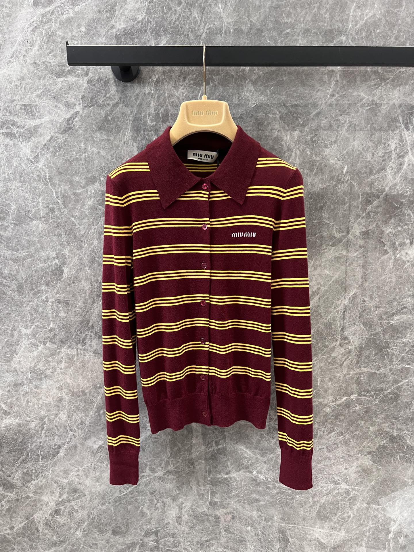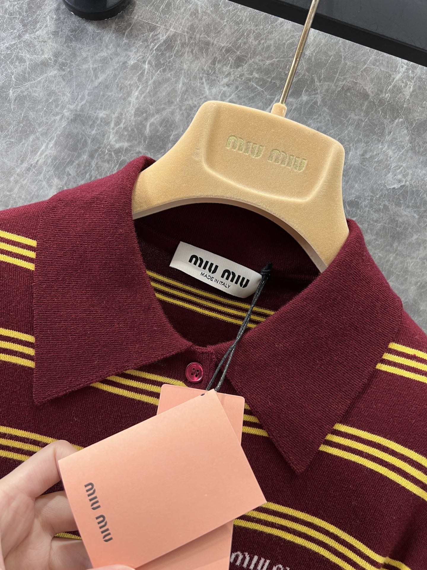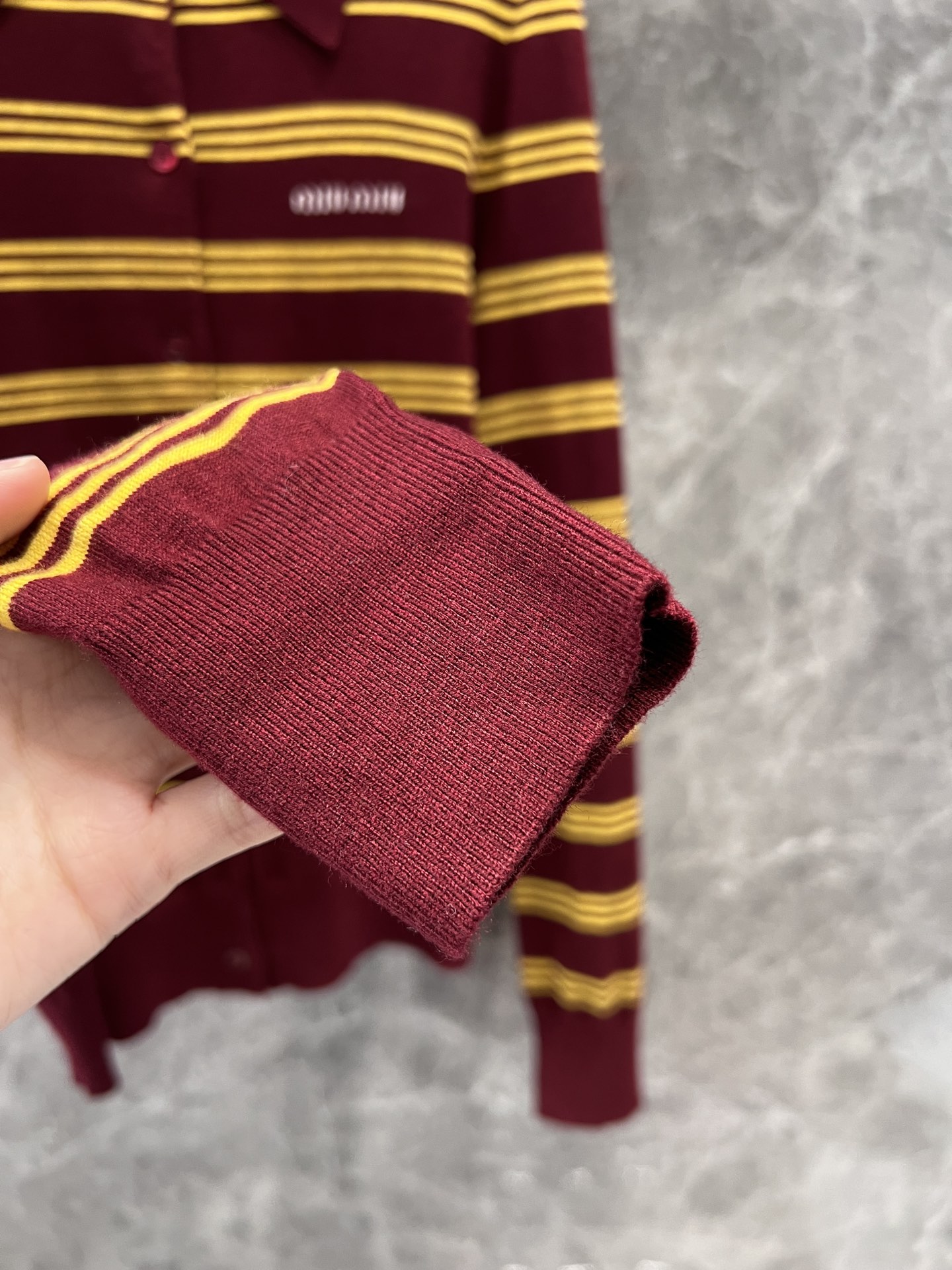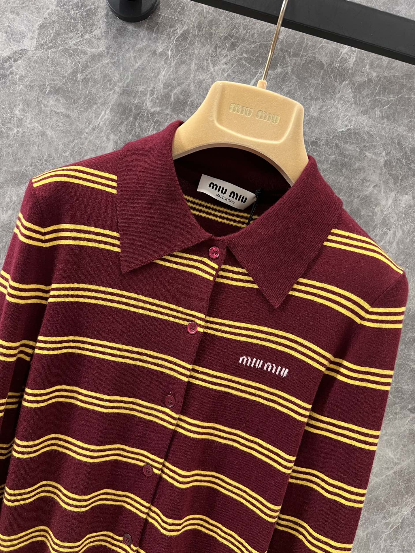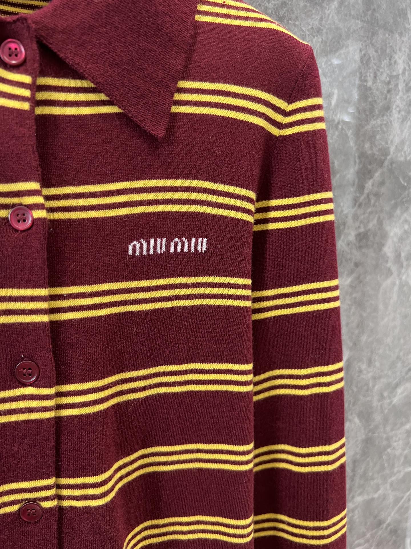 这款衣服是AAAAA 1:1 质量 (非常棒). 使用了和原版一模一样的材料. 商标部分也保持了和缪缪/Miu Miu一样. 图片拍摄是实物衣服拍摄, 您所收到的实物保证和我们图片一模一样.