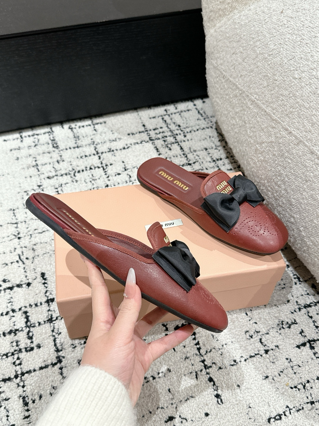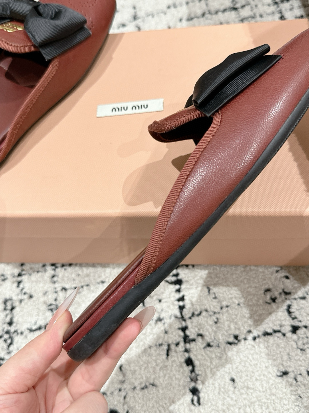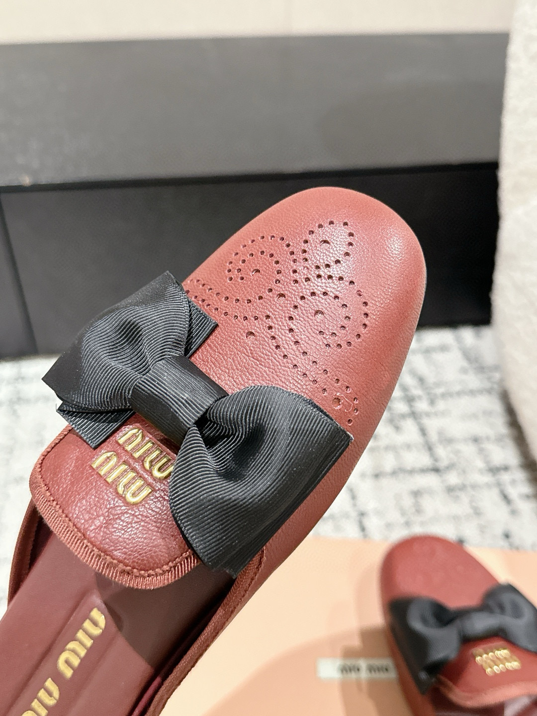 这款鞋子是AAAAA 1:1 质量 (非常棒). 使用了和原版一模一样的材料. 商标部分也保持了和缪缪/Miu Miu一样. 图片拍摄是实物鞋子拍摄, 您所收到的实物保证和我们图片一模一样.