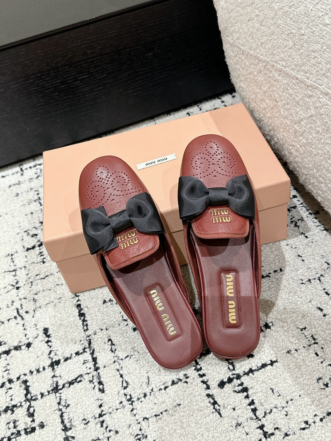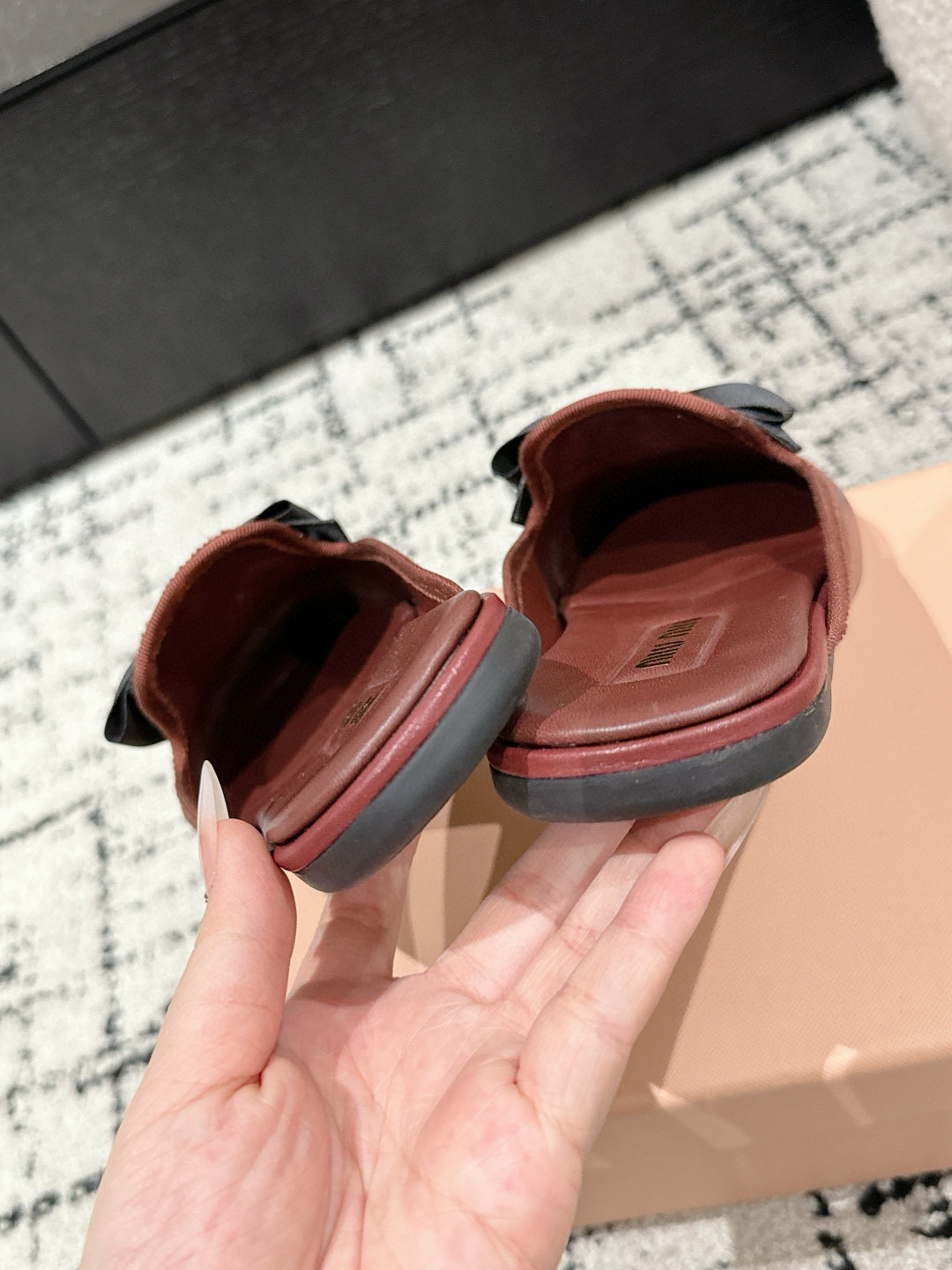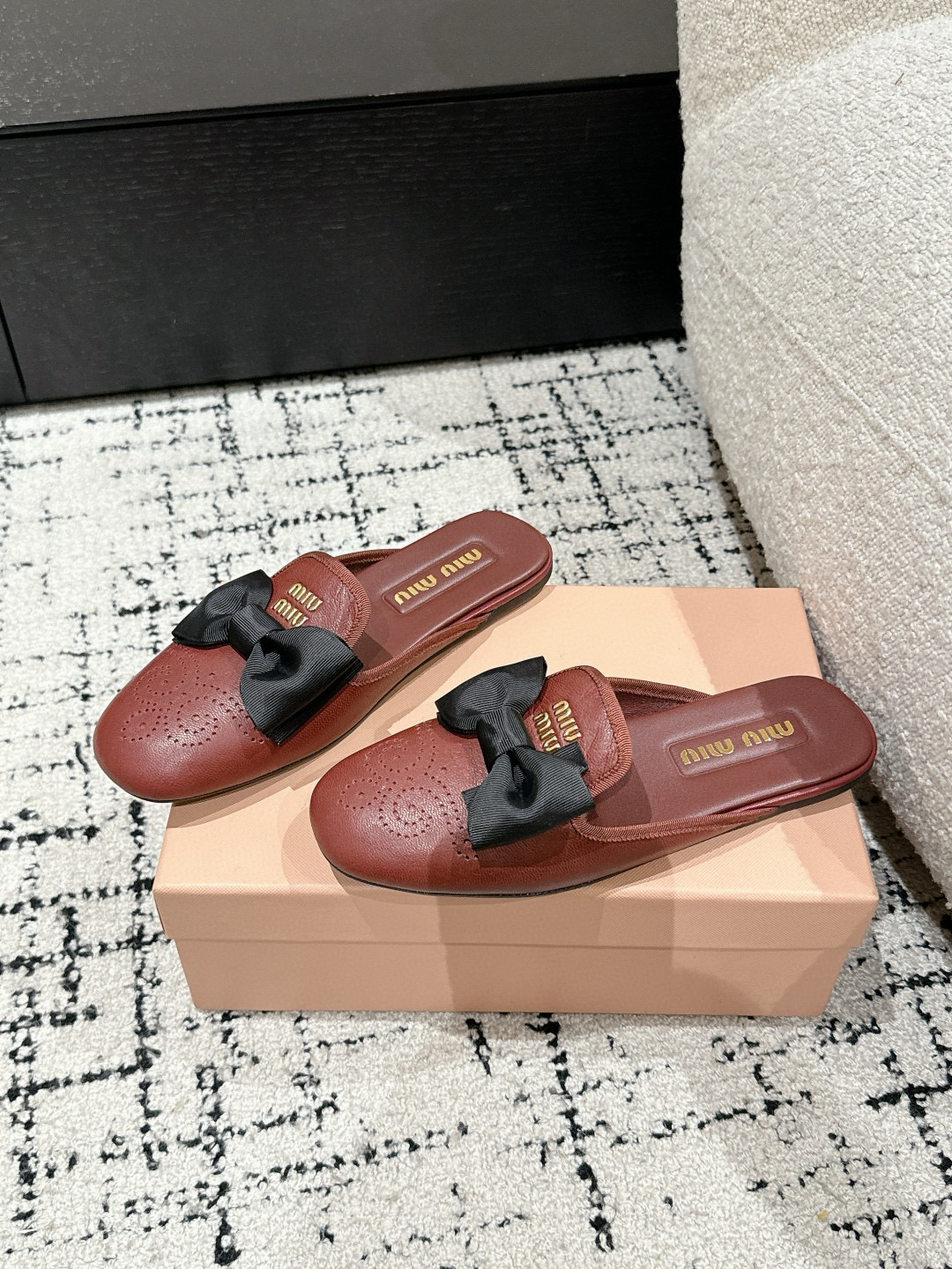这款鞋子是AAAAA 1:1 质量 (非常棒). 使用了和原版一模一样的材料. 商标部分也保持了和缪缪/Miu Miu一样. 图片拍摄是实物鞋子拍摄, 您所收到的实物保证和我们图片一模一样.