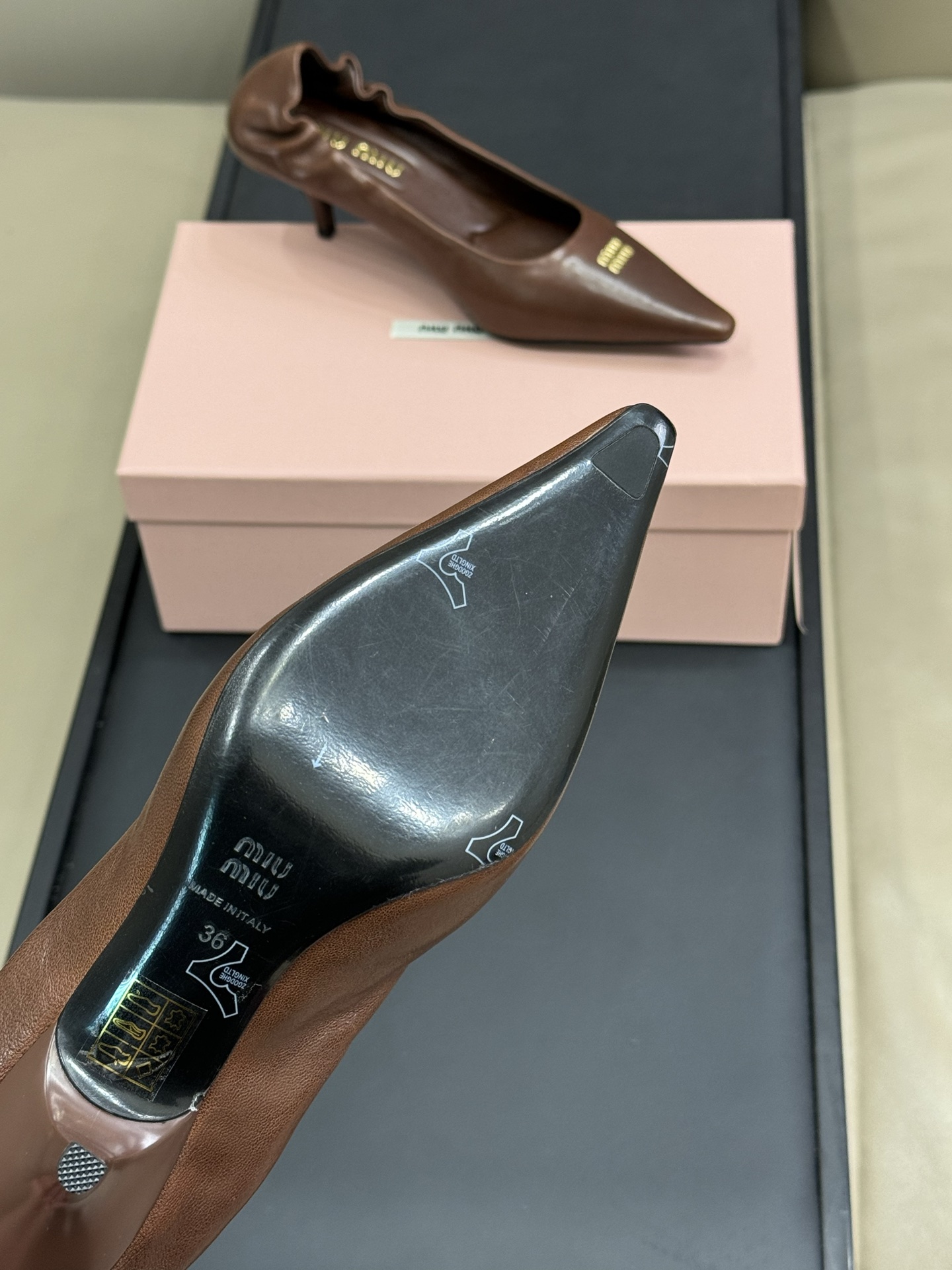 这款鞋子是AAAAA 1:1 质量 (非常棒). 使用了和原版一模一样的材料. 商标部分也保持了和缪缪/Miu Miu一样. 图片拍摄是实物鞋子拍摄, 您所收到的实物保证和我们图片一模一样.