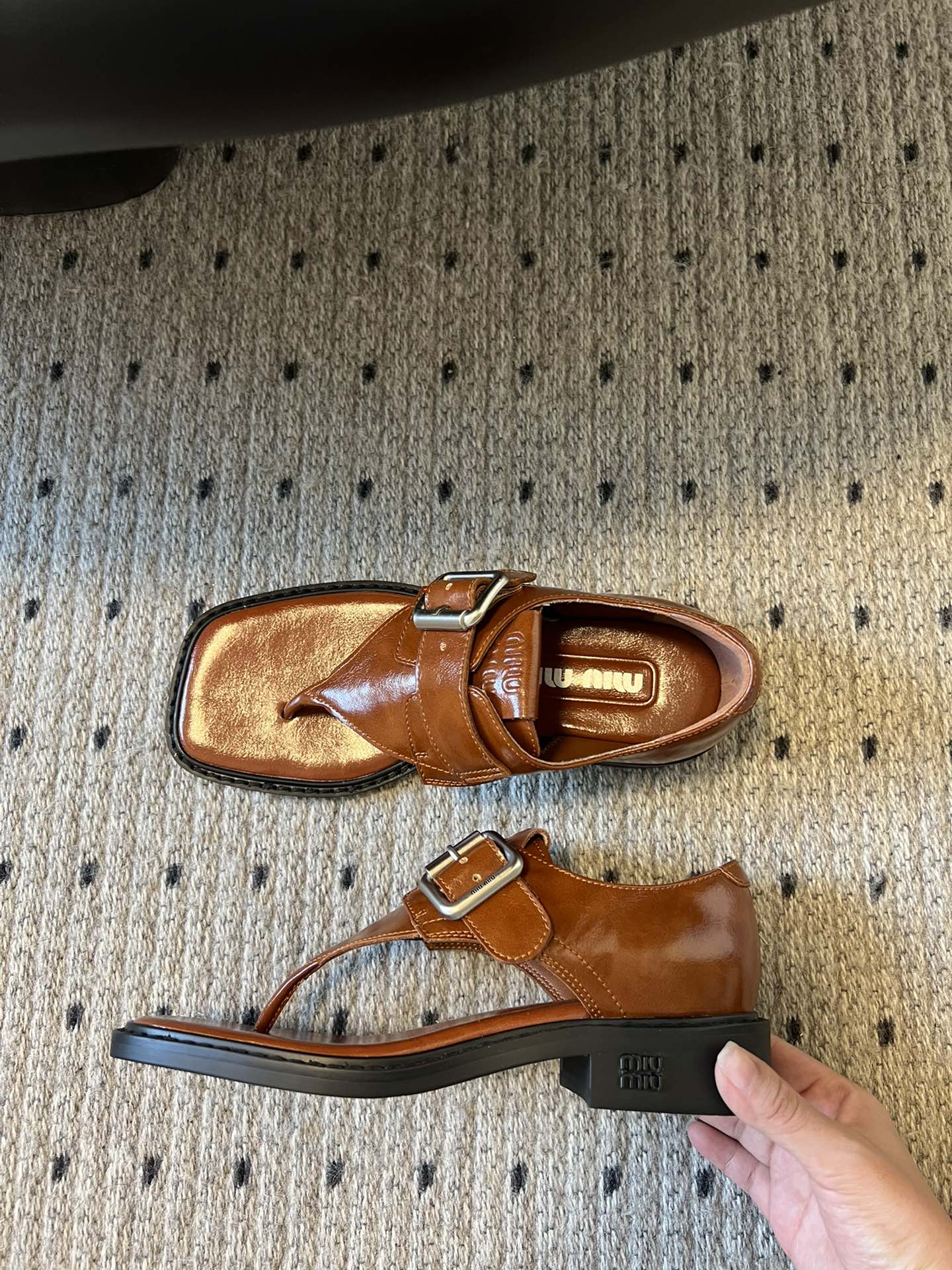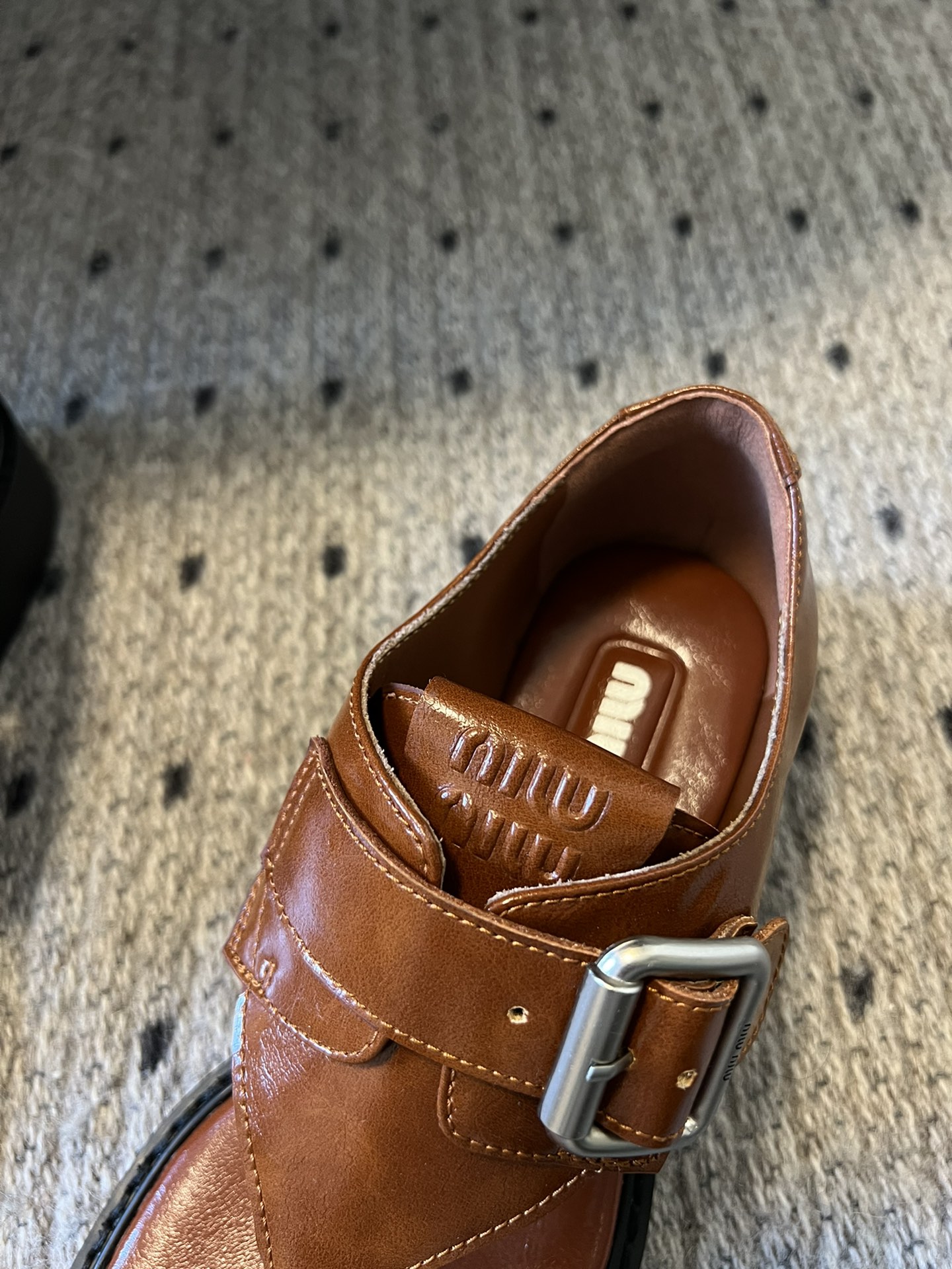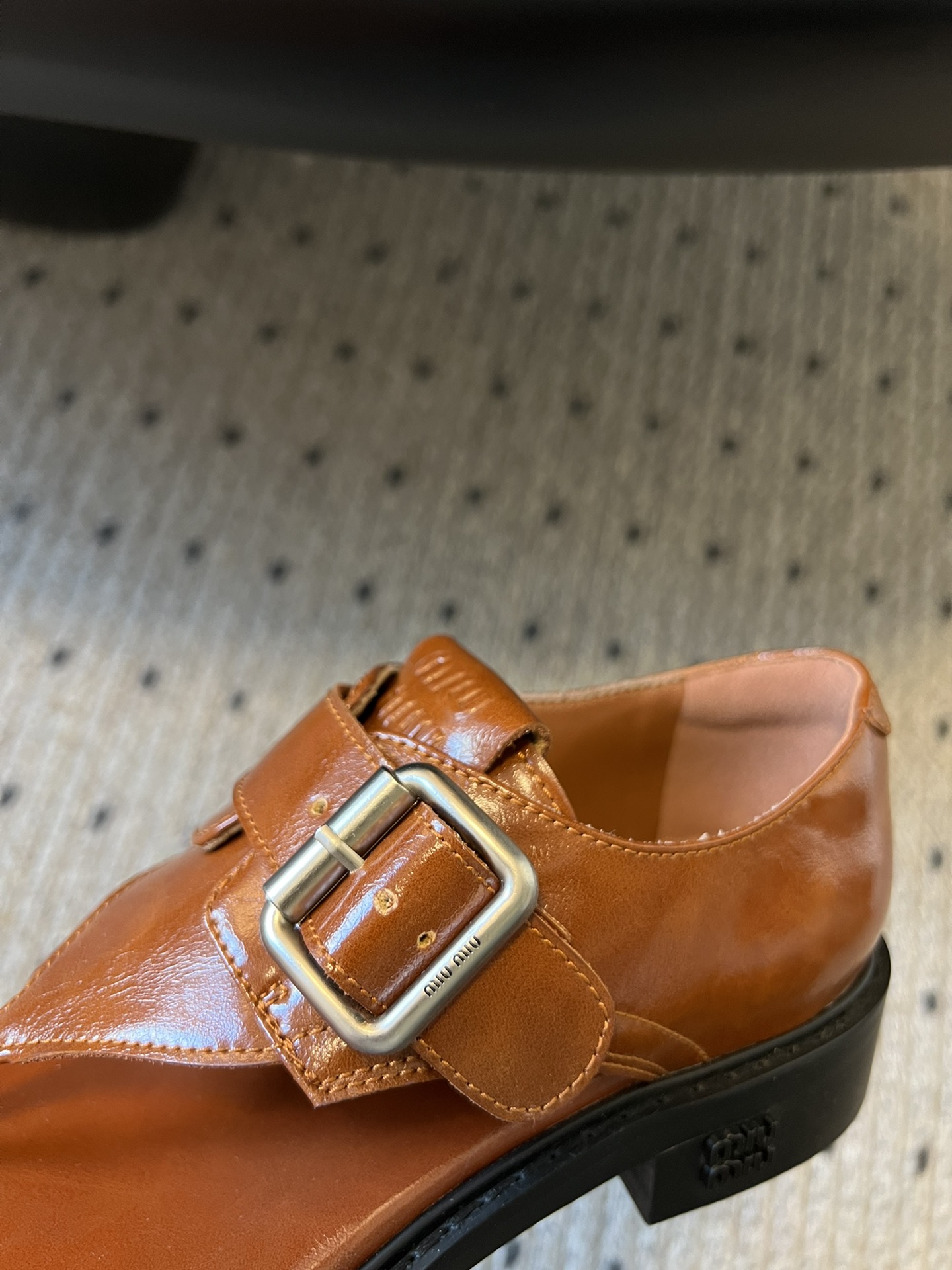 这款鞋子是AAAAA 1:1 质量 (非常棒). 使用了和原版一模一样的材料. 商标部分也保持了和缪缪/Miu Miu一样. 图片拍摄是实物鞋子拍摄, 您所收到的实物保证和我们图片一模一样.