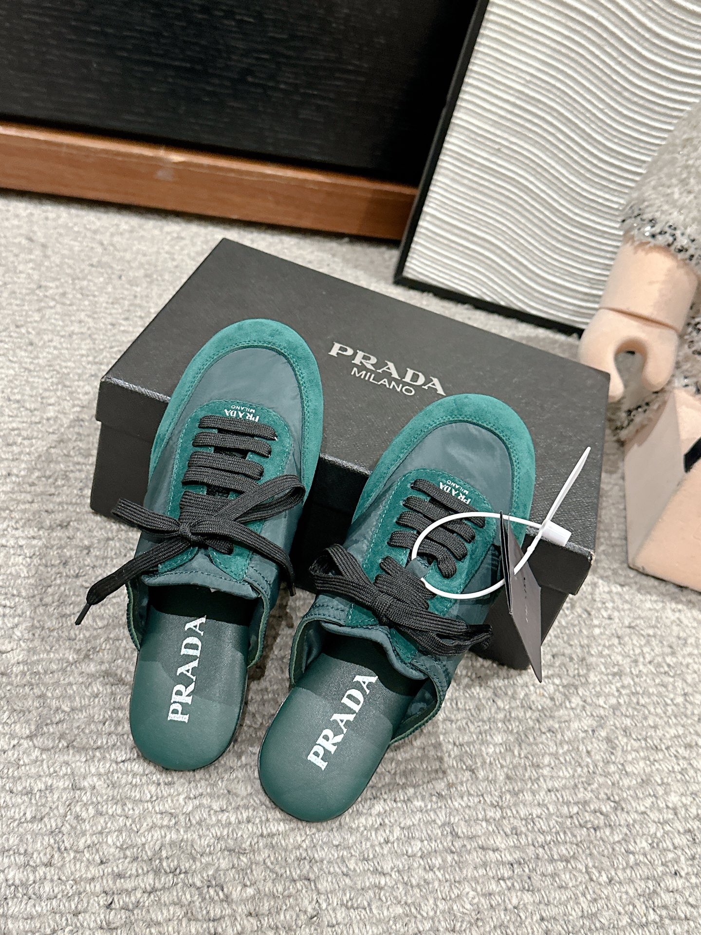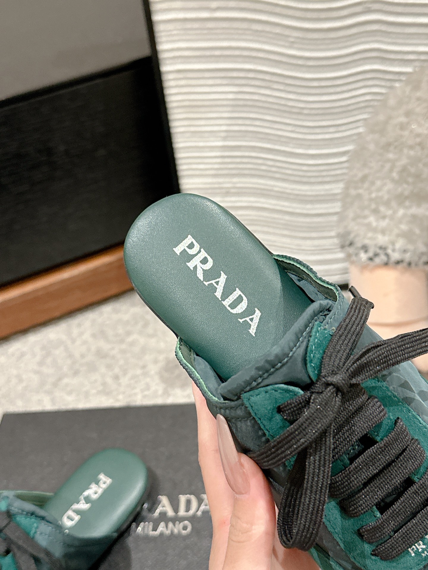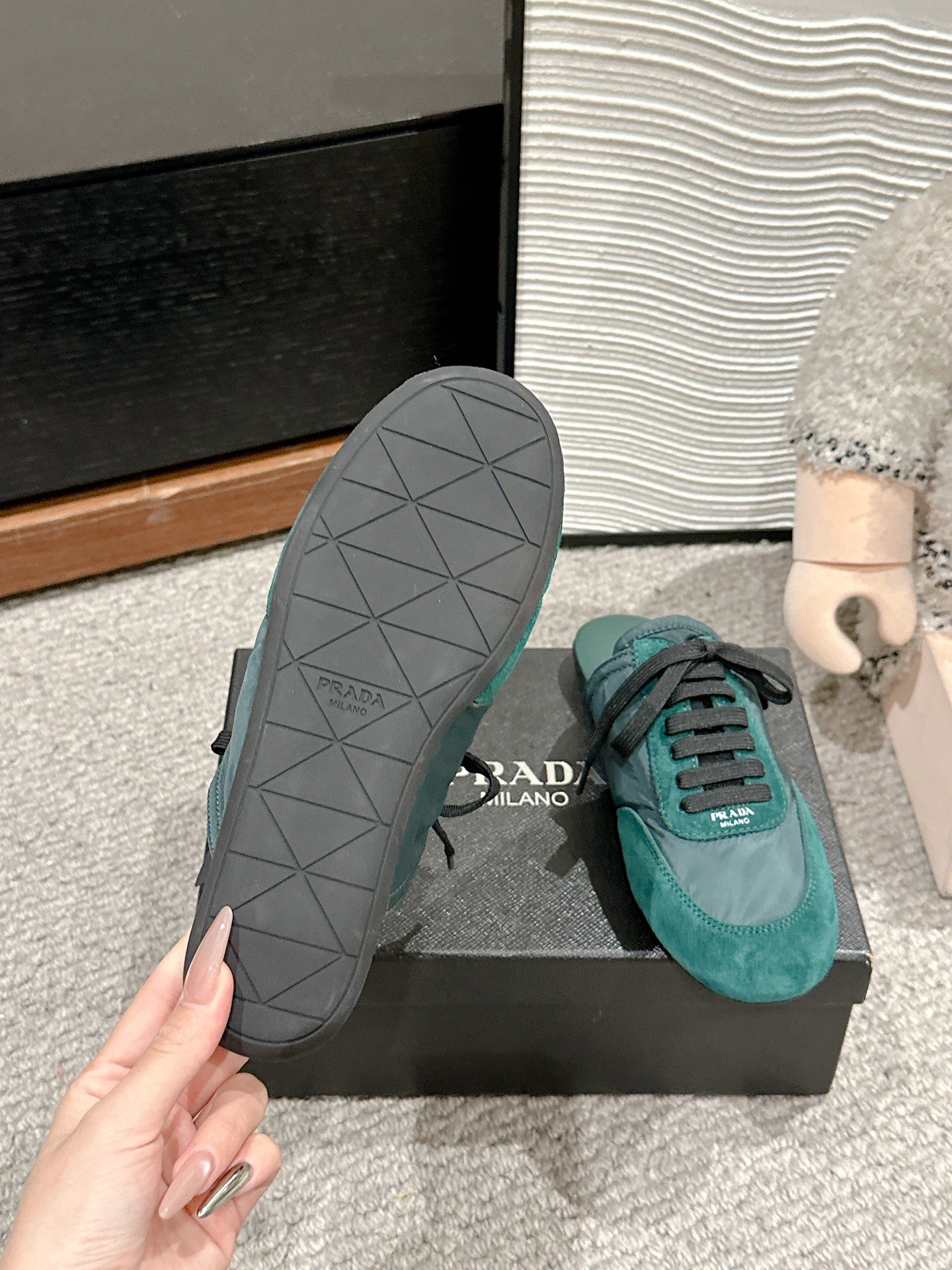 这款鞋子是AAAAA 1:1 质量 (非常棒). 使用了和原版一模一样的材料. 商标部分也保持了和普拉达/Prada一样. 图片拍摄是实物鞋子拍摄, 您所收到的实物保证和我们图片一模一样.