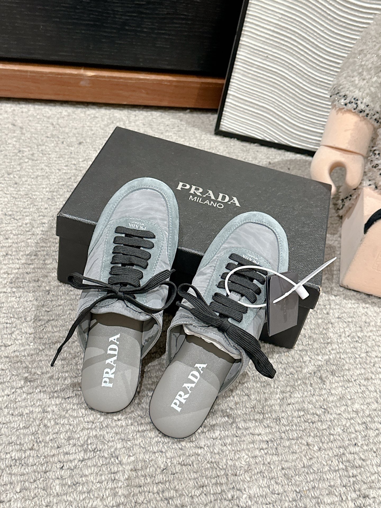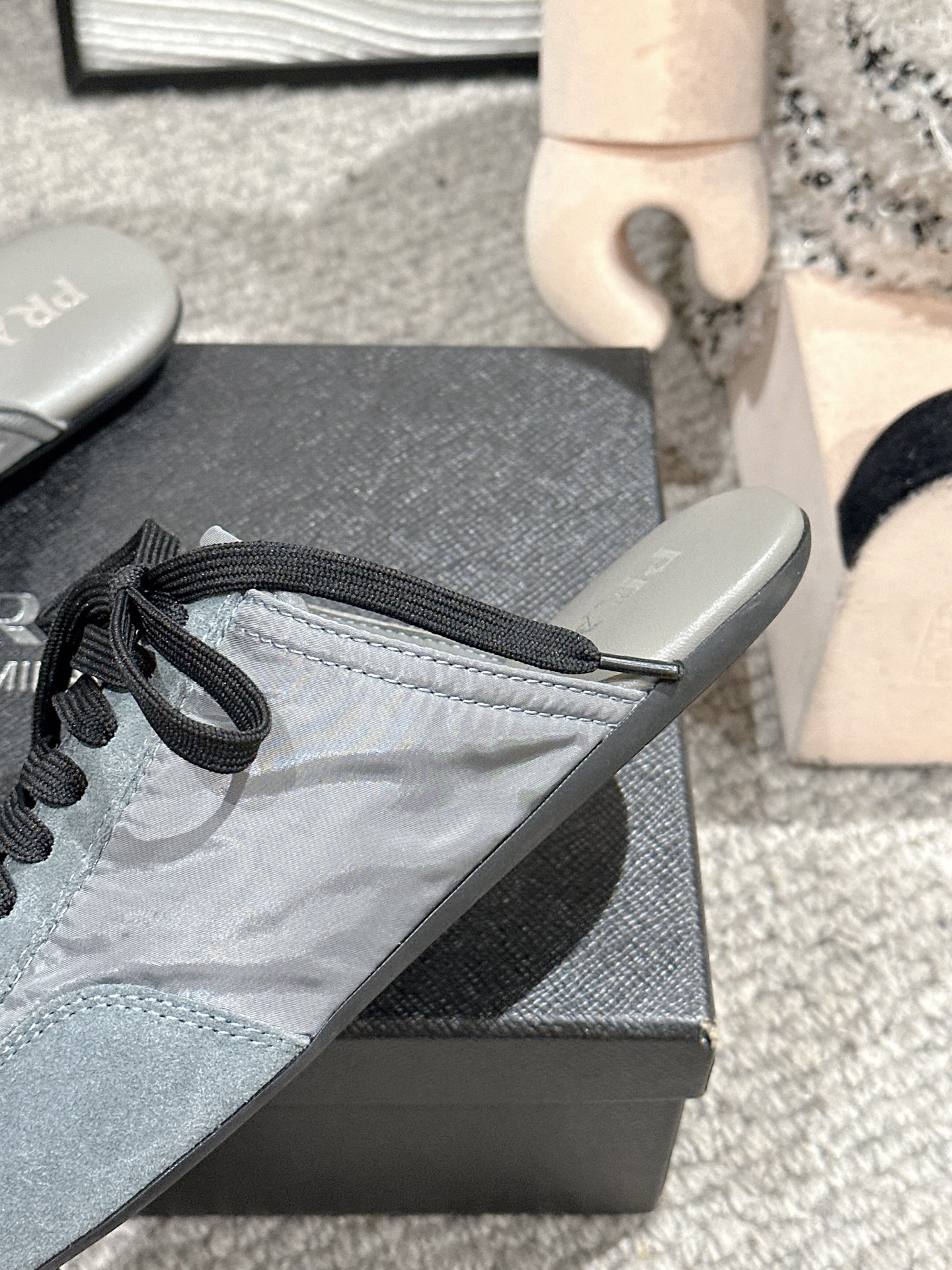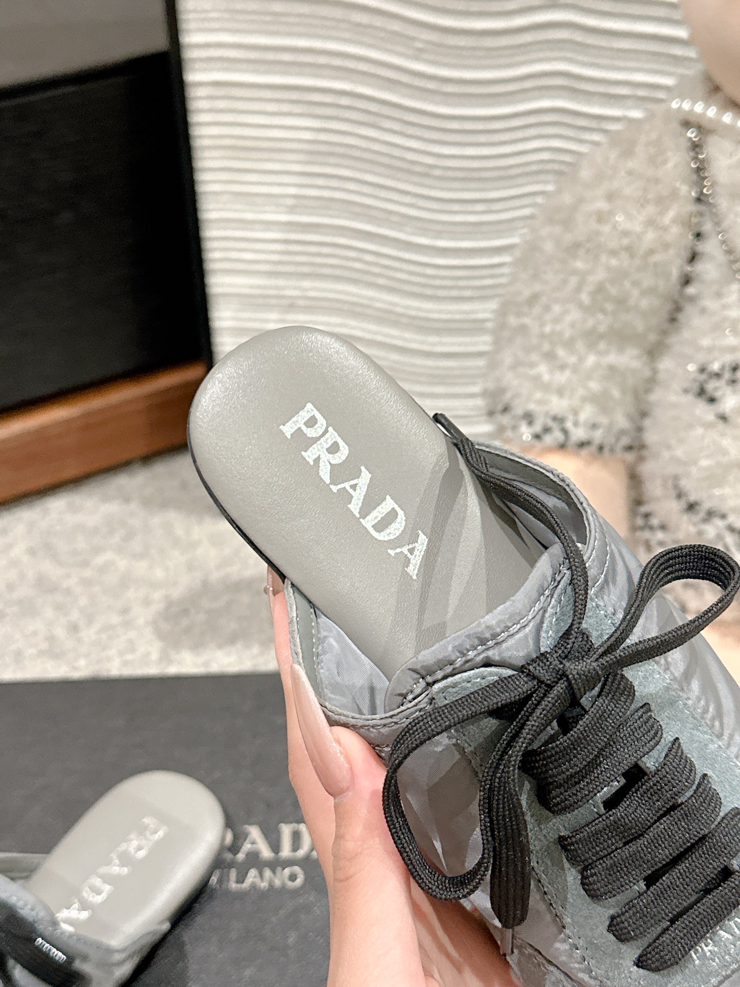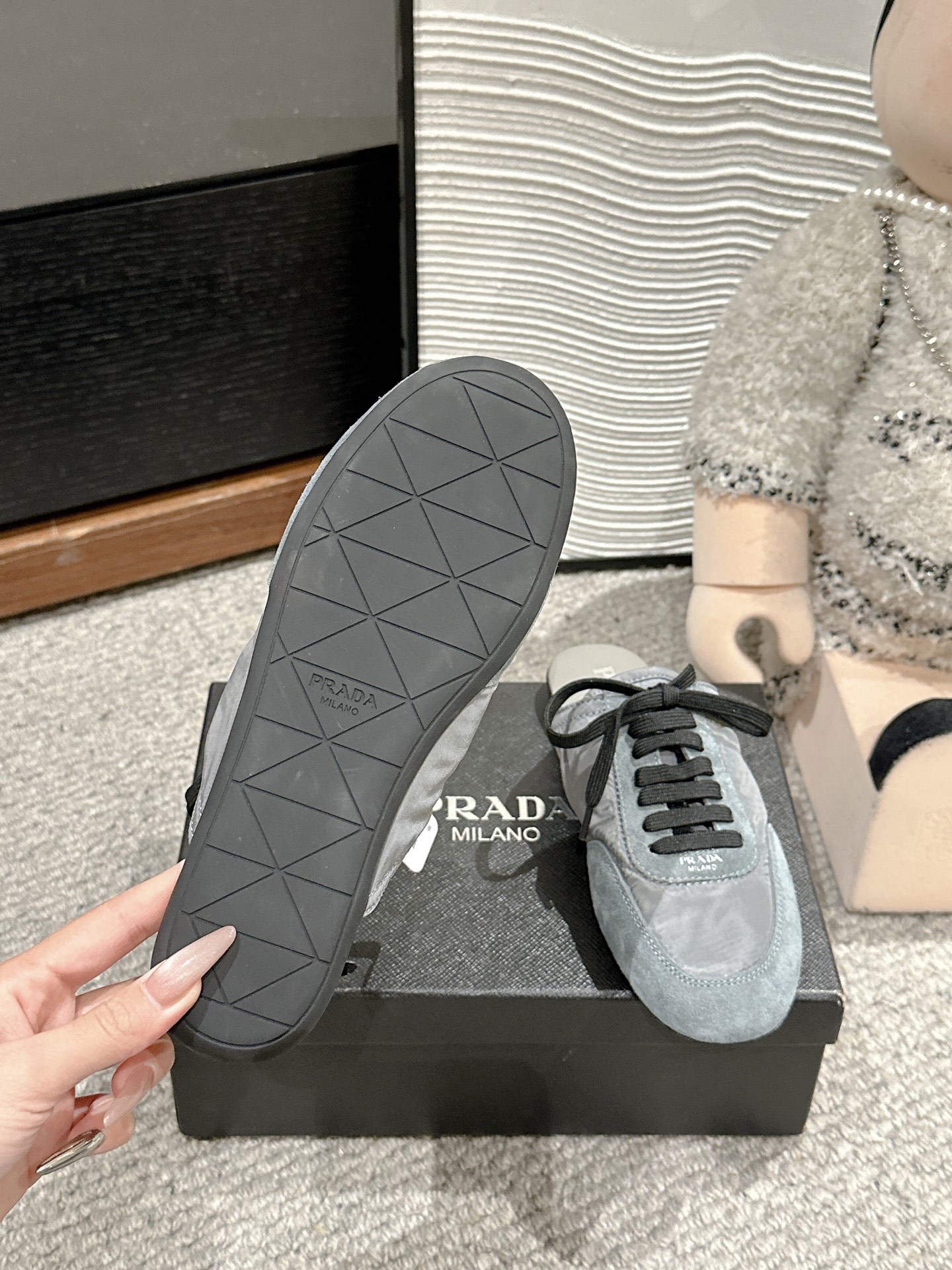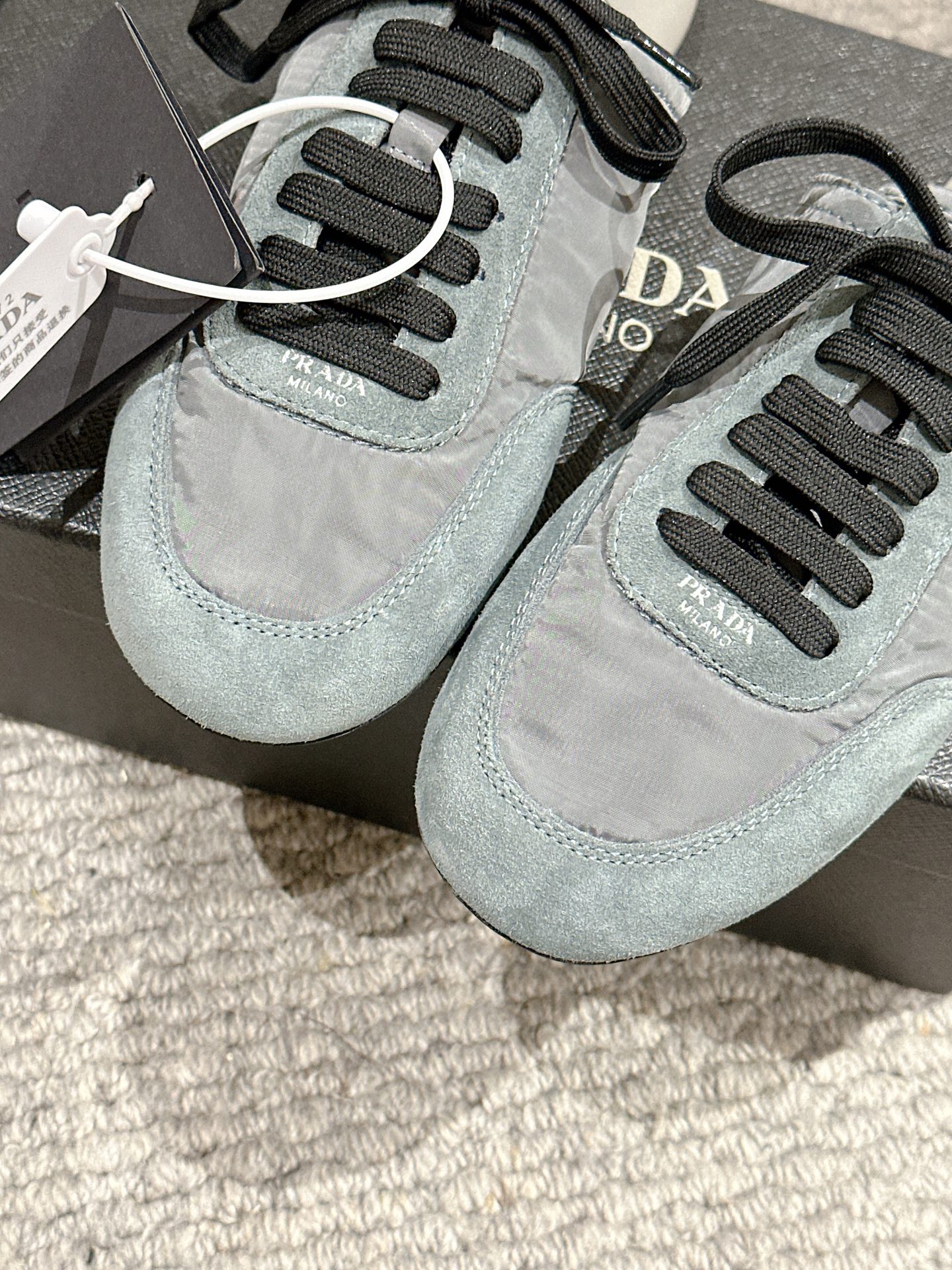 这款鞋子是AAAAA 1:1 质量 (非常棒). 使用了和原版一模一样的材料. 商标部分也保持了和普拉达/Prada一样. 图片拍摄是实物鞋子拍摄, 您所收到的实物保证和我们图片一模一样.