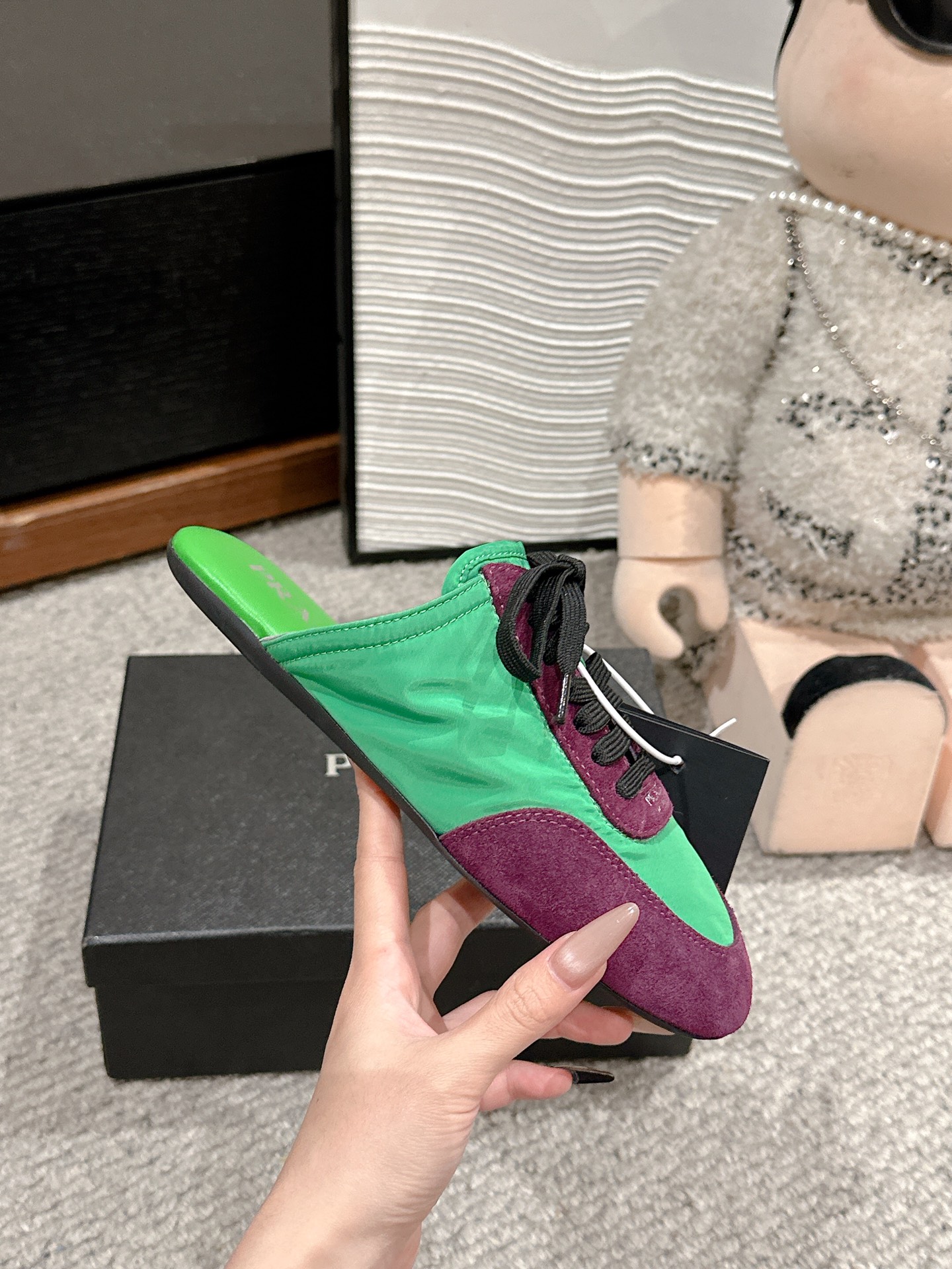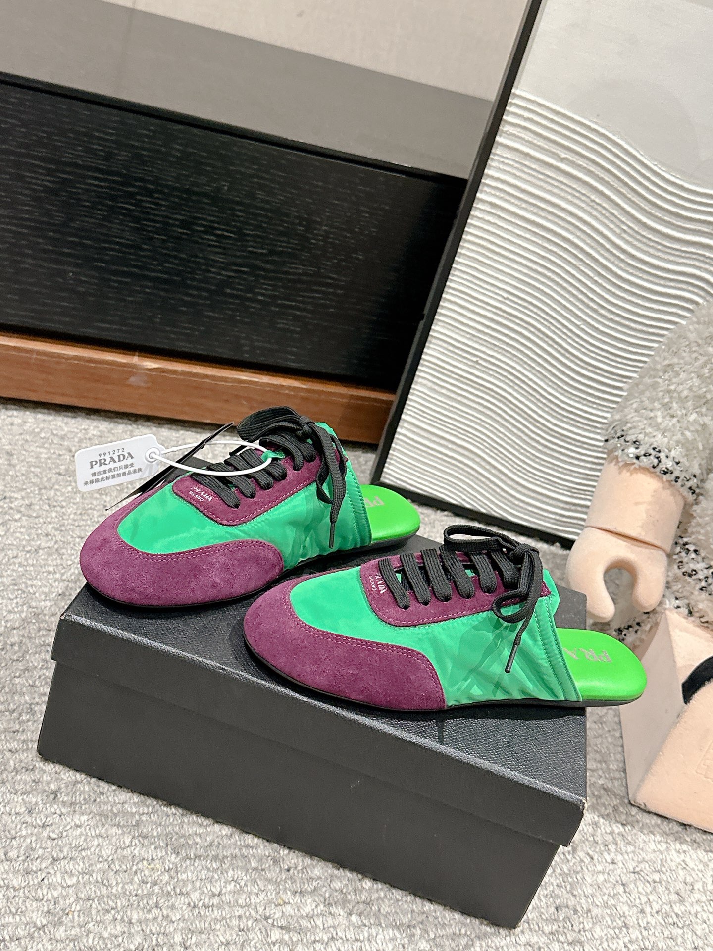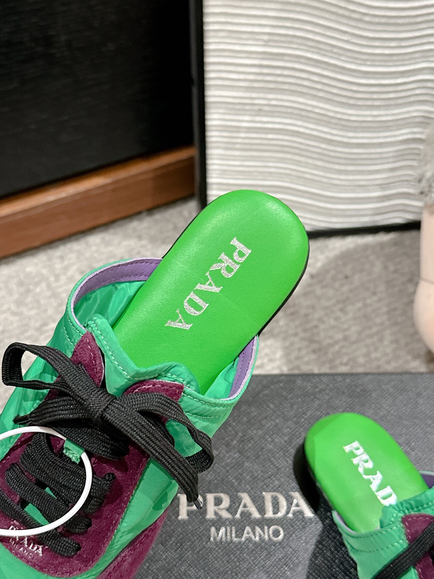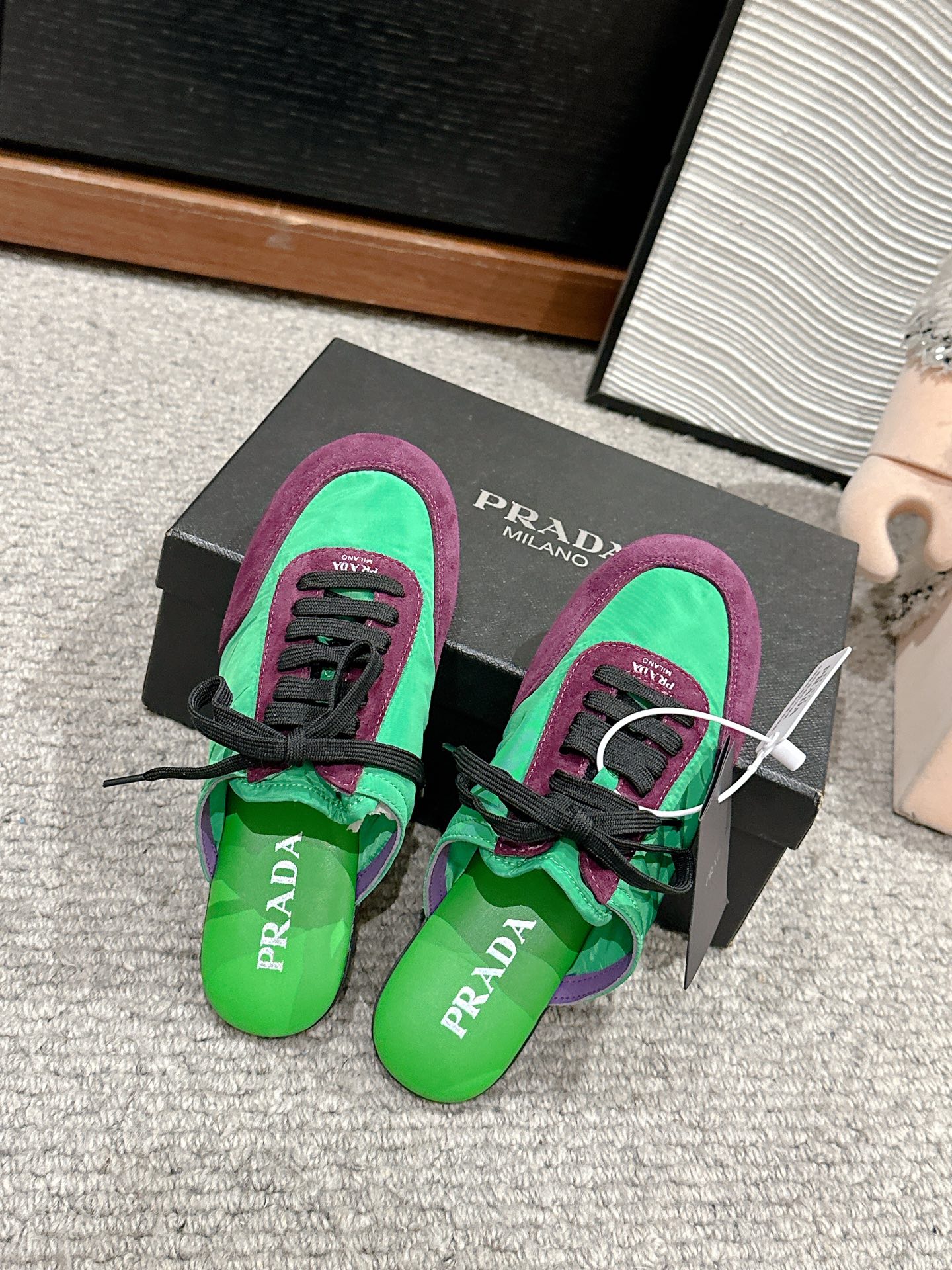 这款鞋子是AAAAA 1:1 质量 (非常棒). 使用了和原版一模一样的材料. 商标部分也保持了和普拉达/Prada一样. 图片拍摄是实物鞋子拍摄, 您所收到的实物保证和我们图片一模一样.