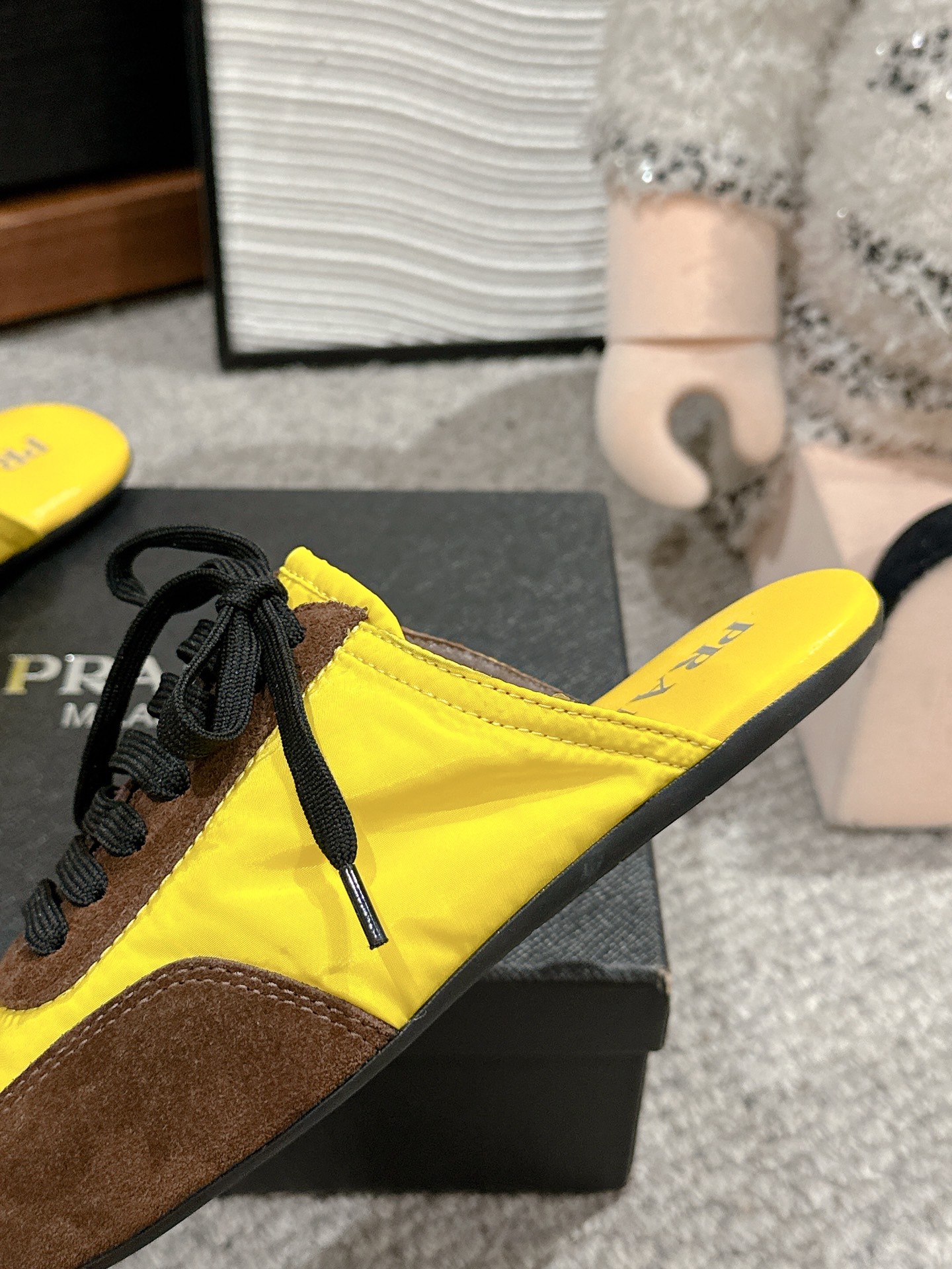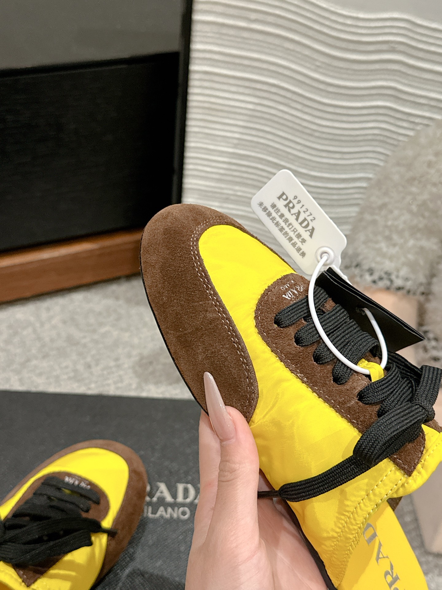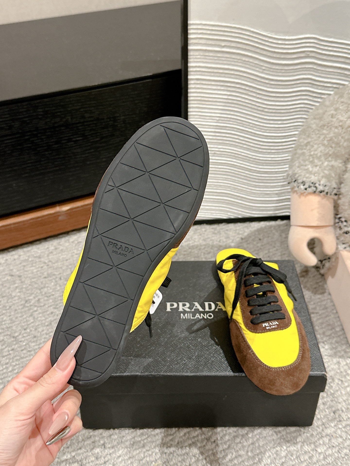 这款鞋子是AAAAA 1:1 质量 (非常棒). 使用了和原版一模一样的材料. 商标部分也保持了和普拉达/Prada一样. 图片拍摄是实物鞋子拍摄, 您所收到的实物保证和我们图片一模一样.