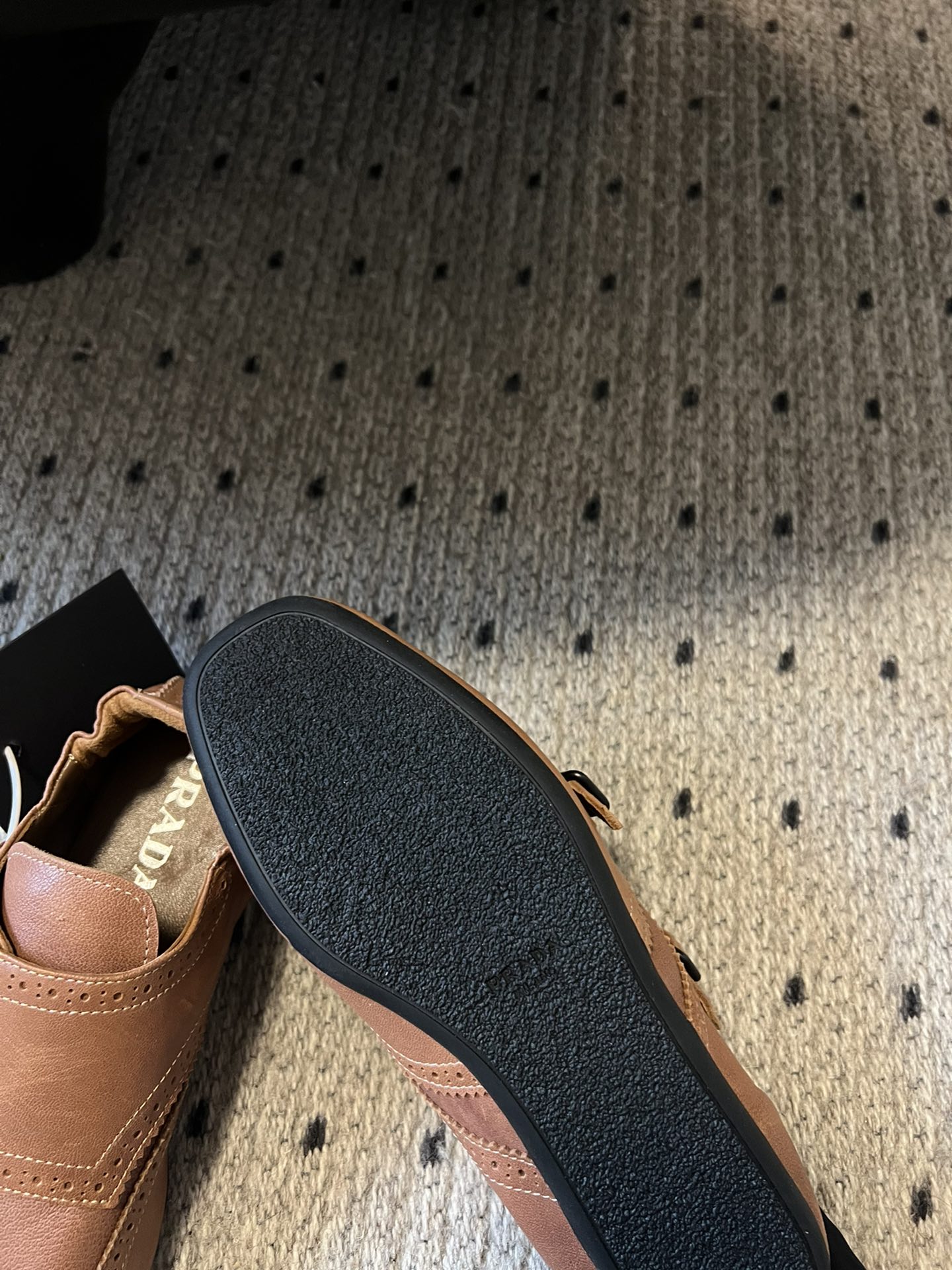 这款鞋子是AAAAA 1:1 质量 (非常棒). 使用了和原版一模一样的材料. 商标部分也保持了和普拉达/Prada一样. 图片拍摄是实物鞋子拍摄, 您所收到的实物保证和我们图片一模一样.