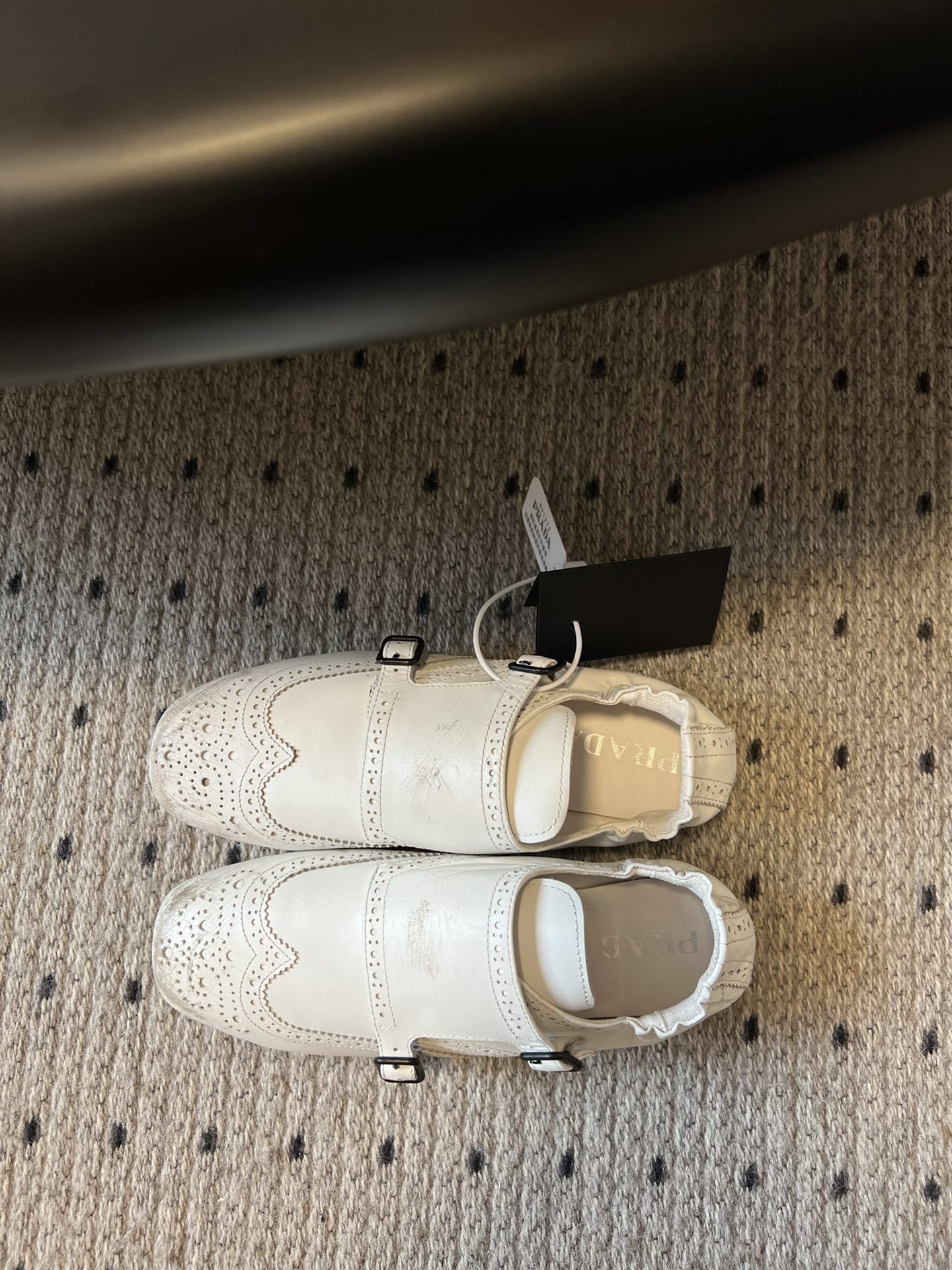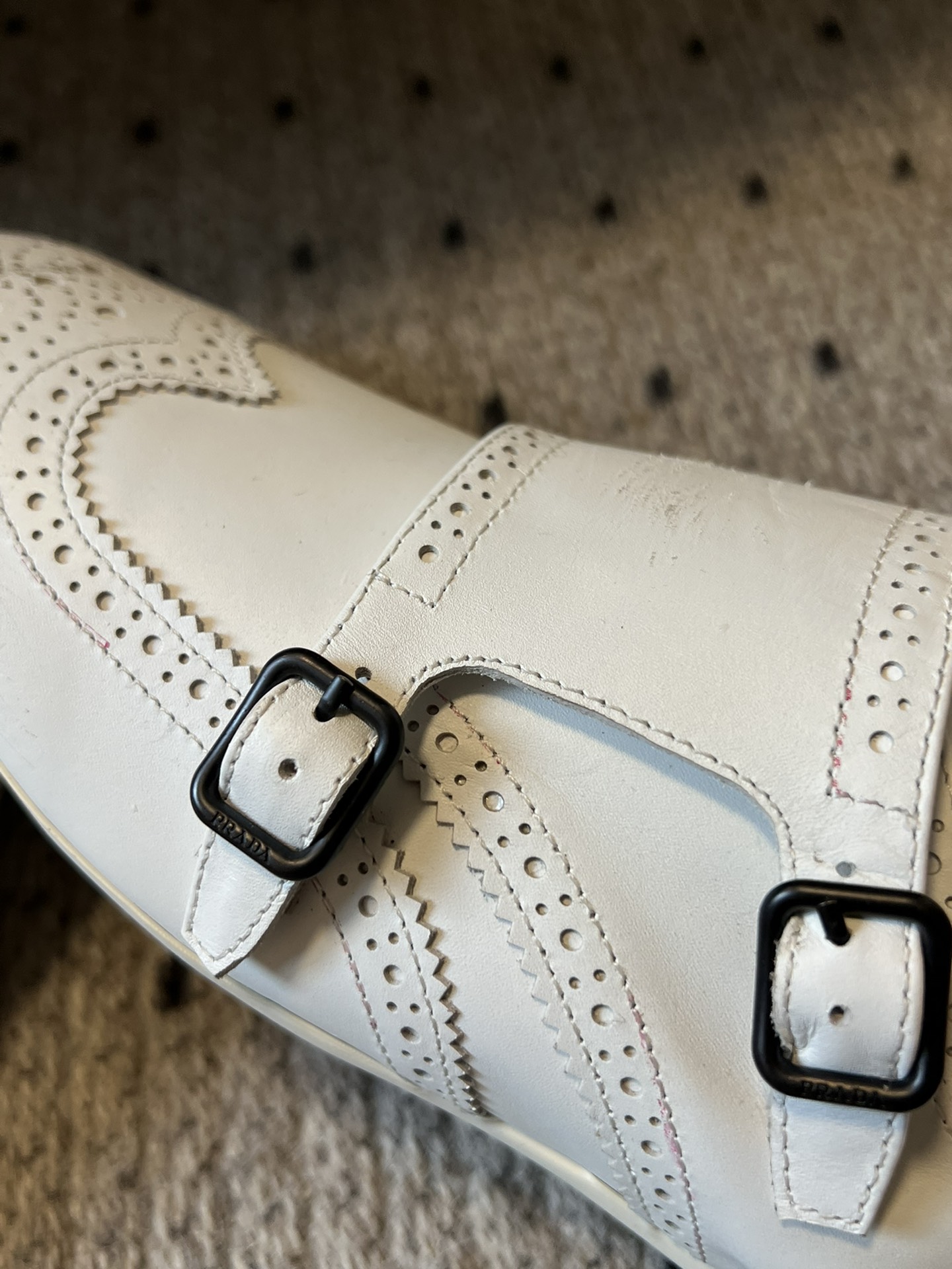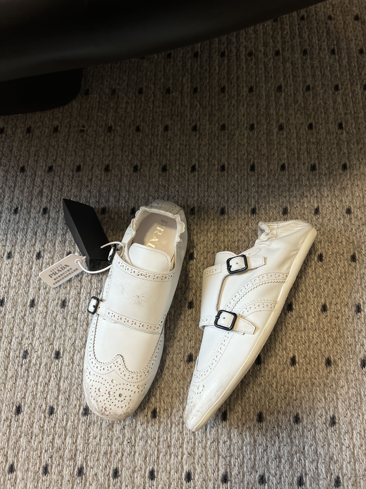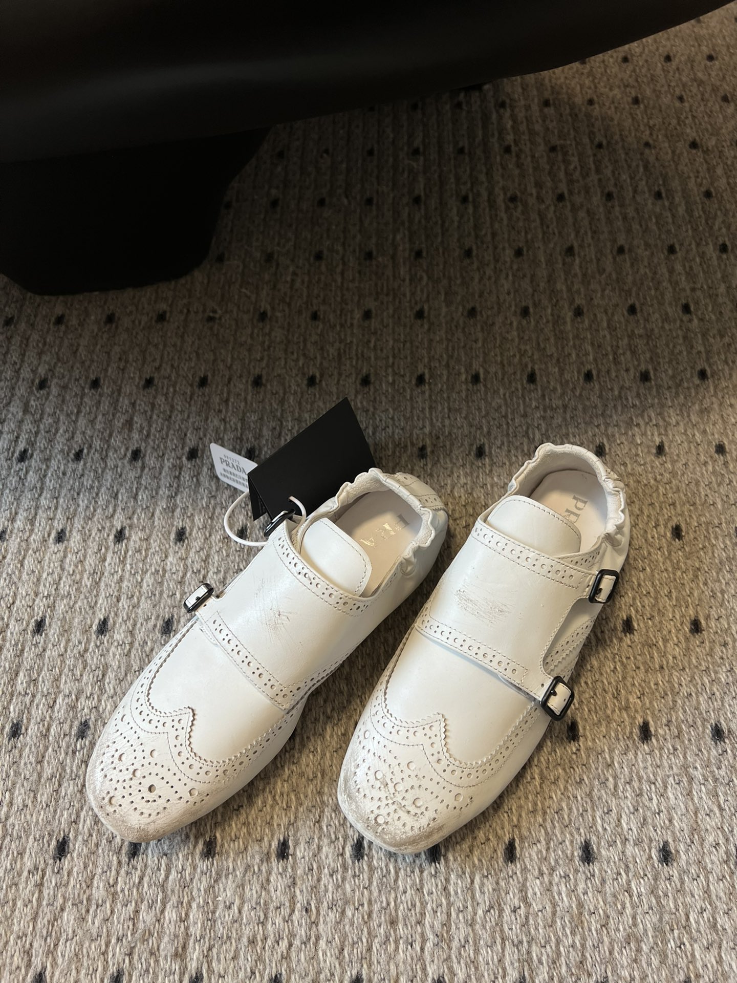 这款鞋子是AAAAA 1:1 质量 (非常棒). 使用了和原版一模一样的材料. 商标部分也保持了和普拉达/Prada一样. 图片拍摄是实物鞋子拍摄, 您所收到的实物保证和我们图片一模一样.