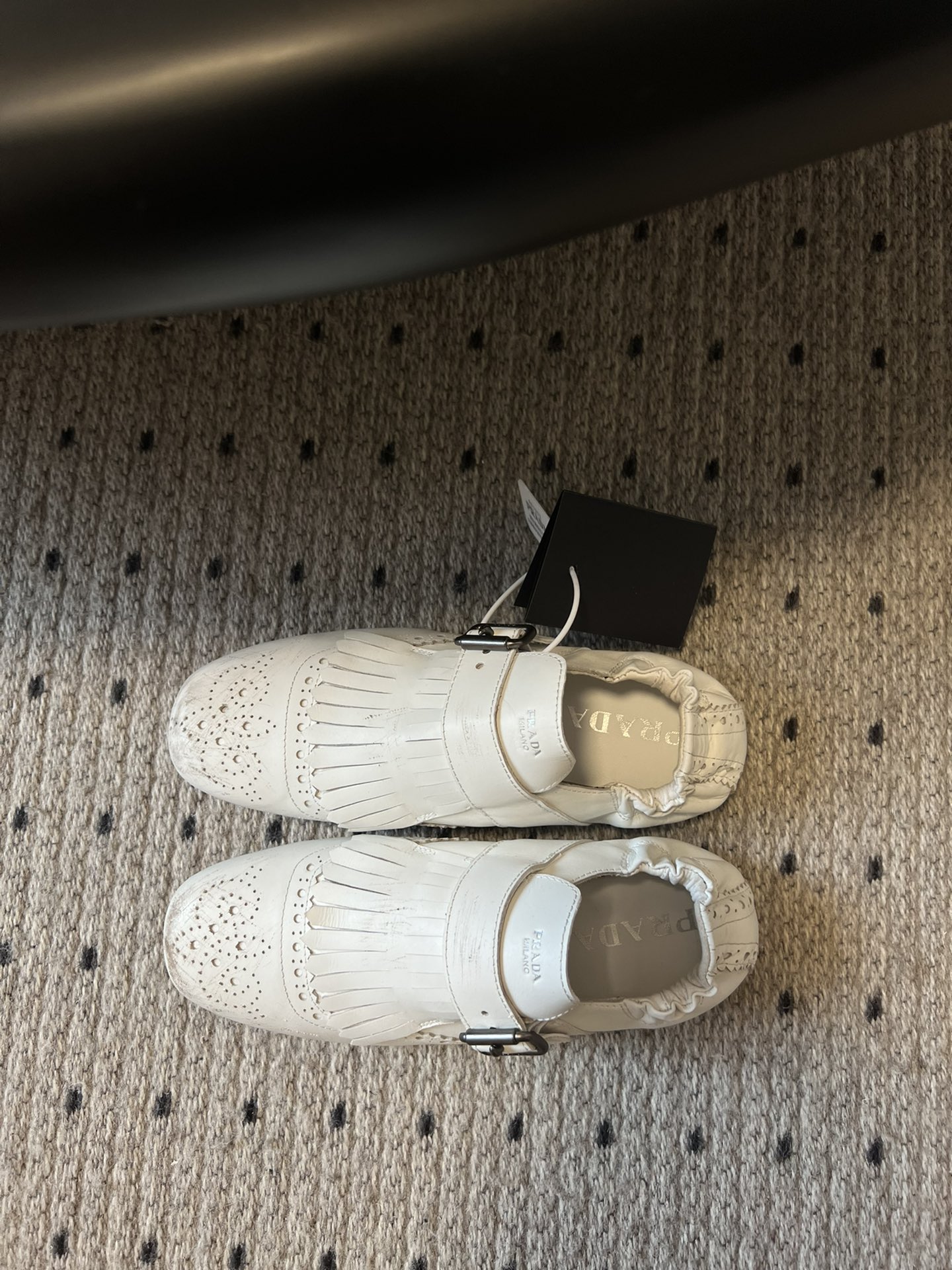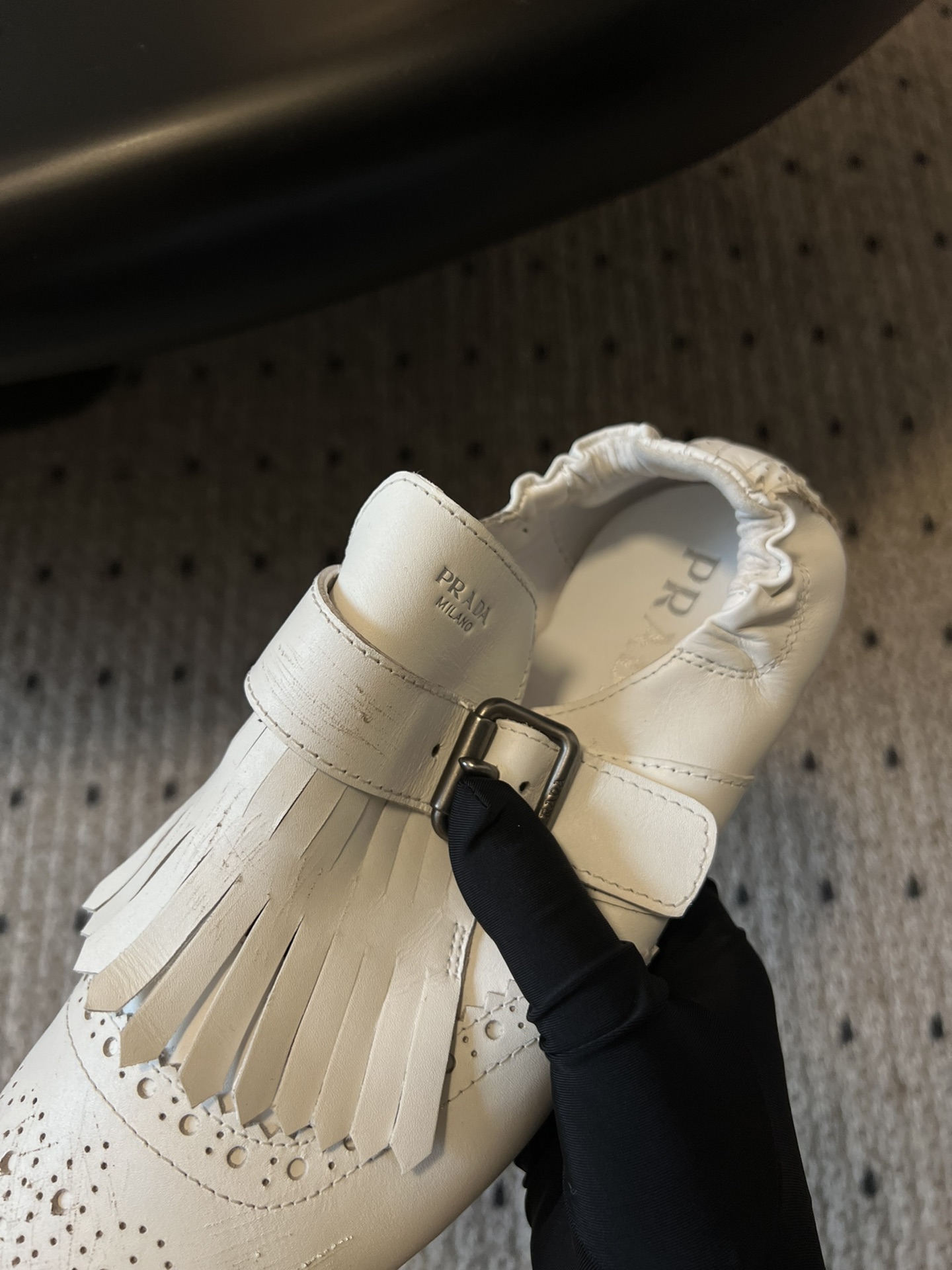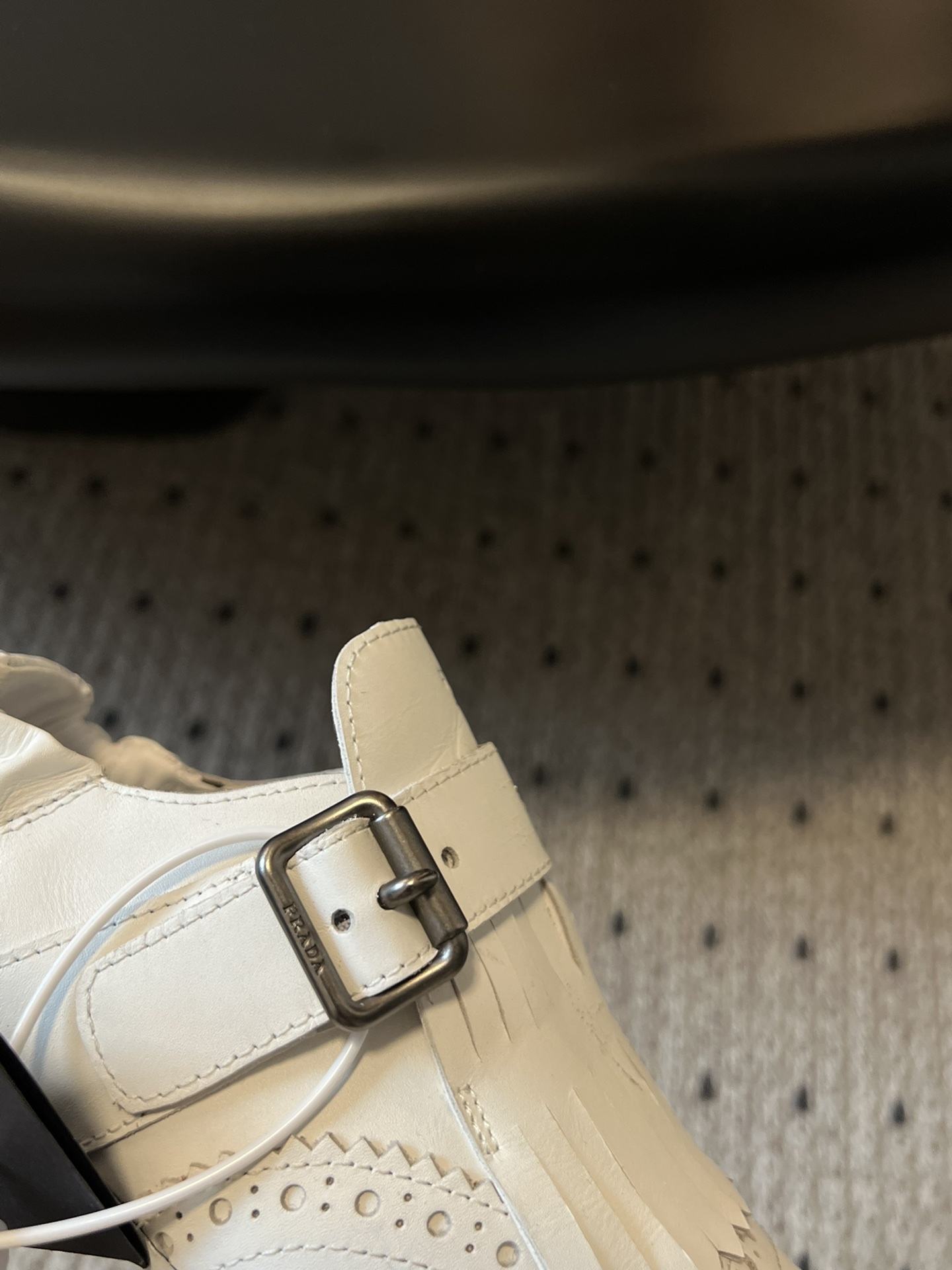 这款鞋子是AAAAA 1:1 质量 (非常棒). 使用了和原版一模一样的材料. 商标部分也保持了和普拉达/Prada一样. 图片拍摄是实物鞋子拍摄, 您所收到的实物保证和我们图片一模一样.
