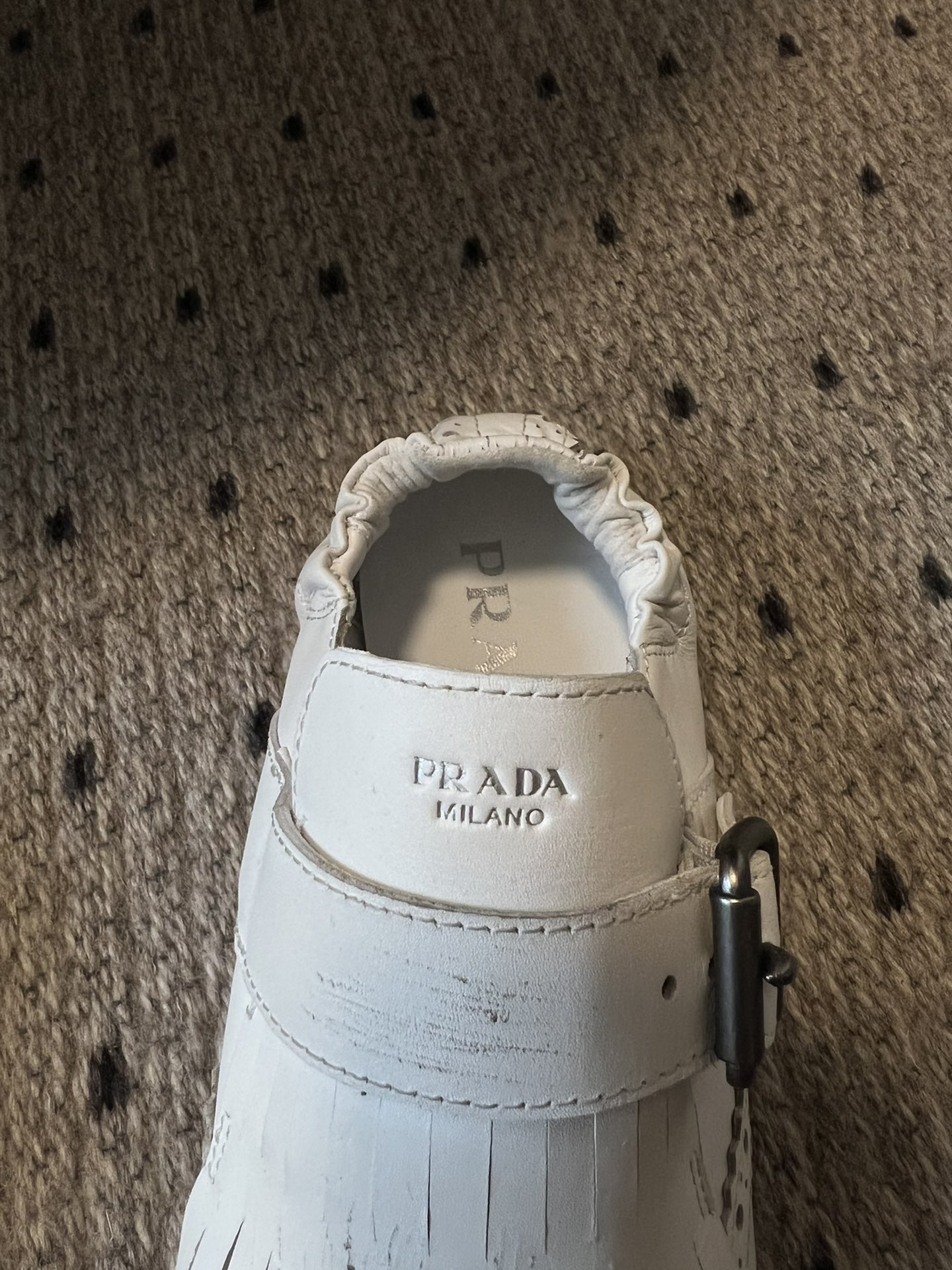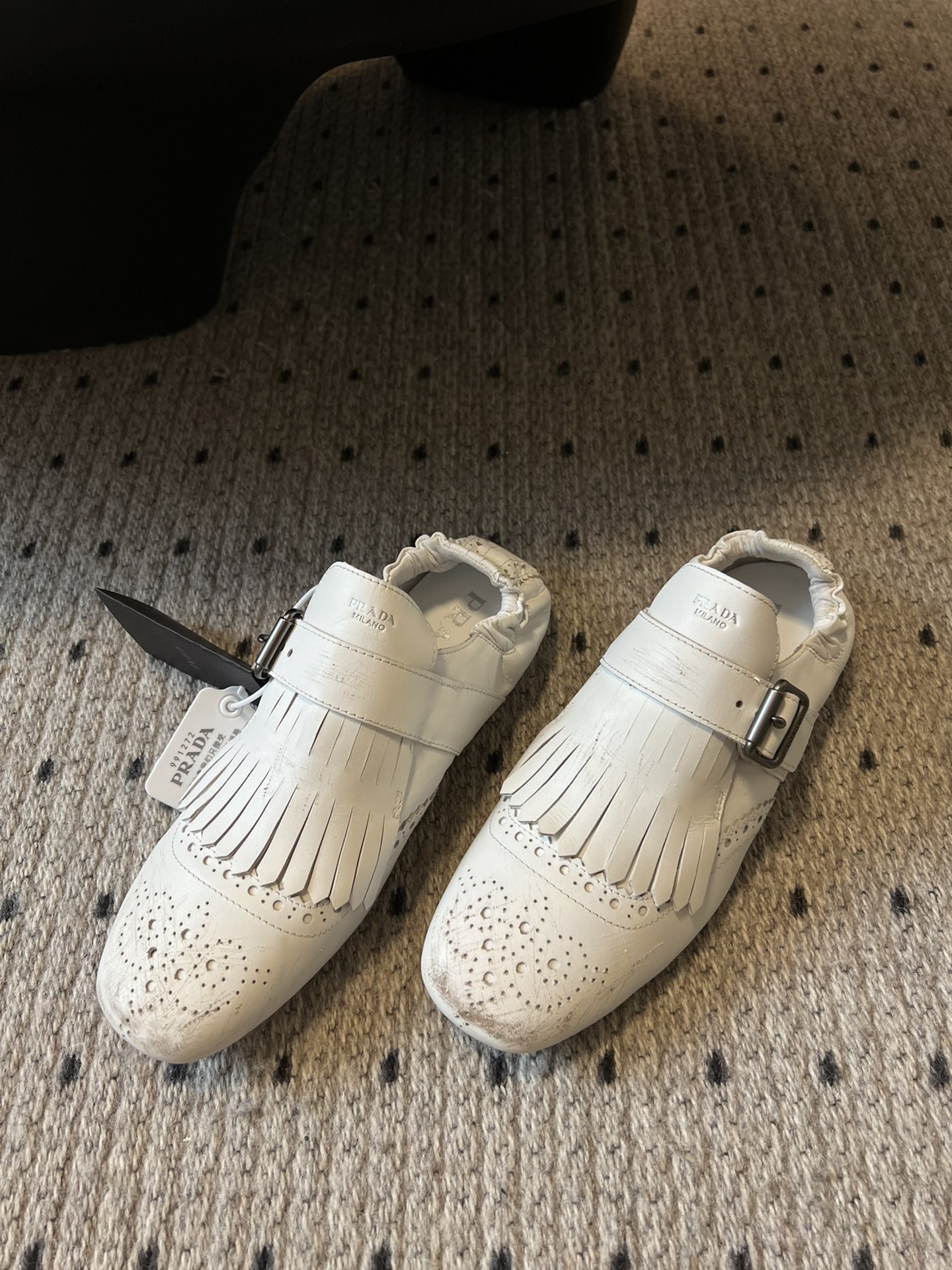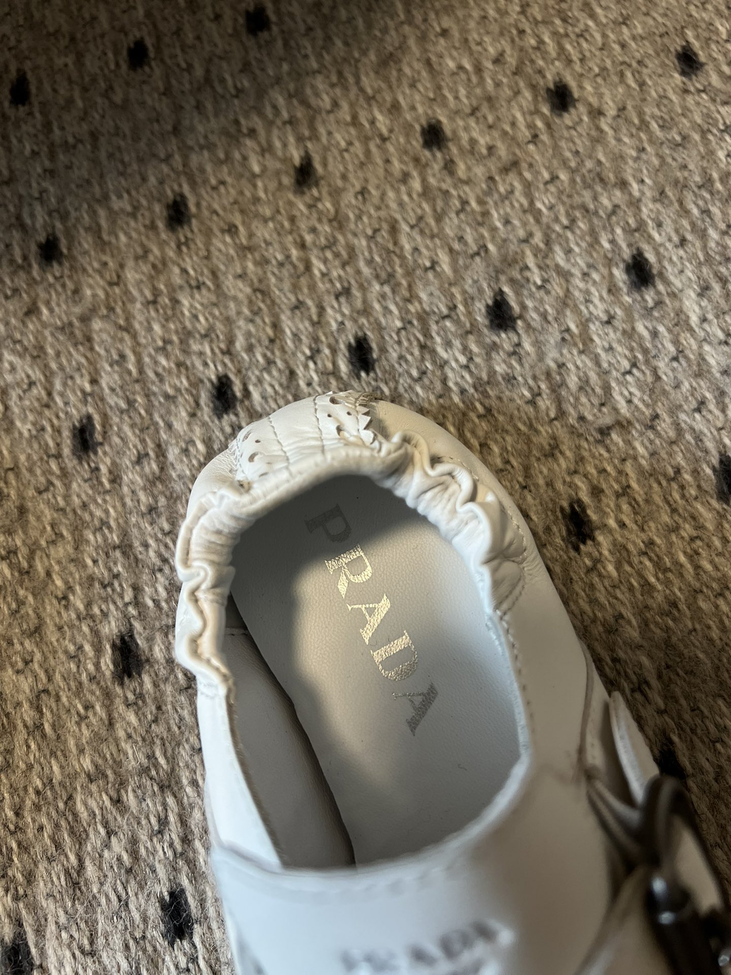 这款鞋子是AAAAA 1:1 质量 (非常棒). 使用了和原版一模一样的材料. 商标部分也保持了和普拉达/Prada一样. 图片拍摄是实物鞋子拍摄, 您所收到的实物保证和我们图片一模一样.