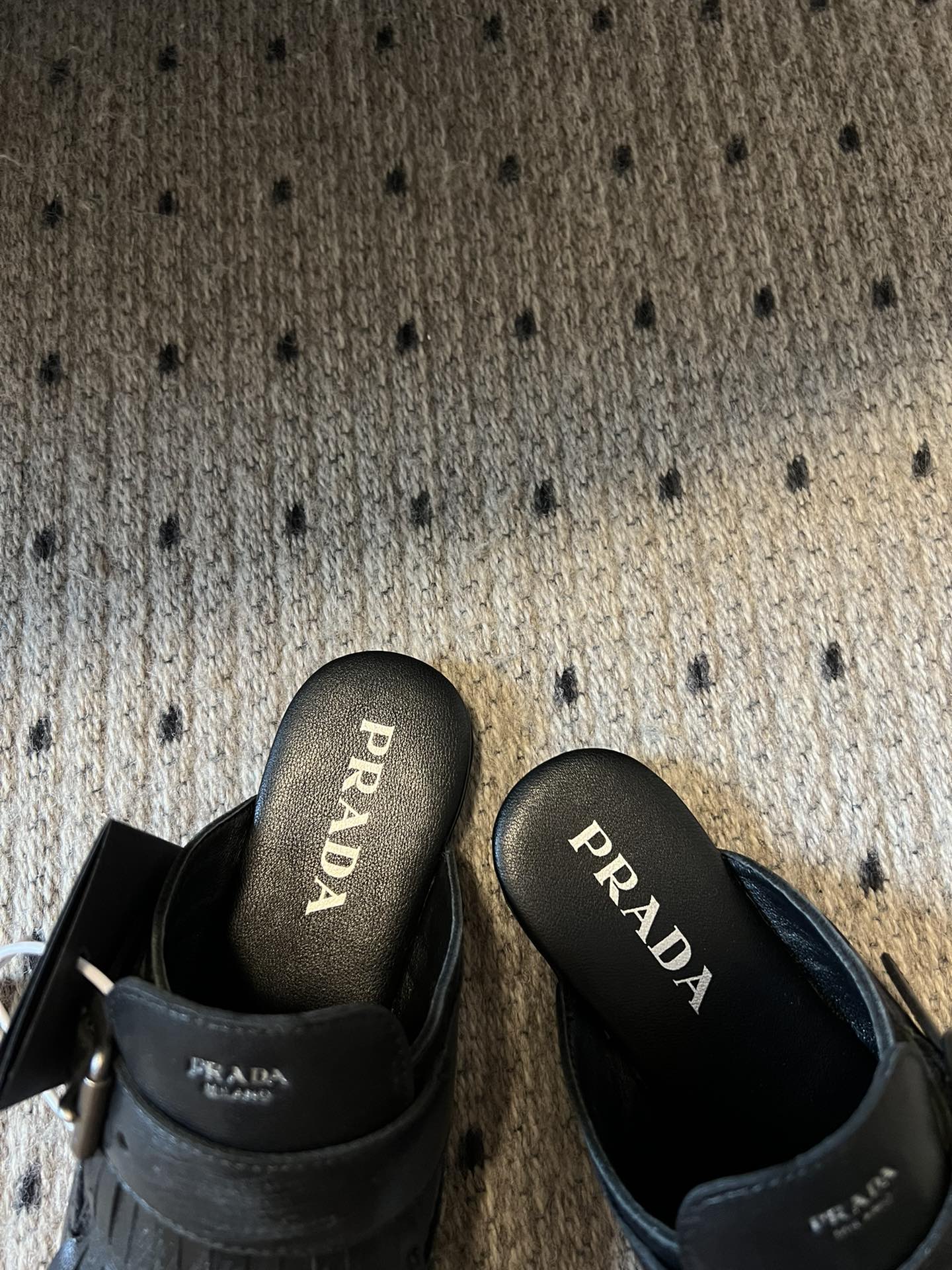 这款鞋子是AAAAA 1:1 质量 (非常棒). 使用了和原版一模一样的材料. 商标部分也保持了和普拉达/Prada一样. 图片拍摄是实物鞋子拍摄, 您所收到的实物保证和我们图片一模一样.
