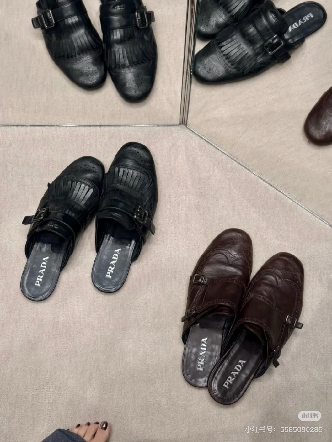 这款鞋子是AAAAA 1:1 质量 (非常棒). 使用了和原版一模一样的材料. 商标部分也保持了和普拉达/Prada一样. 图片拍摄是实物鞋子拍摄, 您所收到的实物保证和我们图片一模一样.