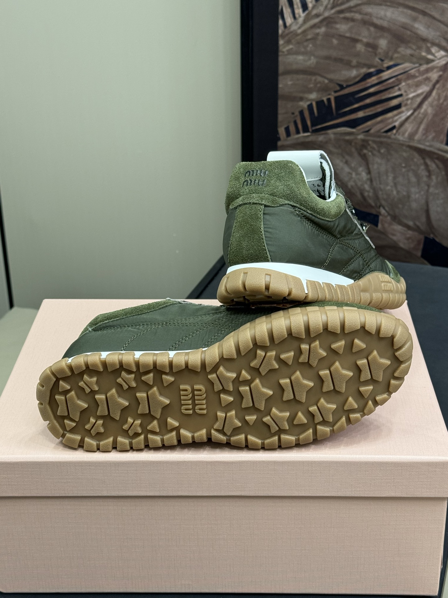 这款鞋子是AAAAA 1:1 质量 (非常棒). 使用了和原版一模一样的材料. 商标部分也保持了和缪缪/Miu Miu一样. 图片拍摄是实物鞋子拍摄, 您所收到的实物保证和我们图片一模一样.