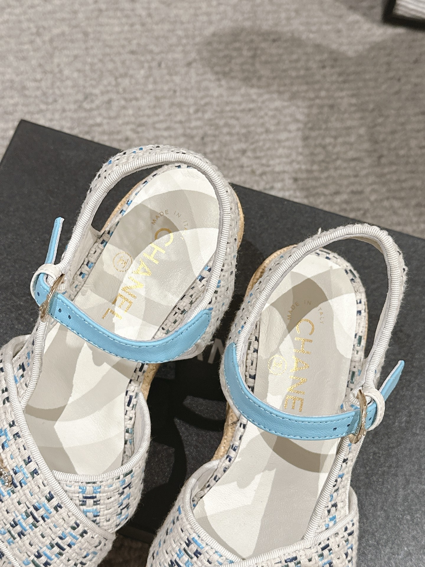 这款鞋子是AAAAA 1:1 质量 (非常棒). 使用了和原版一模一样的材料. 商标部分也保持了和香奈儿/Chanel一样. 图片拍摄是实物鞋子拍摄, 您所收到的实物保证和我们图片一模一样.