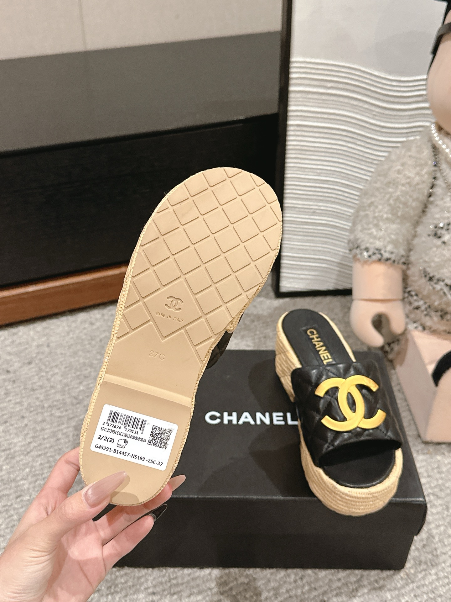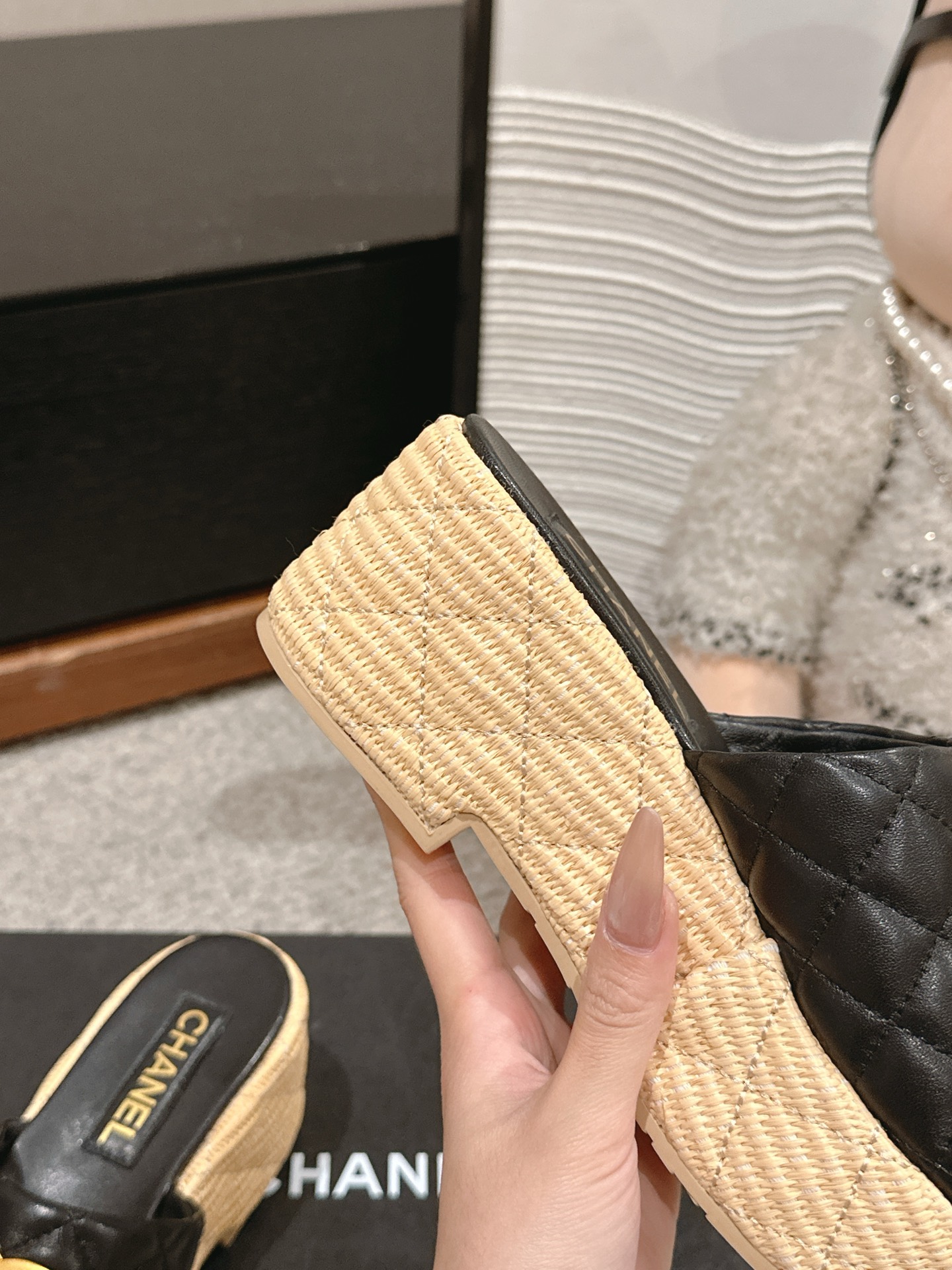 这款鞋子是AAAAA 1:1 质量 (非常棒). 使用了和原版一模一样的材料. 商标部分也保持了和香奈儿/Chanel一样. 图片拍摄是实物鞋子拍摄, 您所收到的实物保证和我们图片一模一样.