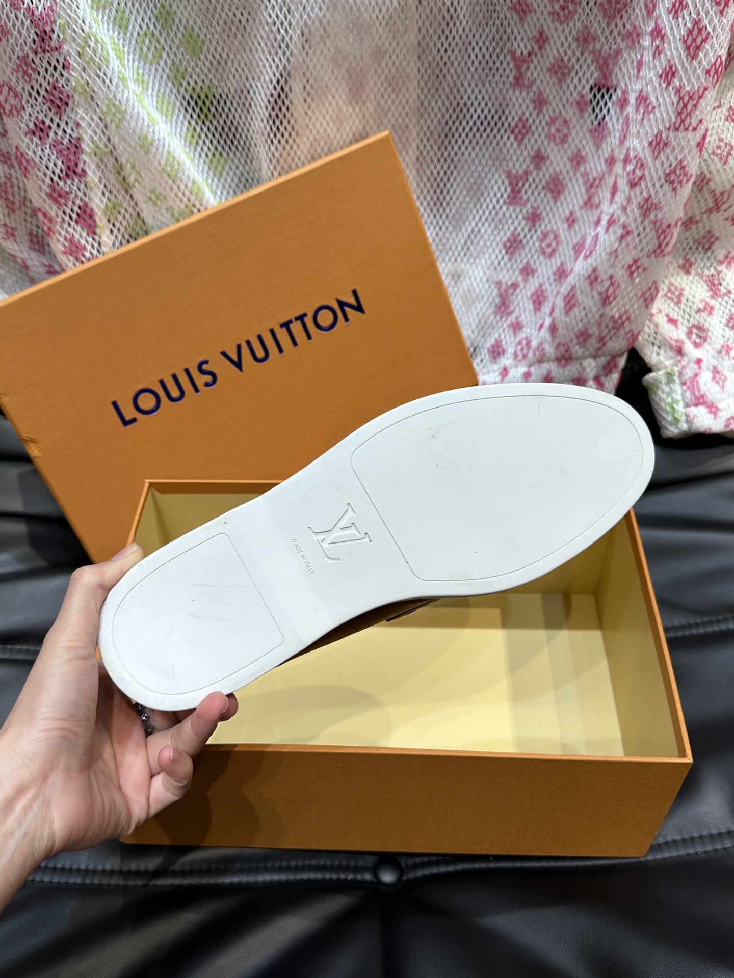 这款鞋子是AAAAA 1:1 质量 (非常棒). 使用了和原版一模一样的材料. 商标部分也保持了和路易威登/Louis Vuitton一样. 图片拍摄是实物鞋子拍摄, 您所收到的实物保证和我们图片一模一样.