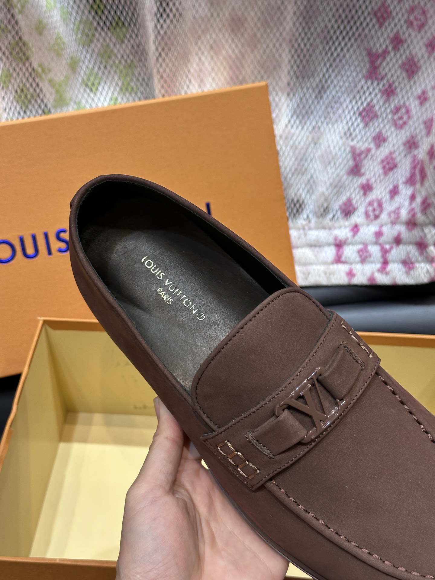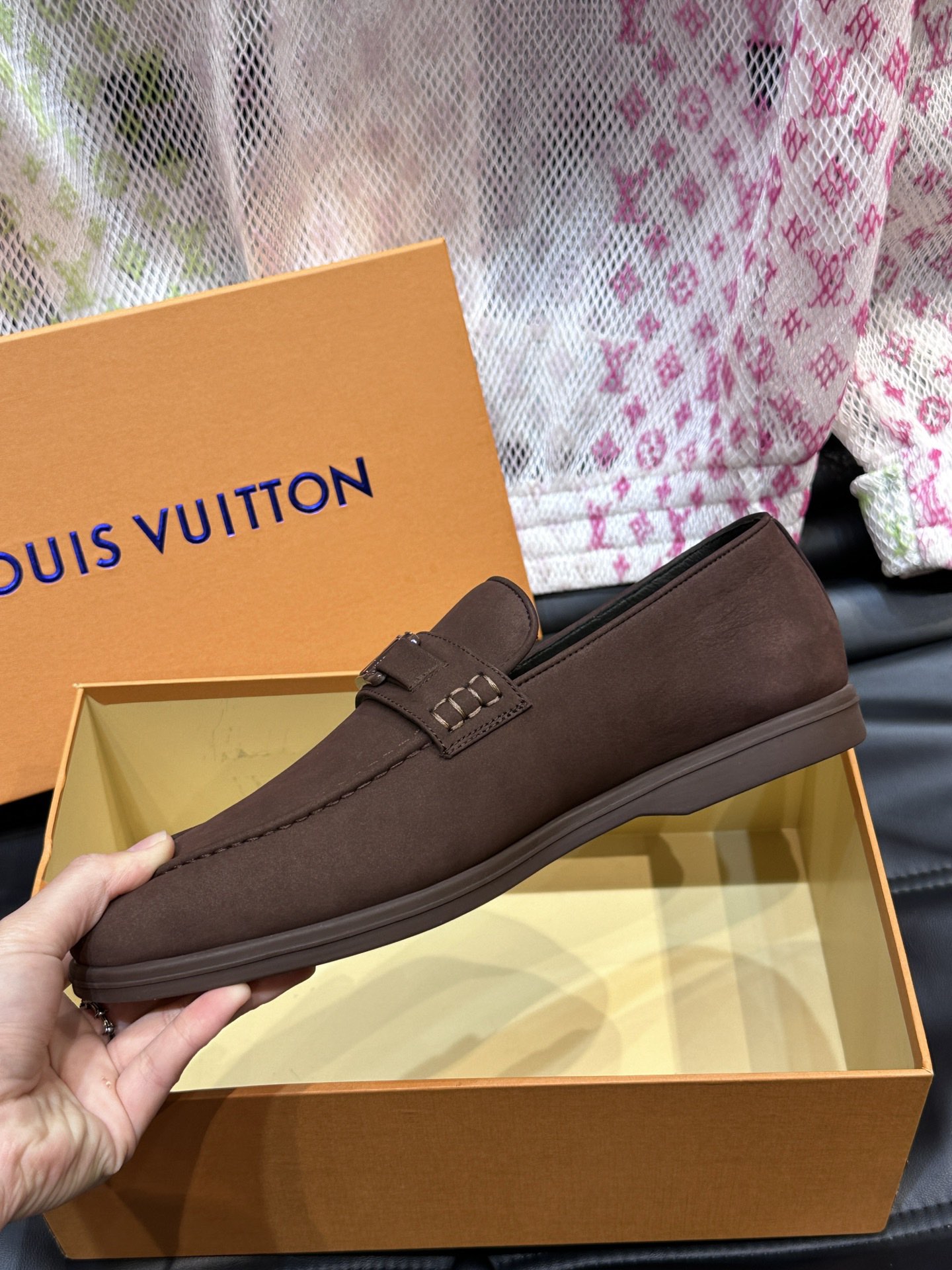 这款鞋子是AAAAA 1:1 质量 (非常棒). 使用了和原版一模一样的材料. 商标部分也保持了和路易威登/Louis Vuitton一样. 图片拍摄是实物鞋子拍摄, 您所收到的实物保证和我们图片一模一样.