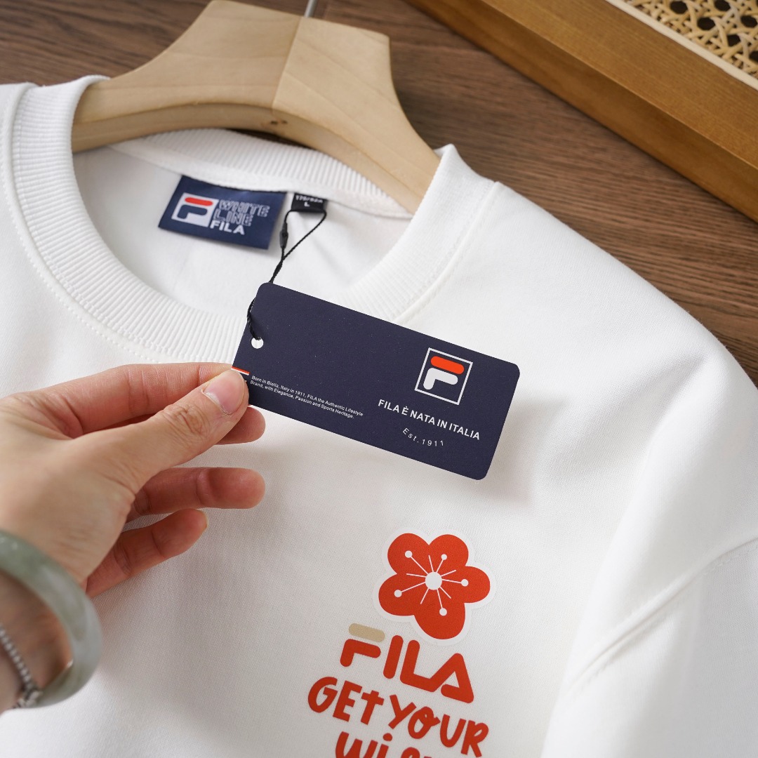这款衣服是AAAAA 1:1 质量 (非常棒). 使用了和原版一模一样的材料. 商标部分也保持了和Fila一样. 图片拍摄是实物衣服拍摄, 您所收到的实物保证和我们图片一模一样.