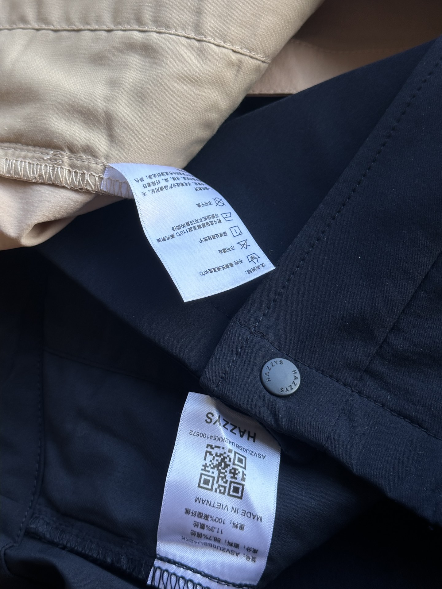 这款衣服是AAAAA 1:1 质量 (非常棒). 使用了和原版一模一样的材料. 商标部分也保持了和Hazzys一样. 图片拍摄是实物衣服拍摄, 您所收到的实物保证和我们图片一模一样.