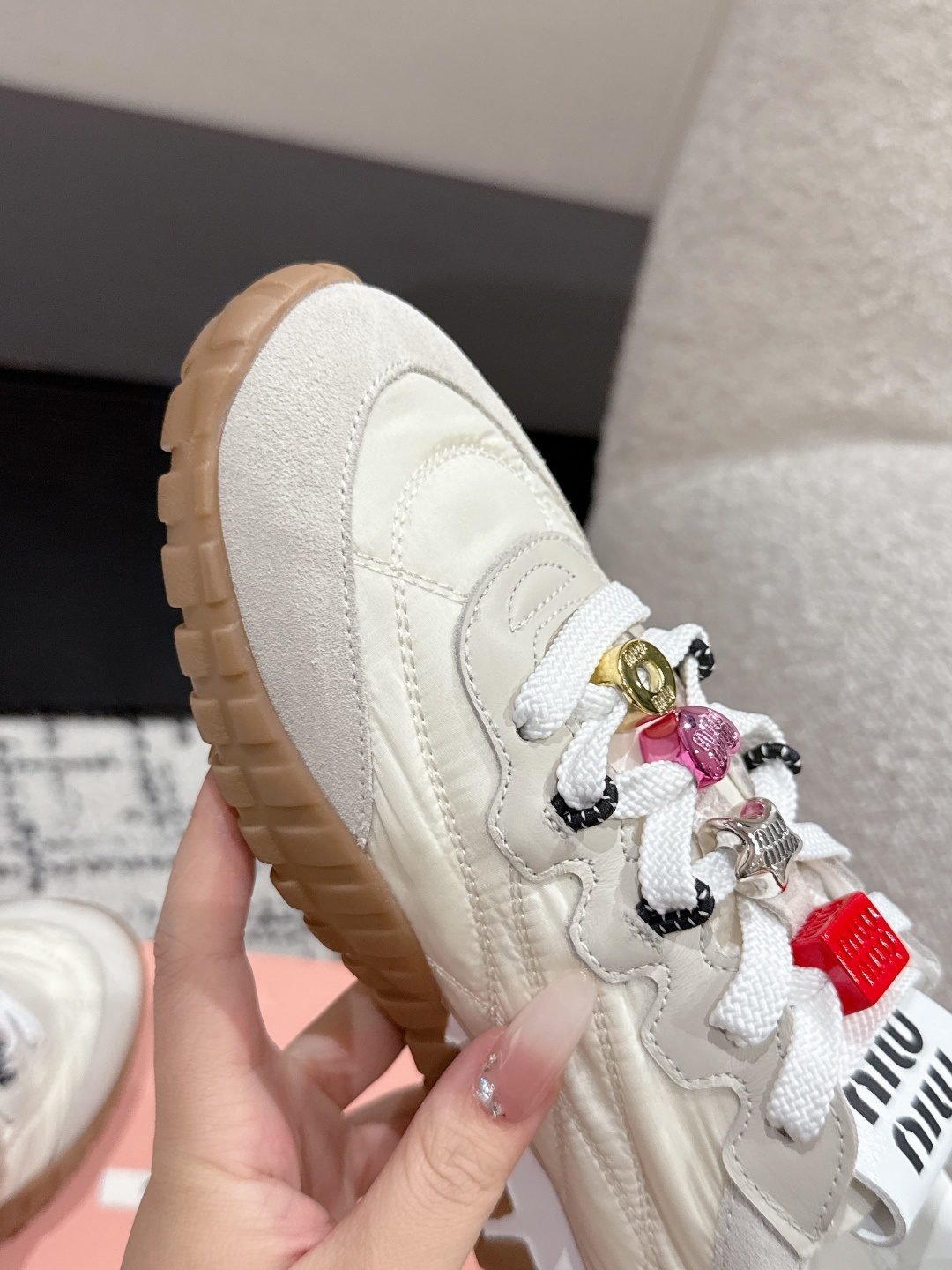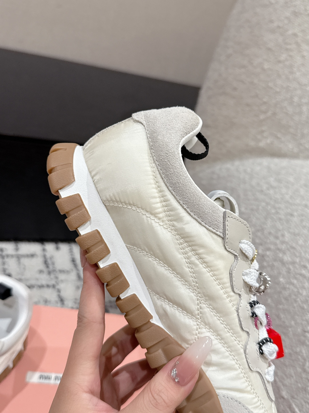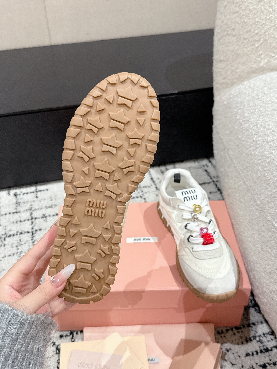 这款鞋子是AAAAA 1:1 质量 (非常棒). 使用了和原版一模一样的材料. 商标部分也保持了和缪缪/Miu Miu一样. 图片拍摄是实物鞋子拍摄, 您所收到的实物保证和我们图片一模一样.