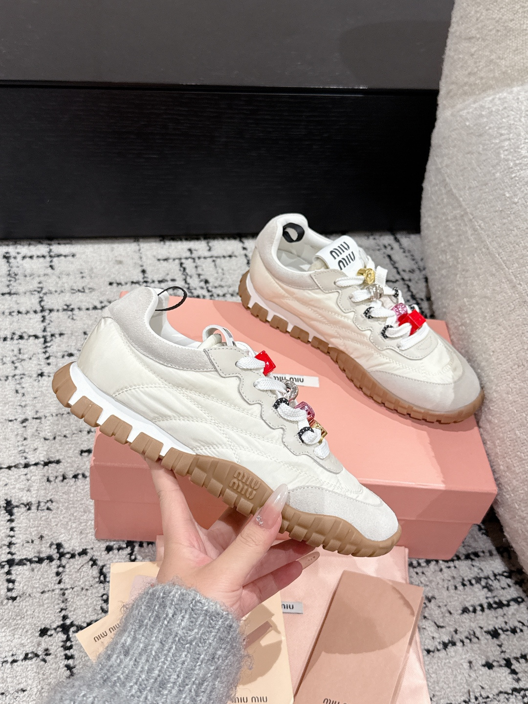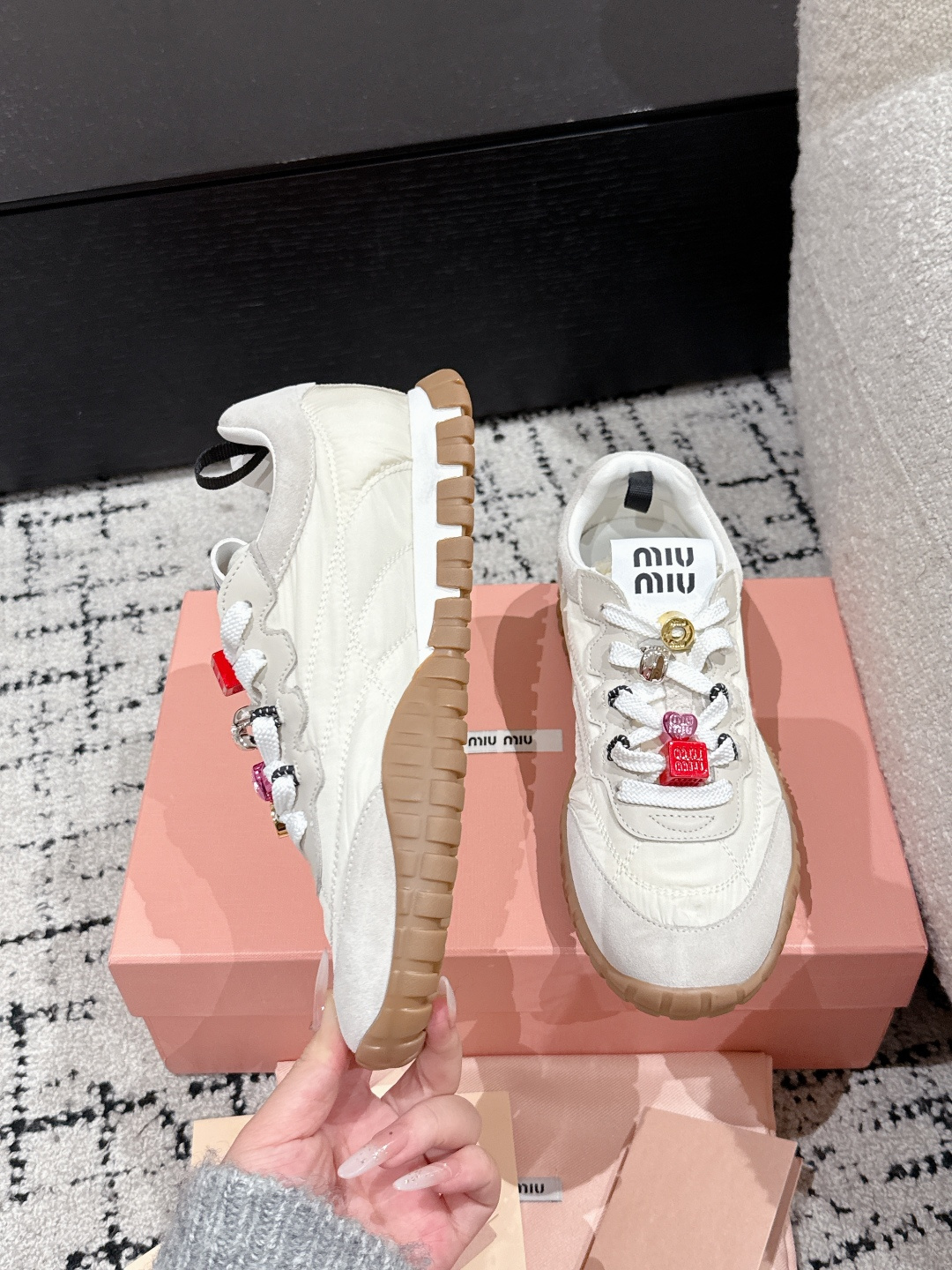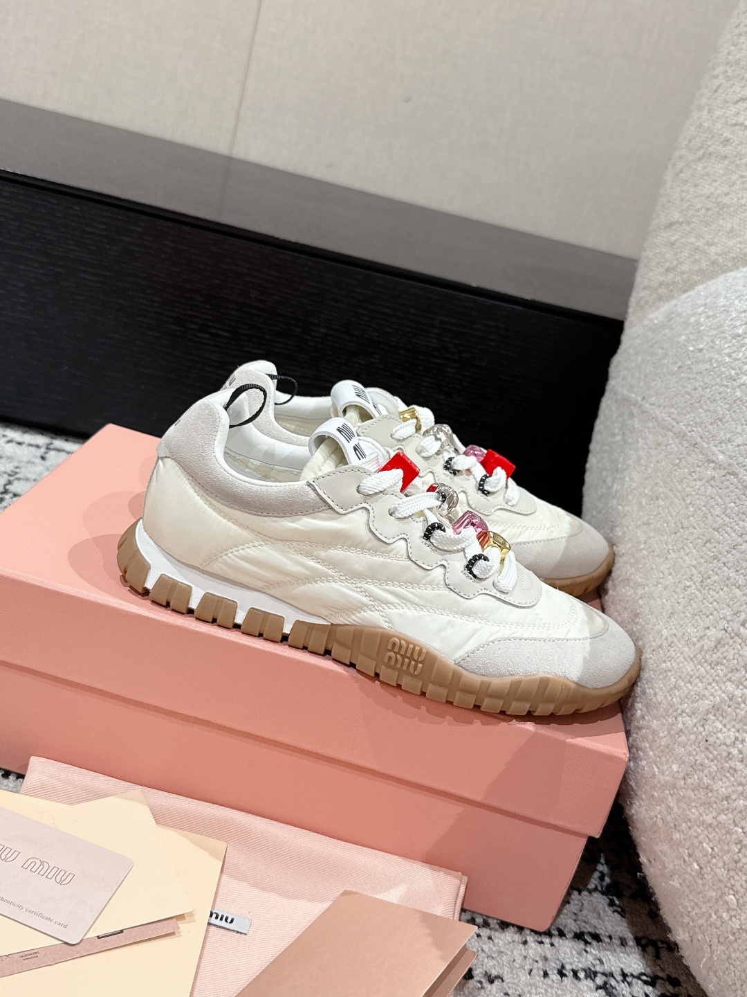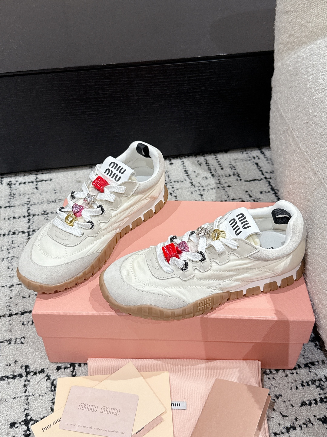 这款鞋子是AAAAA 1:1 质量 (非常棒). 使用了和原版一模一样的材料. 商标部分也保持了和缪缪/Miu Miu一样. 图片拍摄是实物鞋子拍摄, 您所收到的实物保证和我们图片一模一样.