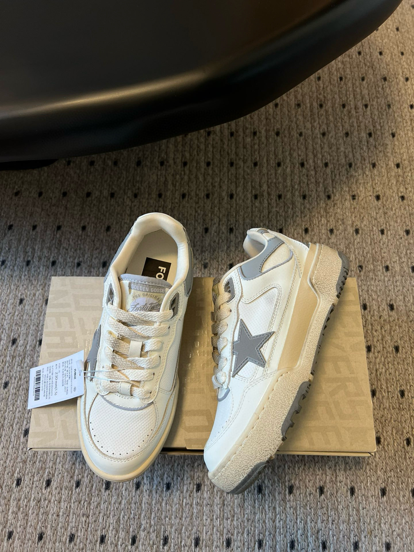 这款鞋子是AAAAA 1:1 质量 (非常棒). 使用了和原版一模一样的材料. 商标部分也保持了和Golden Goose一样. 图片拍摄是实物鞋子拍摄, 您所收到的实物保证和我们图片一模一样.