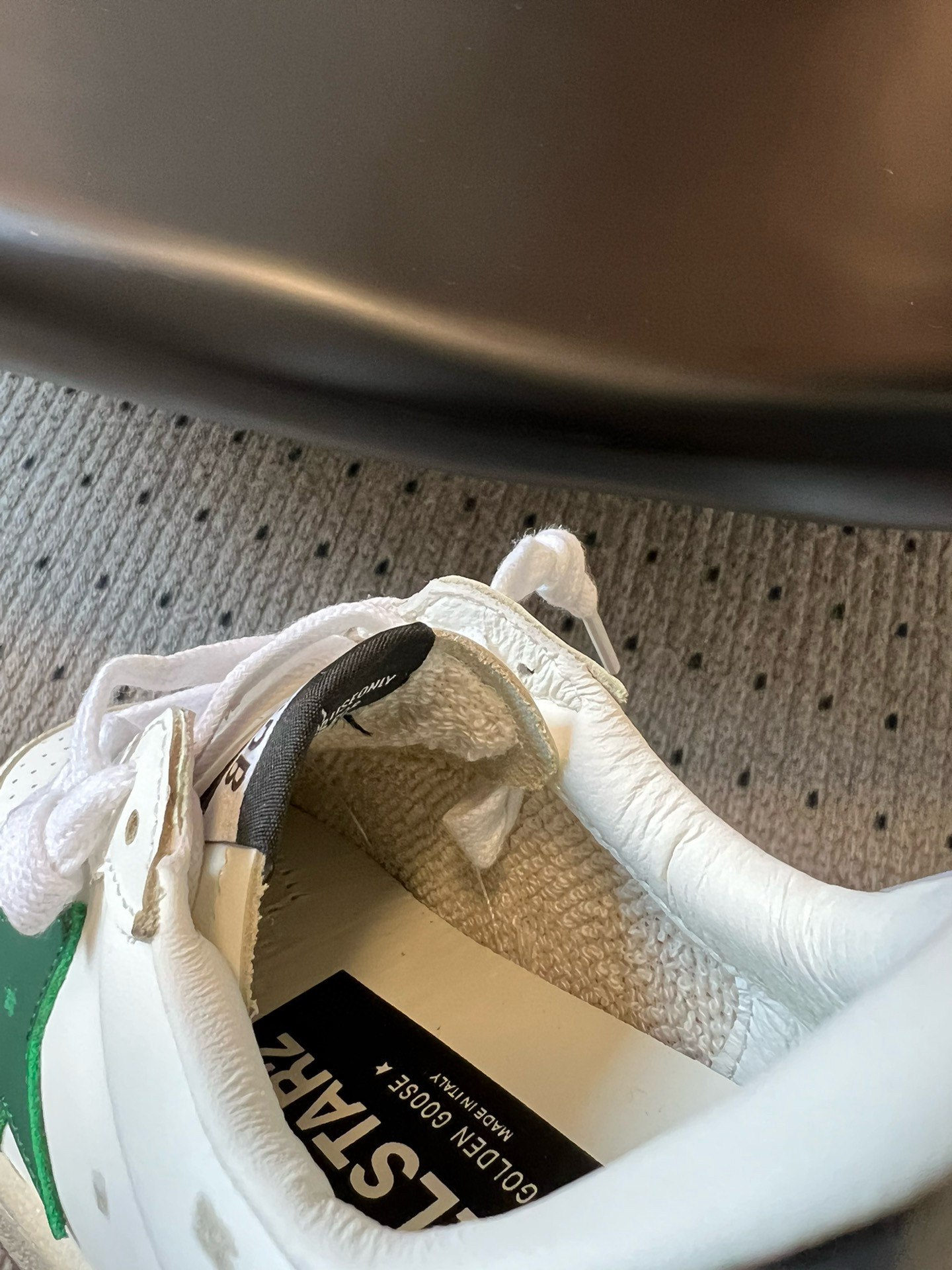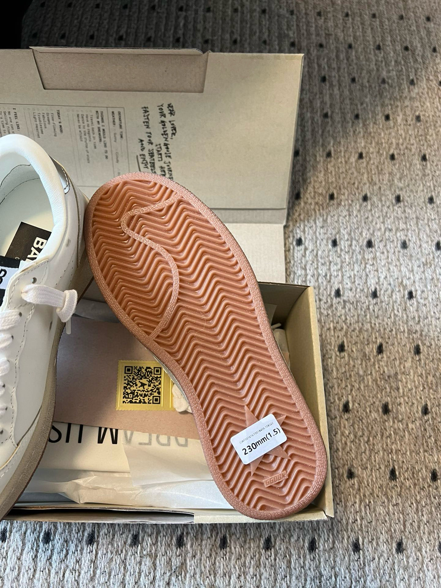 这款鞋子是AAAAA 1:1 质量 (非常棒). 使用了和原版一模一样的材料. 商标部分也保持了和Golden Goose一样. 图片拍摄是实物鞋子拍摄, 您所收到的实物保证和我们图片一模一样.