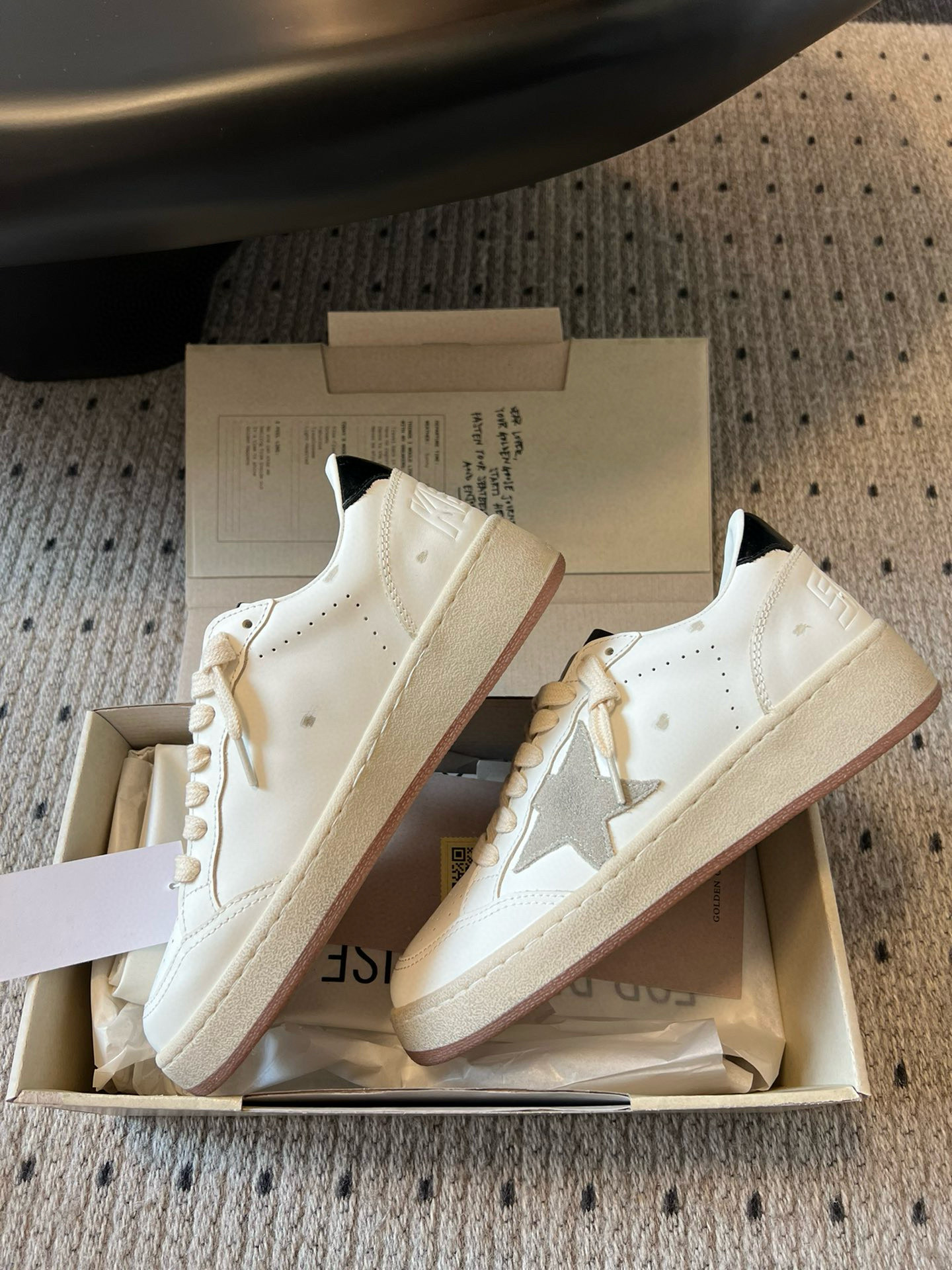 这款鞋子是AAAAA 1:1 质量 (非常棒). 使用了和原版一模一样的材料. 商标部分也保持了和Golden Goose一样. 图片拍摄是实物鞋子拍摄, 您所收到的实物保证和我们图片一模一样.