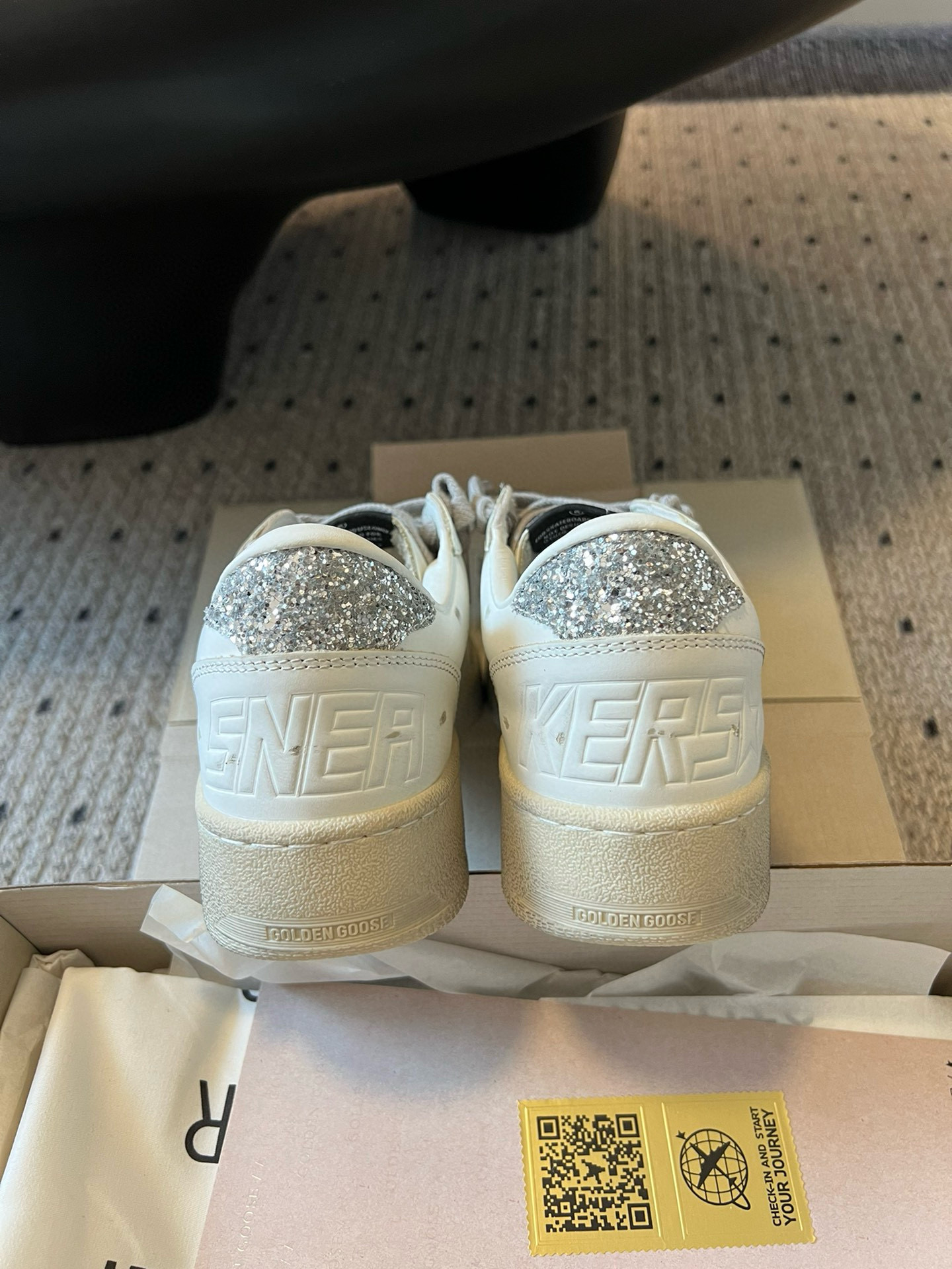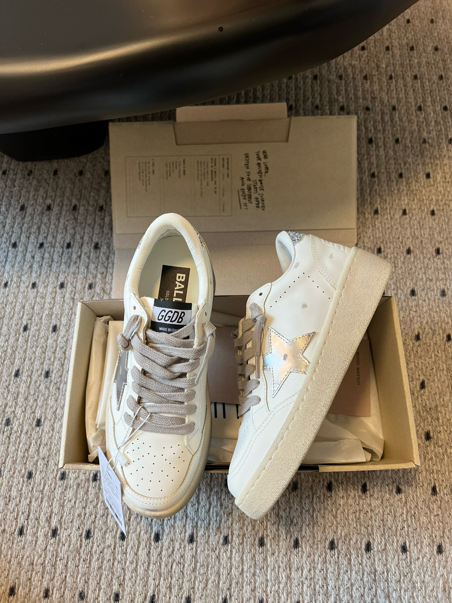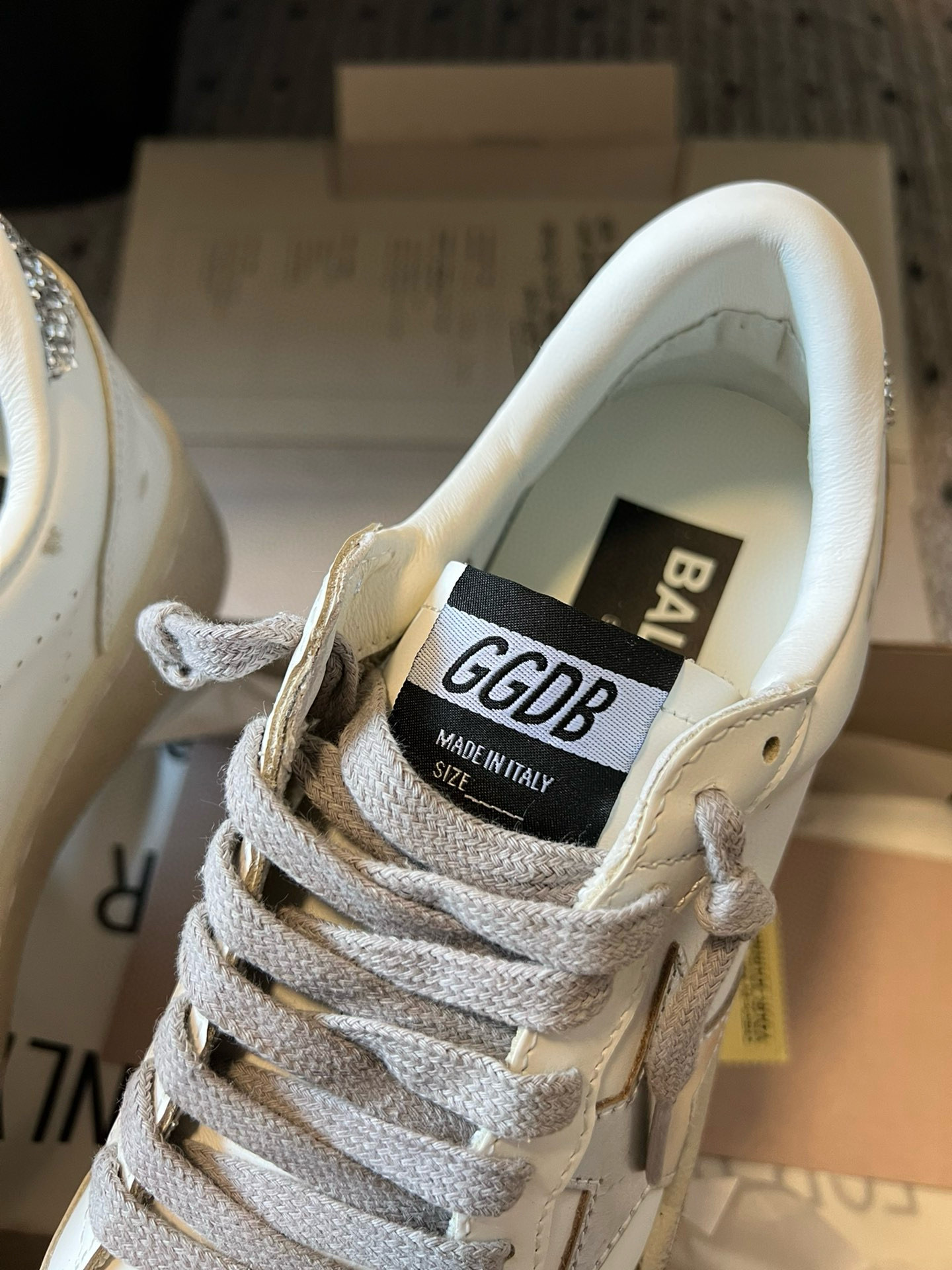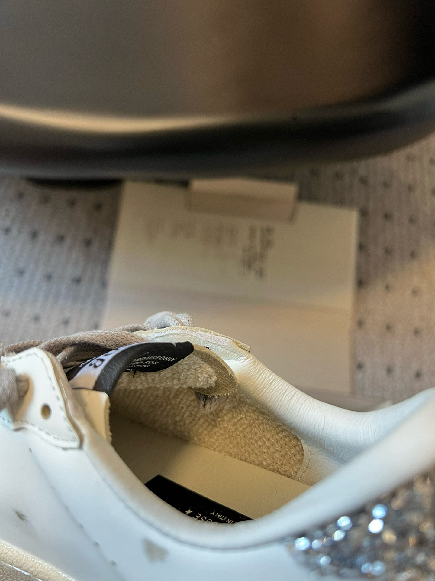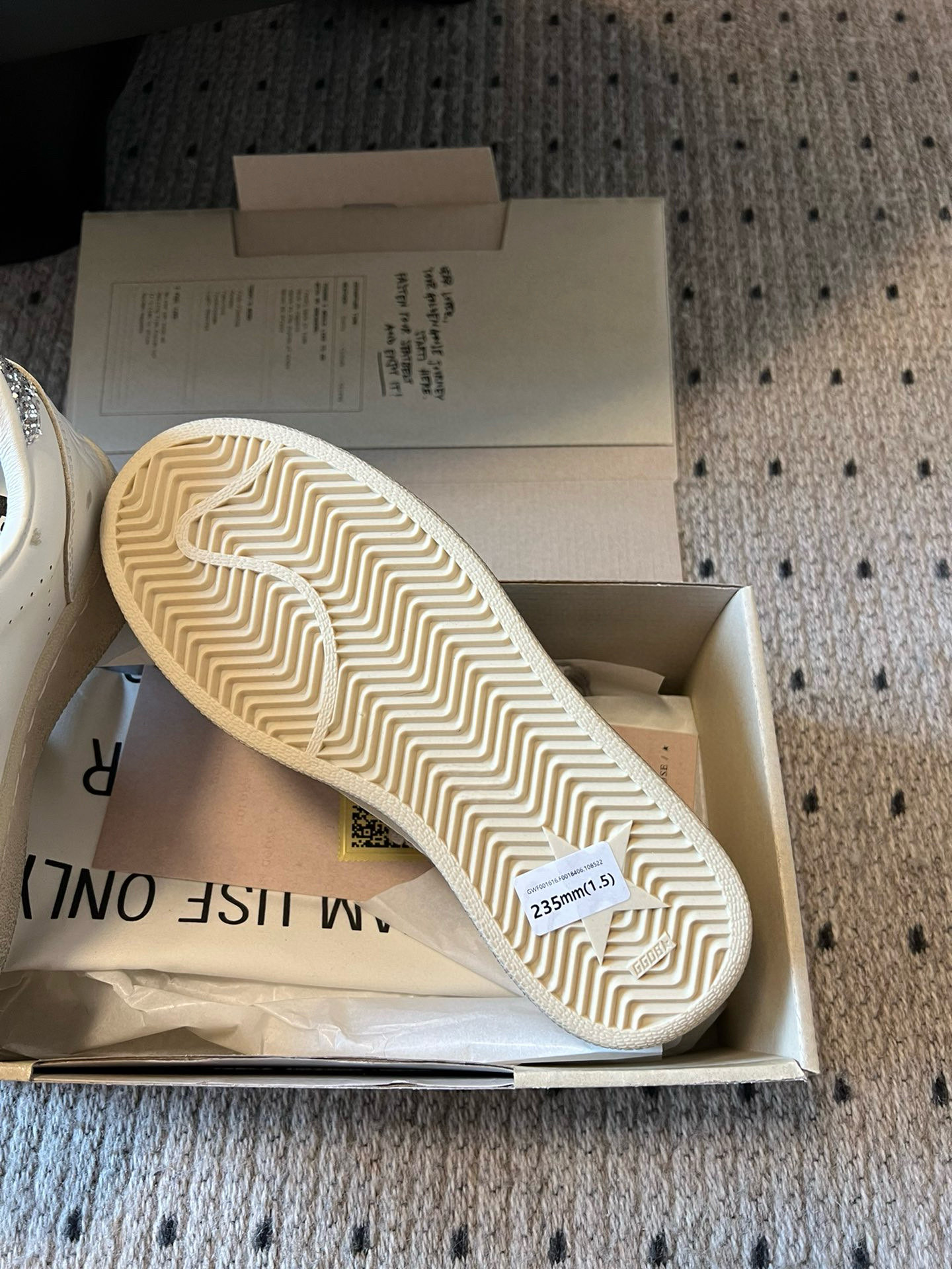 这款鞋子是AAAAA 1:1 质量 (非常棒). 使用了和原版一模一样的材料. 商标部分也保持了和Golden Goose一样. 图片拍摄是实物鞋子拍摄, 您所收到的实物保证和我们图片一模一样.