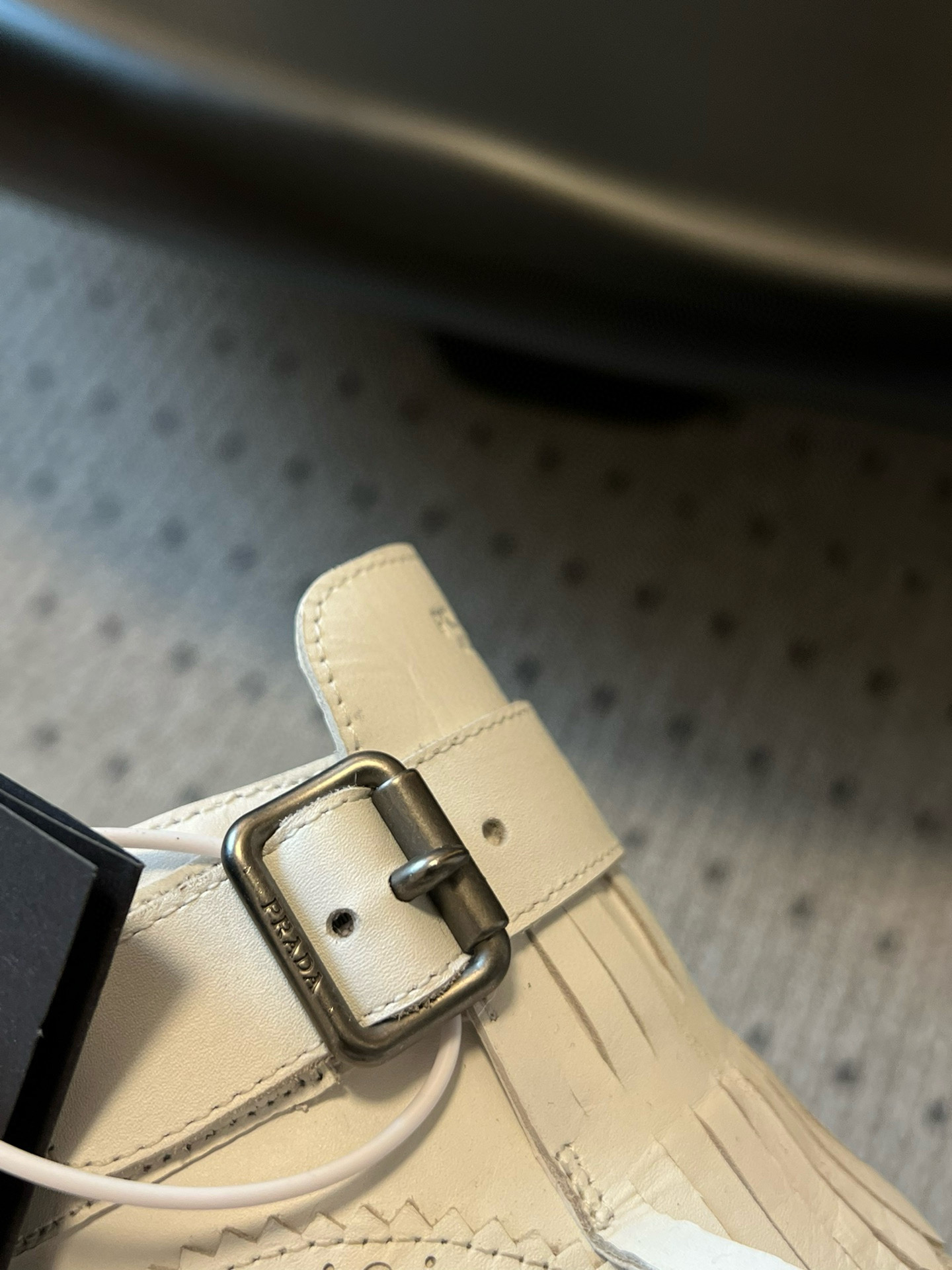 这款鞋子是AAAAA 1:1 质量 (非常棒). 使用了和原版一模一样的材料. 商标部分也保持了和普拉达/Prada一样. 图片拍摄是实物鞋子拍摄, 您所收到的实物保证和我们图片一模一样.
