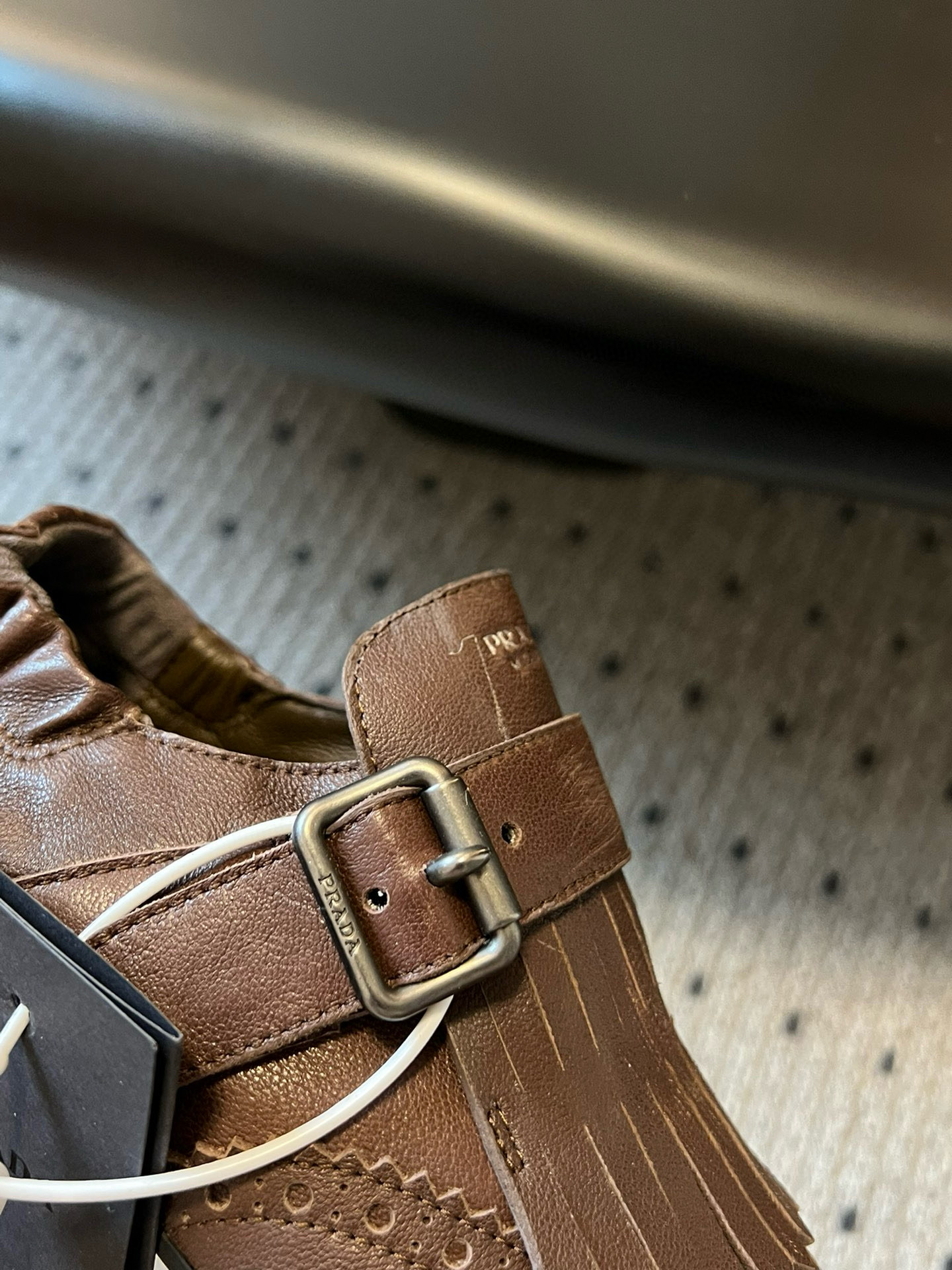 这款鞋子是AAAAA 1:1 质量 (非常棒). 使用了和原版一模一样的材料. 商标部分也保持了和普拉达/Prada一样. 图片拍摄是实物鞋子拍摄, 您所收到的实物保证和我们图片一模一样.