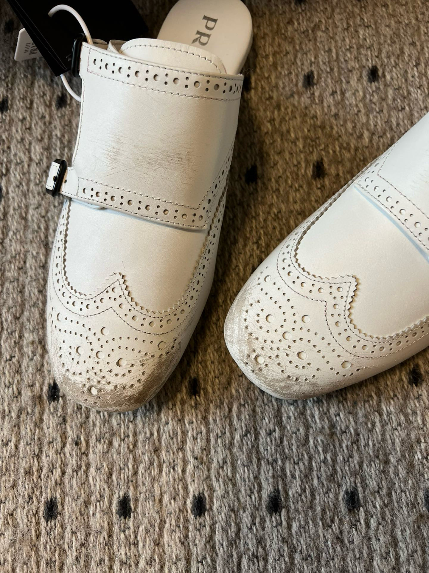 这款鞋子是AAAAA 1:1 质量 (非常棒). 使用了和原版一模一样的材料. 商标部分也保持了和普拉达/Prada一样. 图片拍摄是实物鞋子拍摄, 您所收到的实物保证和我们图片一模一样.