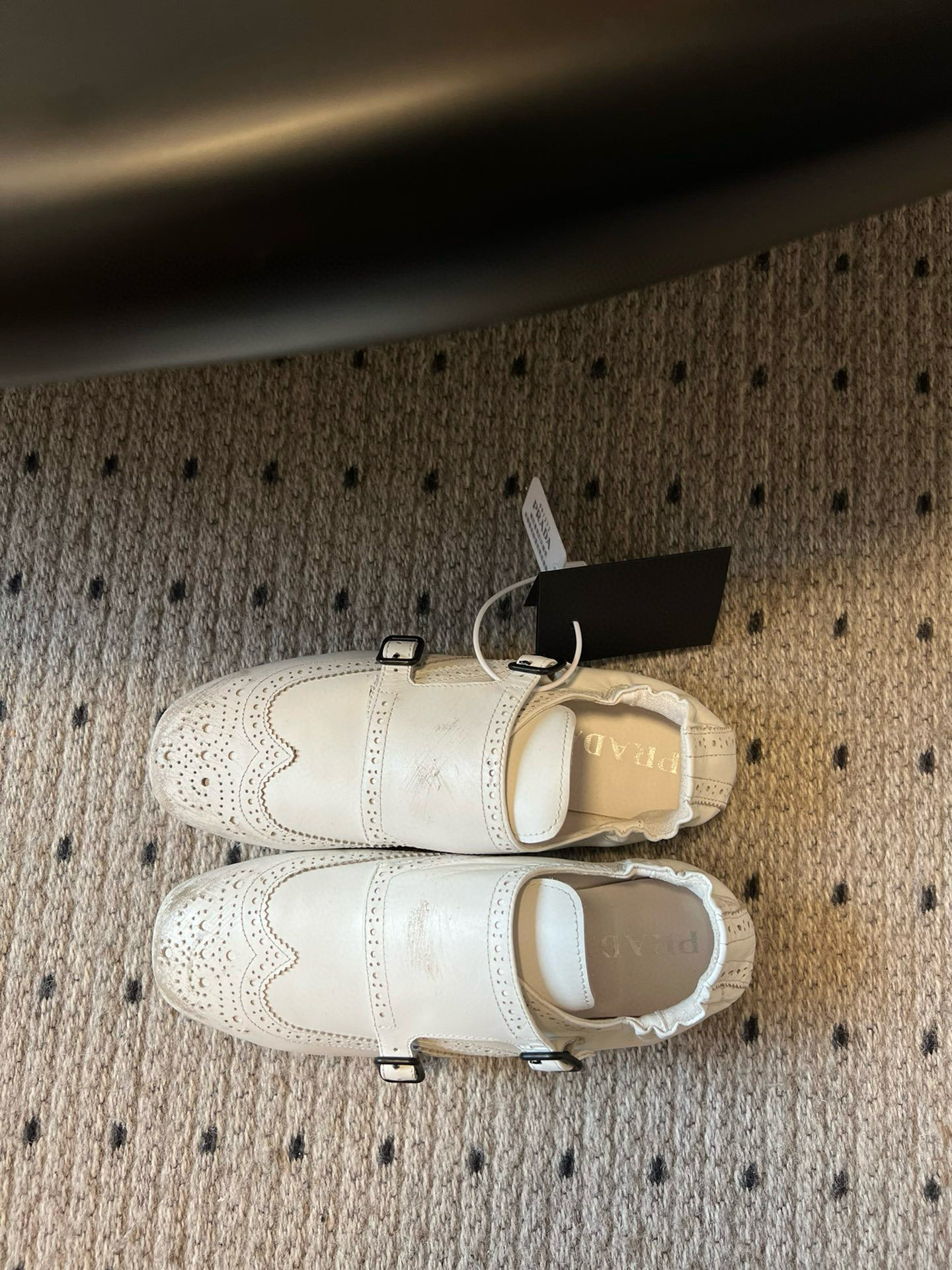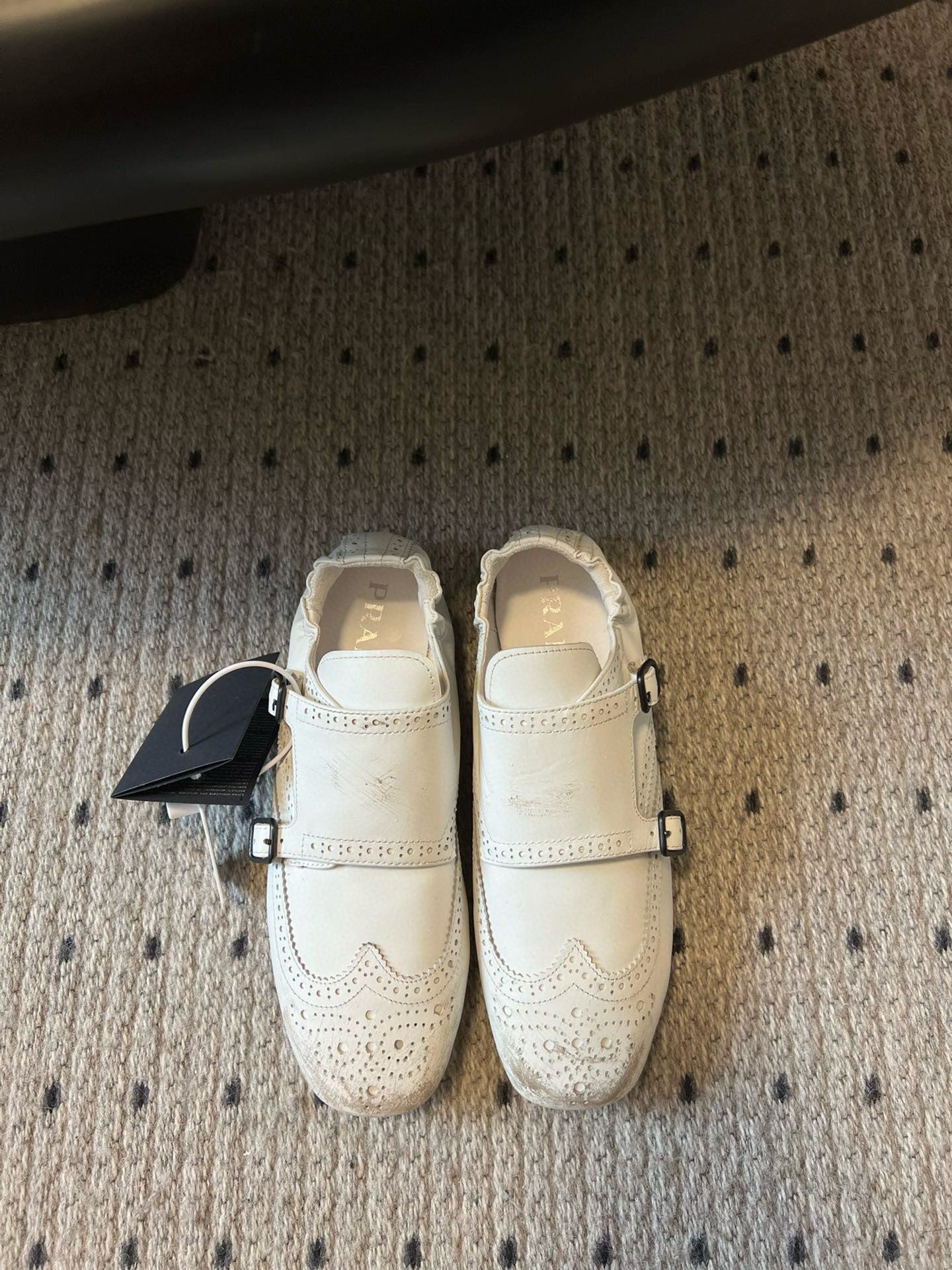 这款鞋子是AAAAA 1:1 质量 (非常棒). 使用了和原版一模一样的材料. 商标部分也保持了和普拉达/Prada一样. 图片拍摄是实物鞋子拍摄, 您所收到的实物保证和我们图片一模一样.