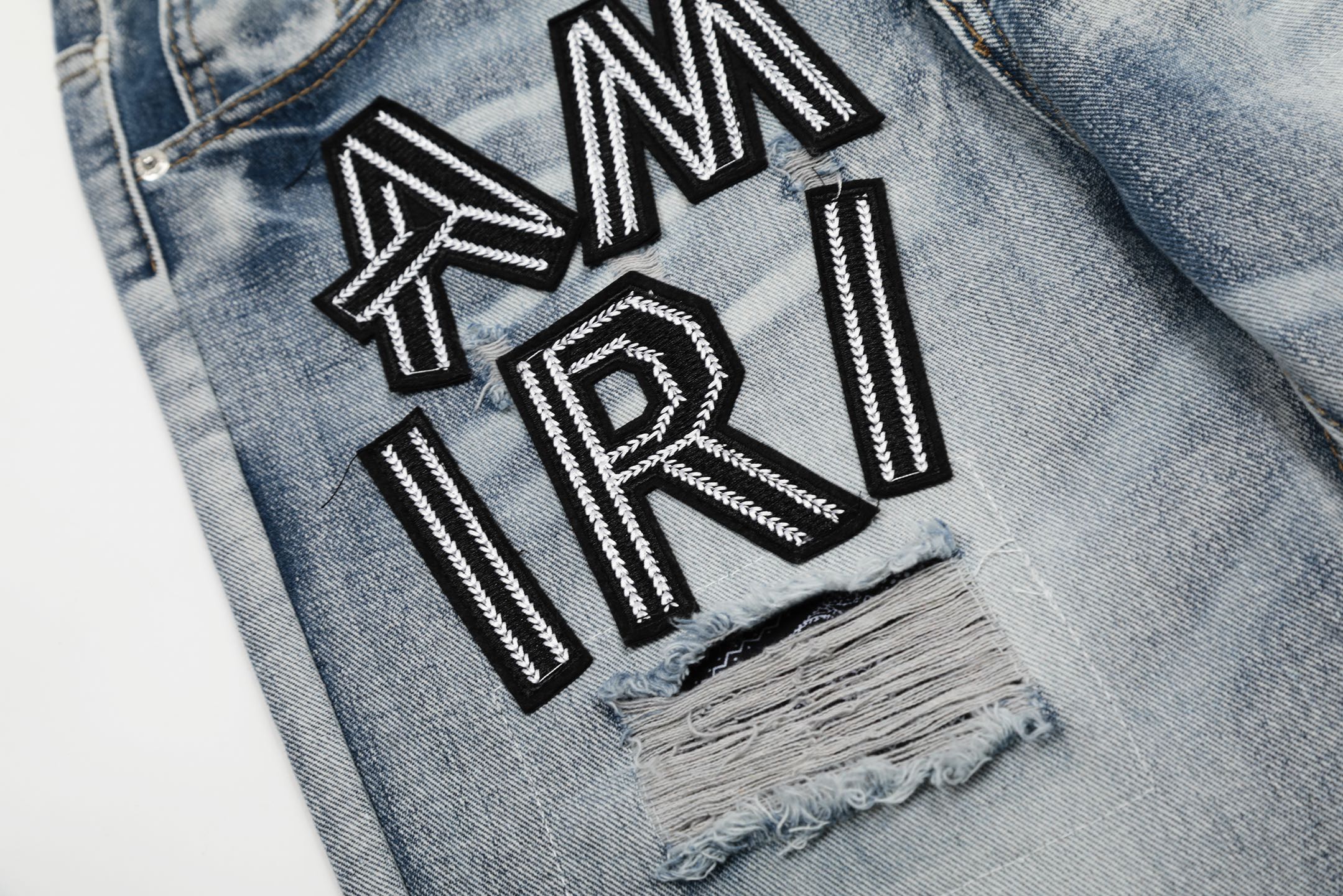 这款衣服是AAAAA 1:1 质量 (非常棒). 使用了和原版一模一样的材料. 商标部分也保持了和AMIRI一样. 图片拍摄是实物衣服拍摄, 您所收到的实物保证和我们图片一模一样.