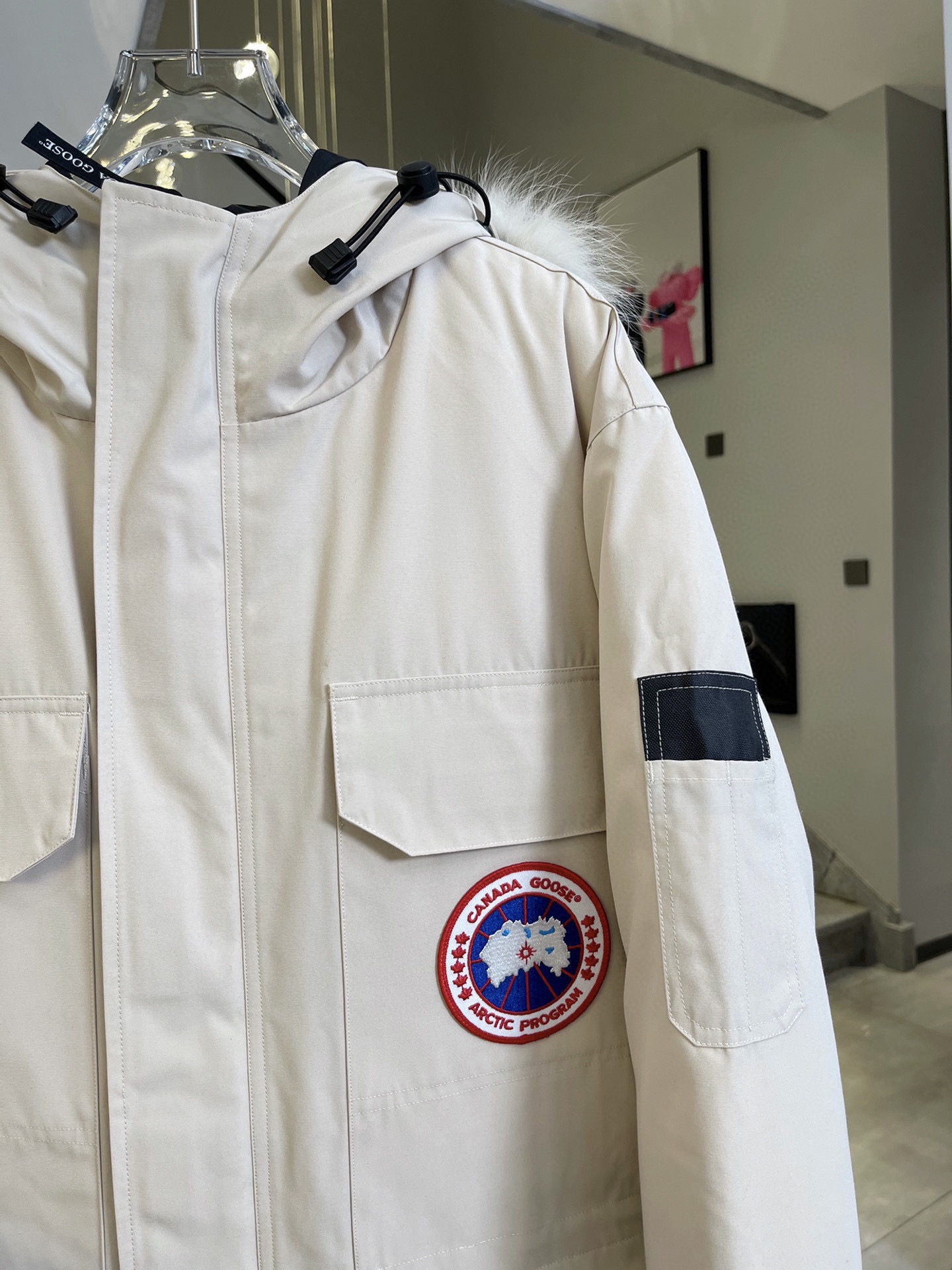 这款衣服是AAAAA 1:1 质量 (非常棒). 使用了和原版一模一样的材料. 商标部分也保持了和Canada Goose一样. 图片拍摄是实物衣服拍摄, 您所收到的实物保证和我们图片一模一样.