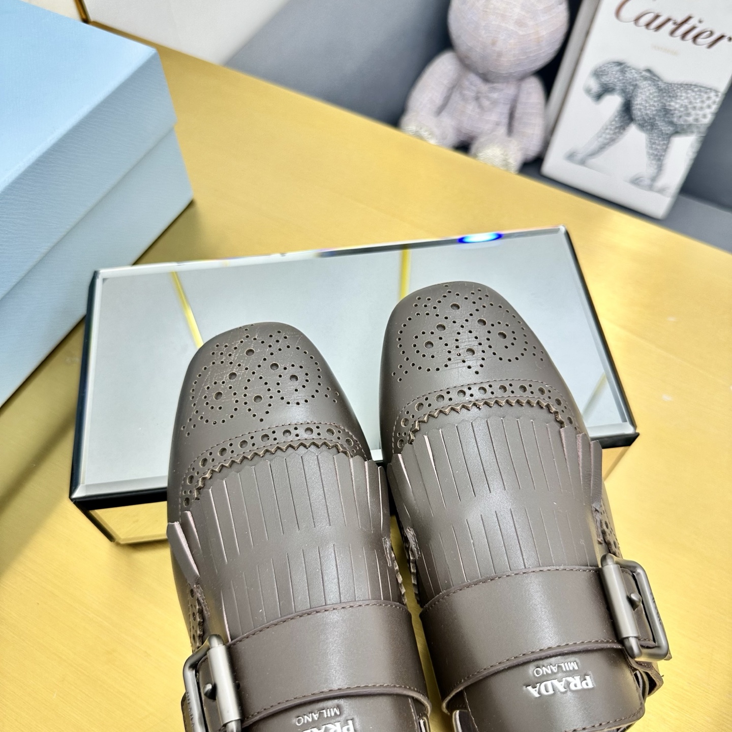这款鞋子是AAAAA 1:1 质量 (非常棒). 使用了和原版一模一样的材料. 商标部分也保持了和普拉达/Prada一样. 图片拍摄是实物鞋子拍摄, 您所收到的实物保证和我们图片一模一样.