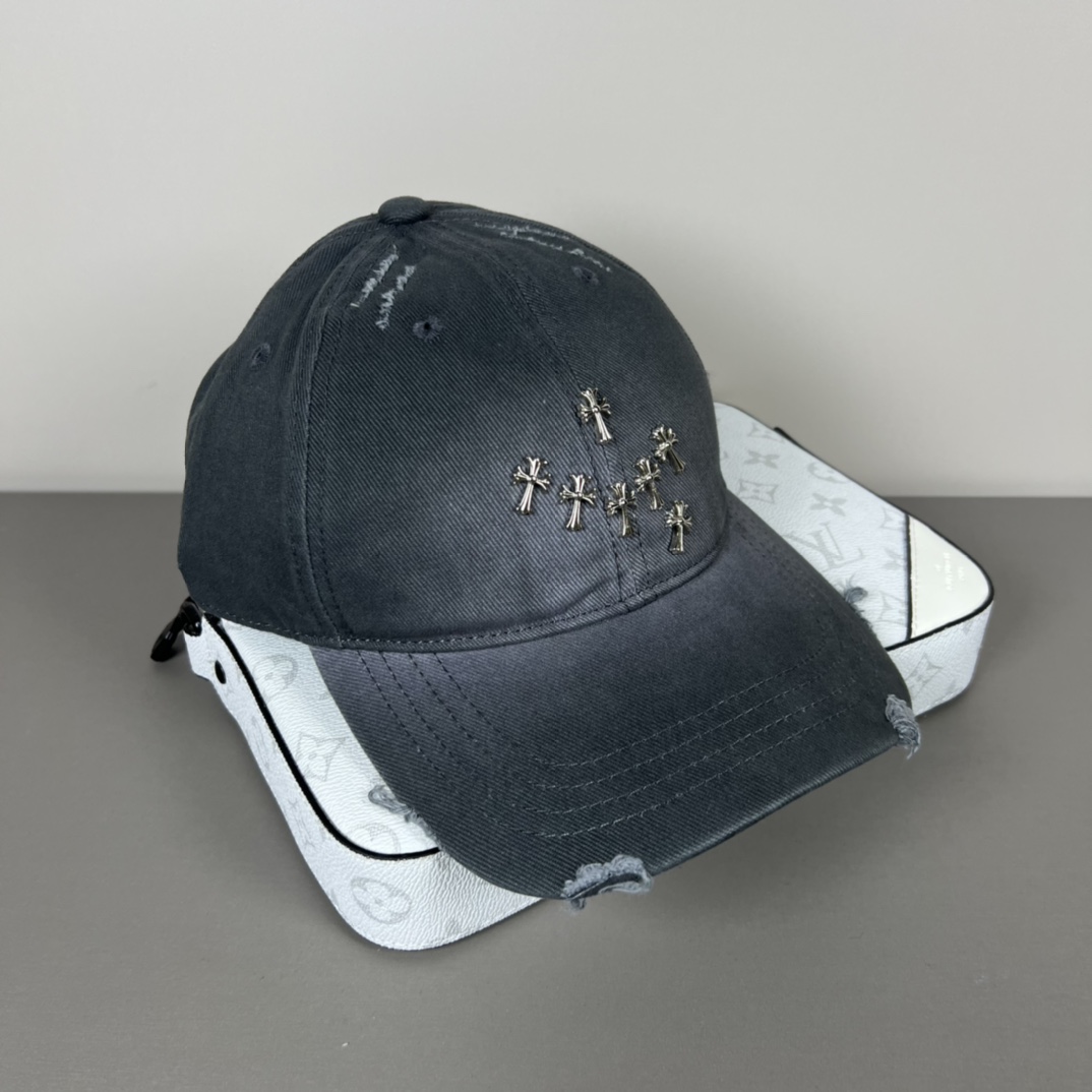 这款帽子是AAAAA 1:1 质量 (非常棒). 使用了和原版一模一样的材料. 商标部分也保持了和克罗心/Chrome Hearts一样. 图片拍摄是实物帽子拍摄, 您所收到的实物保证和我们图片一模一样.