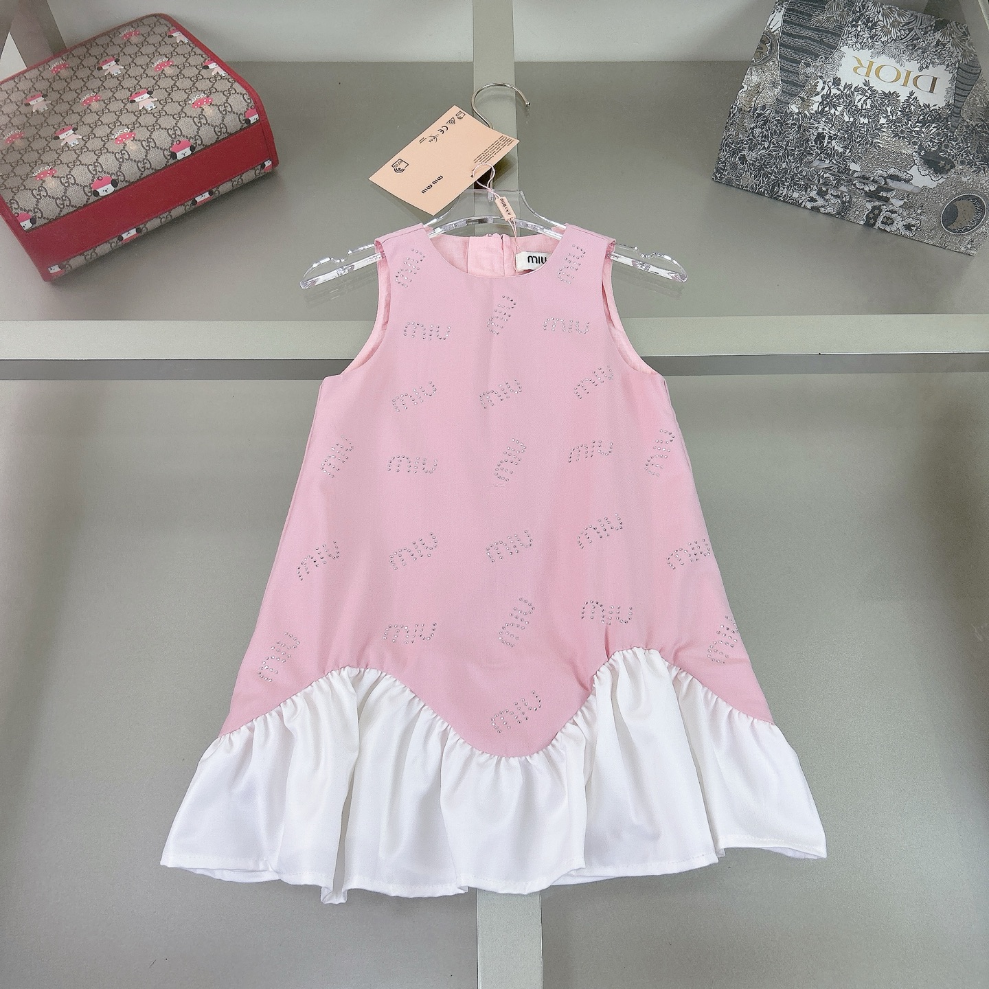 这款children's clothes是AAAAA 1:1 质量 (非常棒). 使用了和原版一模一样的材料. 商标部分也保持了和缪缪/Miu Miu一样. 图片拍摄是实物children's clothes拍摄, 您所收到的实物保证和我们图片一模一样.