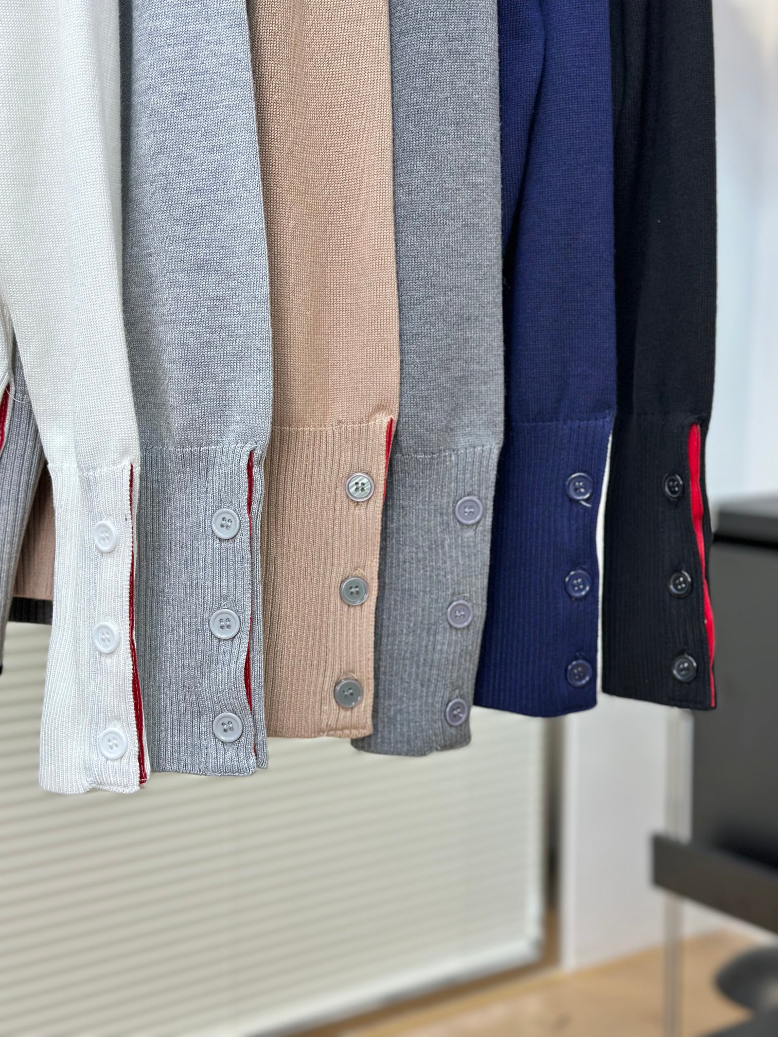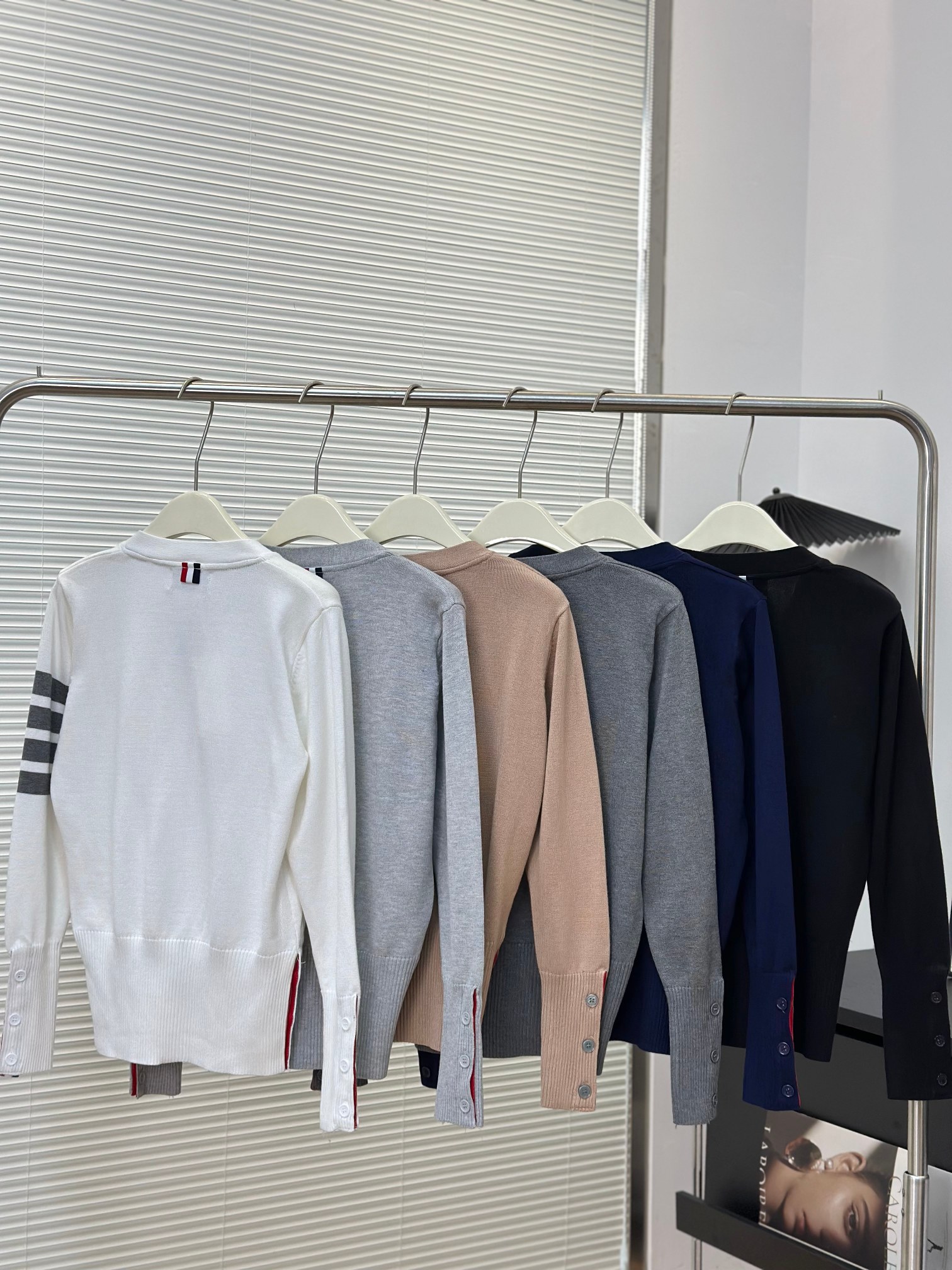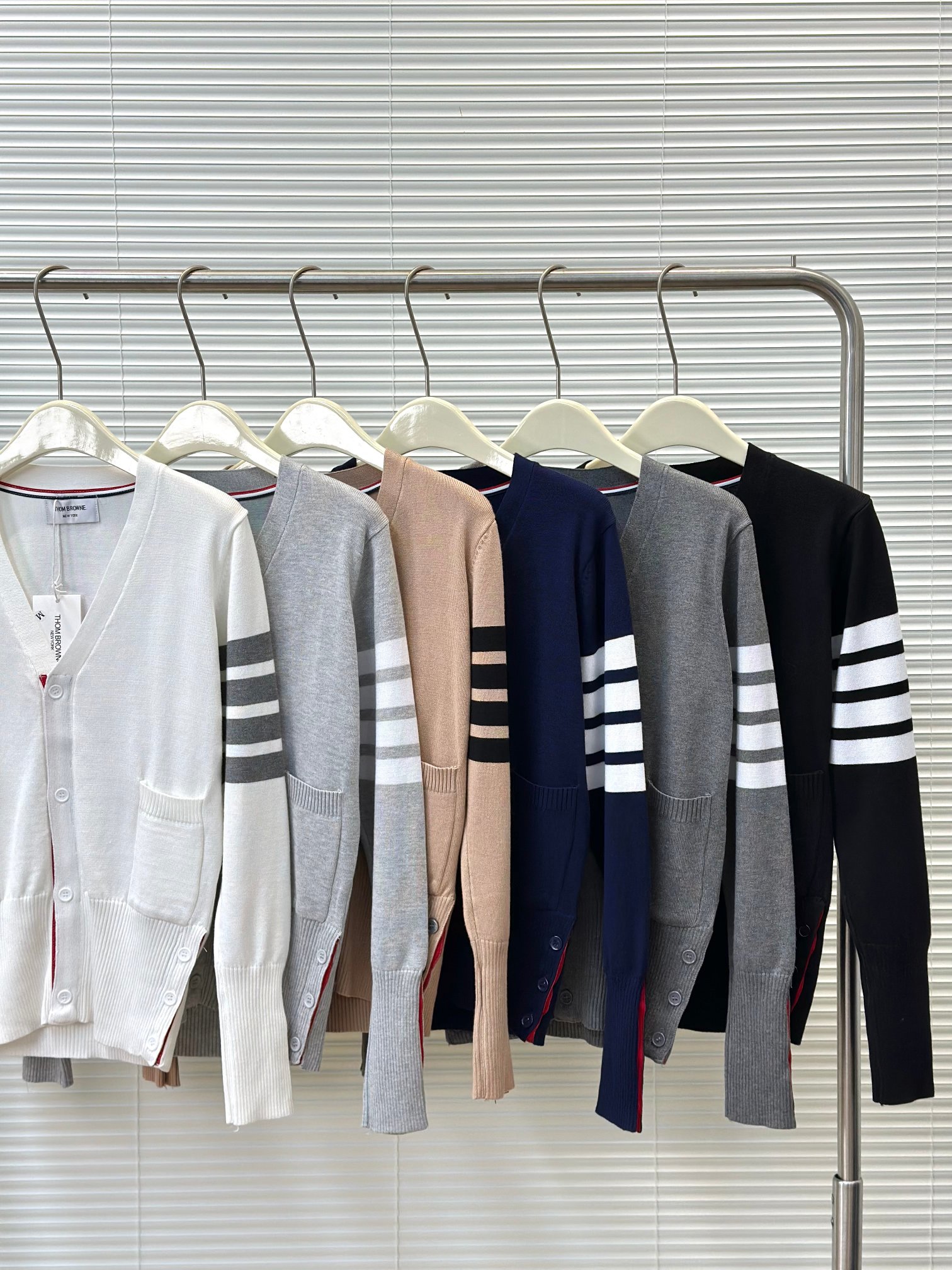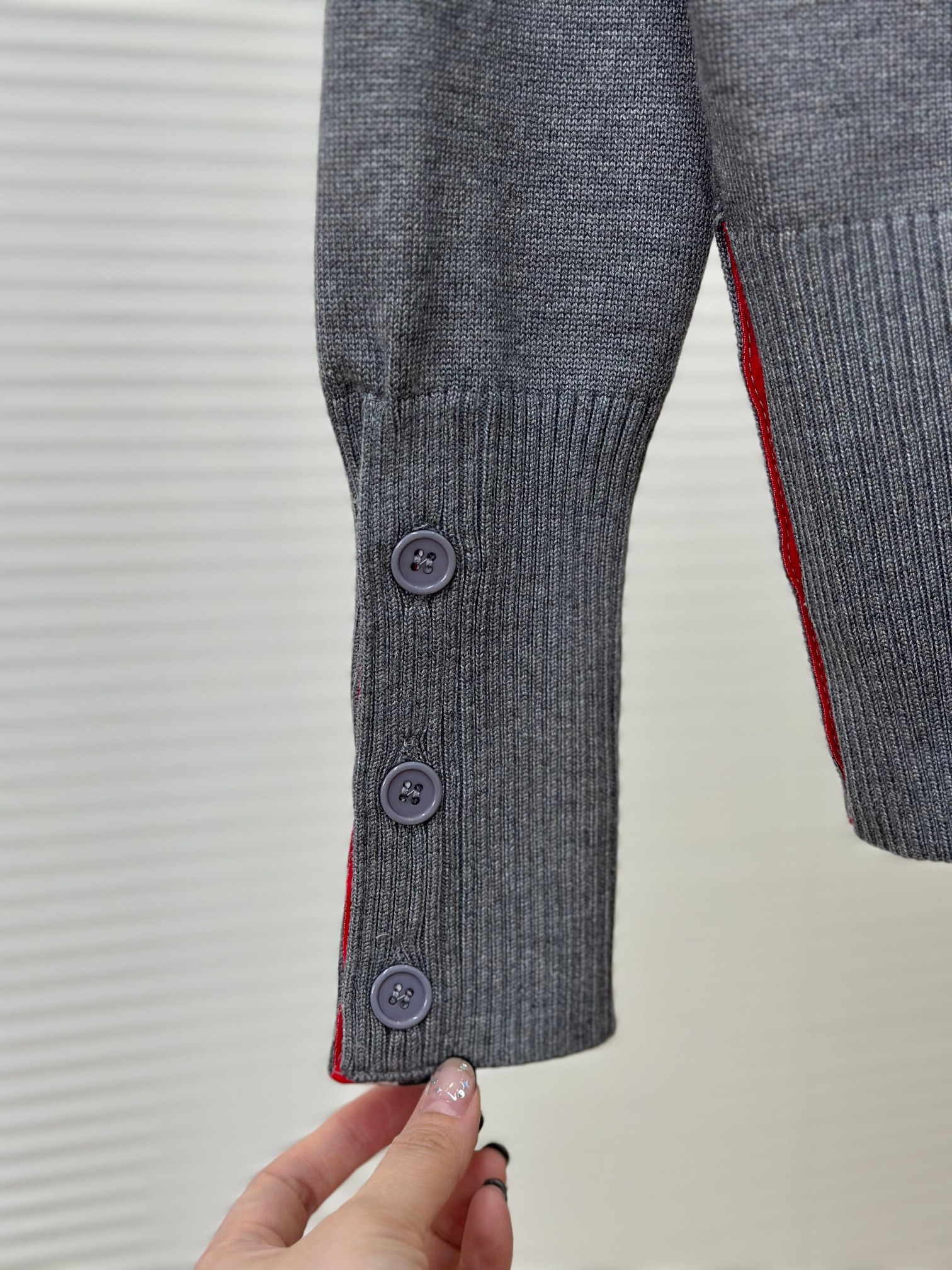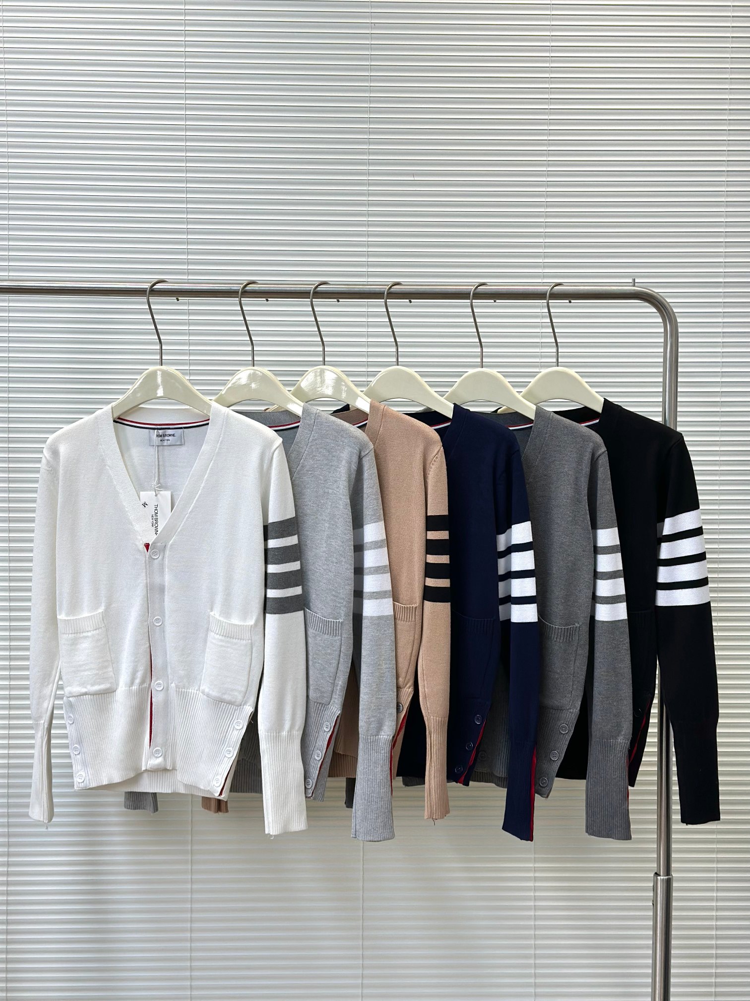 这款衣服是AAAAA 1:1 质量 (非常棒). 使用了和原版一模一样的材料. 商标部分也保持了和汤姆布朗/Thom Browne一样. 图片拍摄是实物衣服拍摄, 您所收到的实物保证和我们图片一模一样.