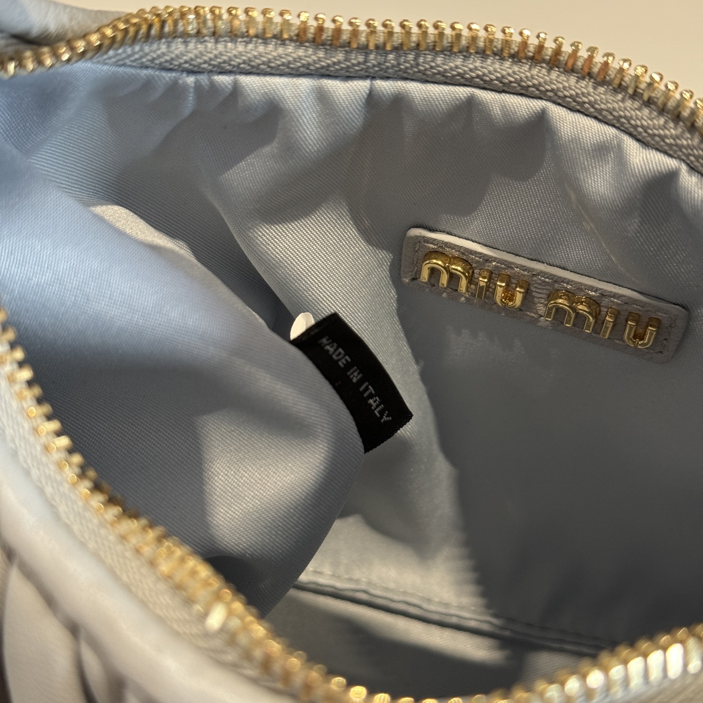 这款包包是AAAAA 1:1 质量 (非常棒). 使用了和原版一模一样的材料. 商标部分也保持了和缪缪/Miu Miu一样. 图片拍摄是实物包包拍摄, 您所收到的实物保证和我们图片一模一样.