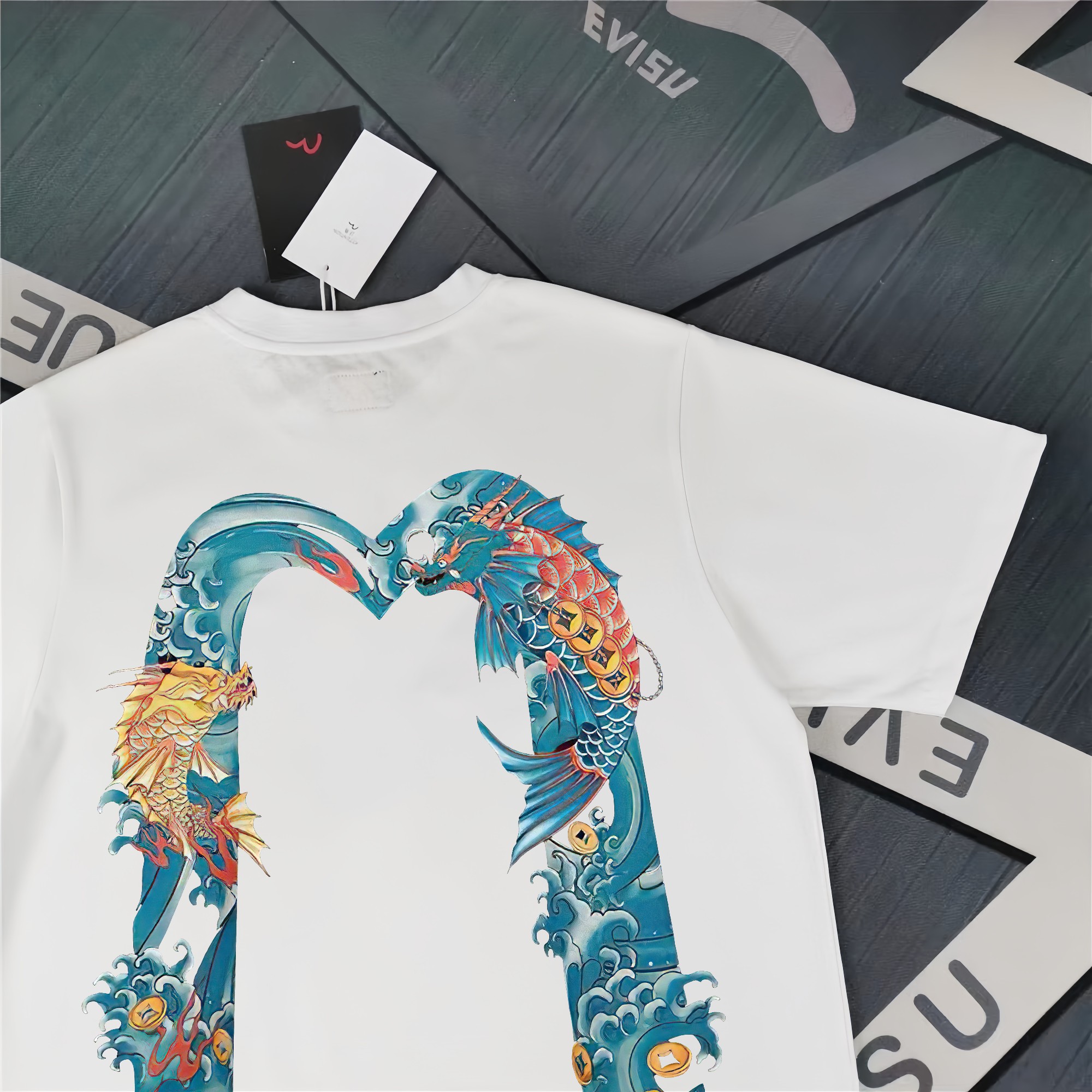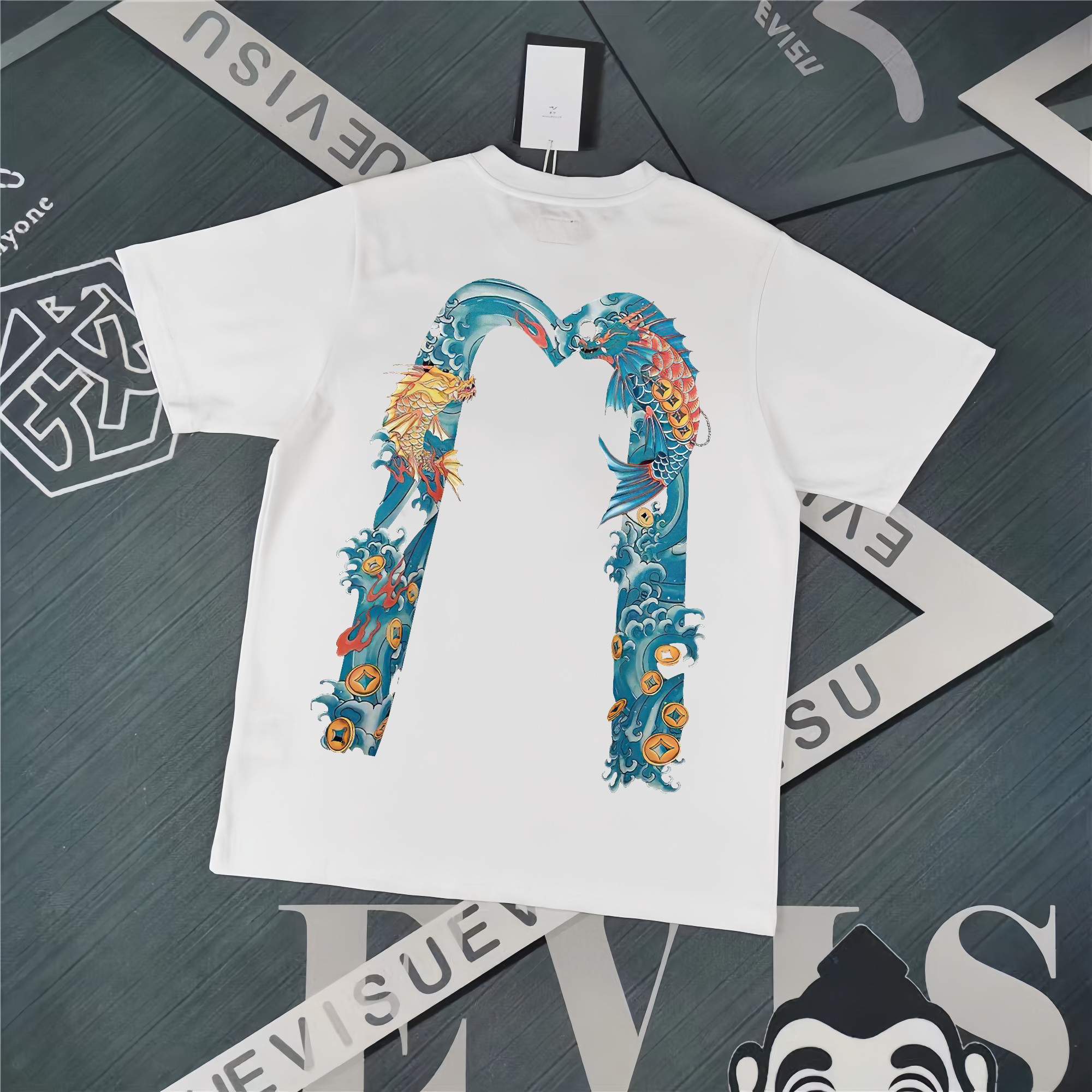 这款衣服是AAAAA 1:1 质量 (非常棒). 使用了和原版一模一样的材料. 商标部分也保持了和EVISU一样. 图片拍摄是实物衣服拍摄, 您所收到的实物保证和我们图片一模一样.