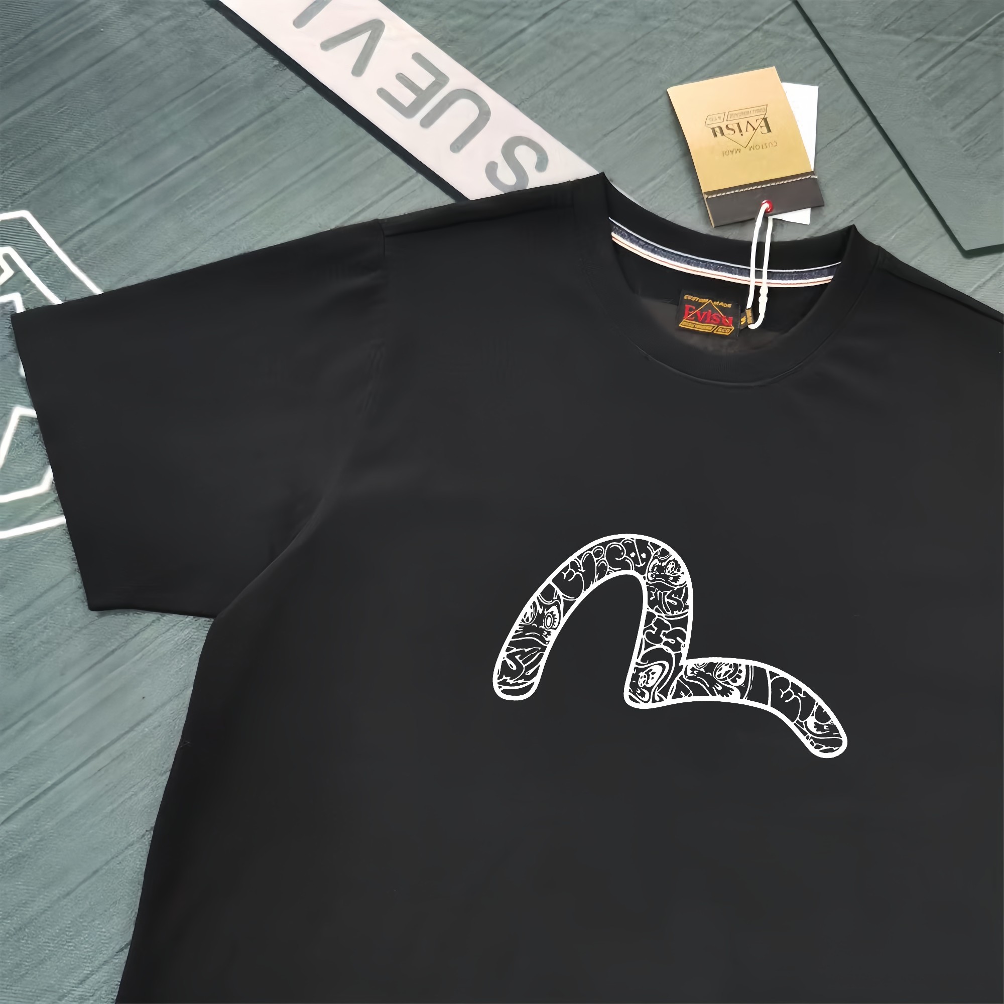 这款衣服是AAAAA 1:1 质量 (非常棒). 使用了和原版一模一样的材料. 商标部分也保持了和EVISU一样. 图片拍摄是实物衣服拍摄, 您所收到的实物保证和我们图片一模一样.