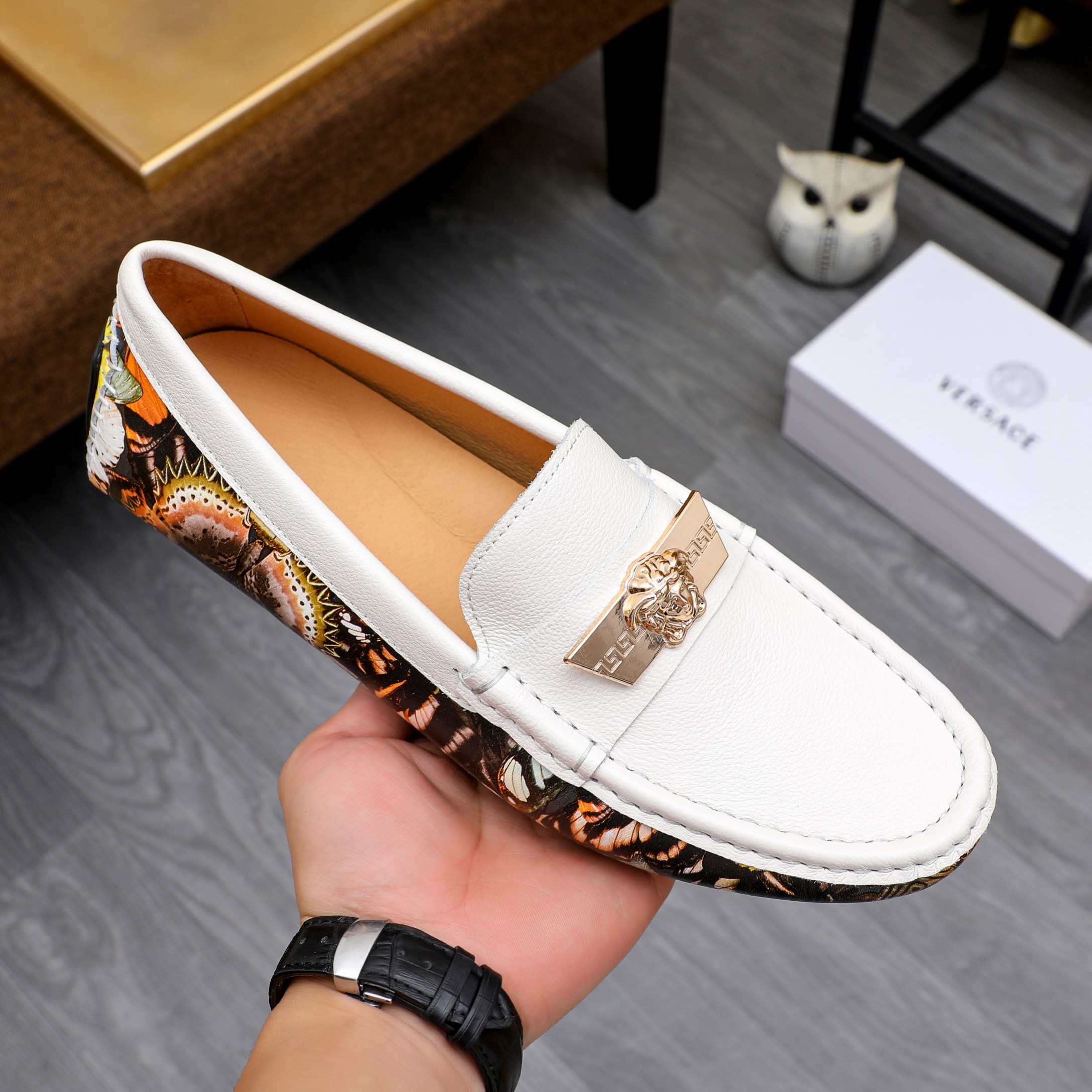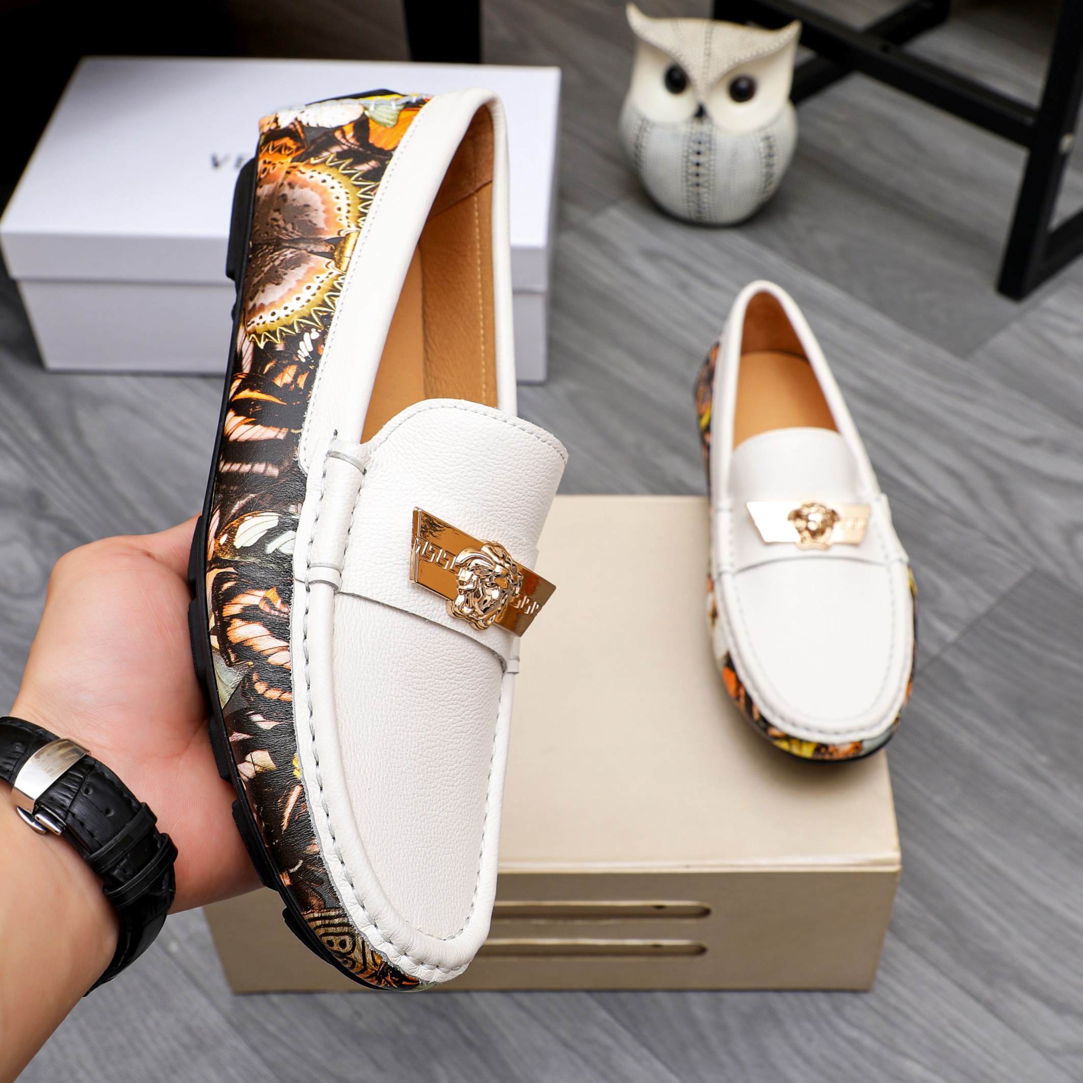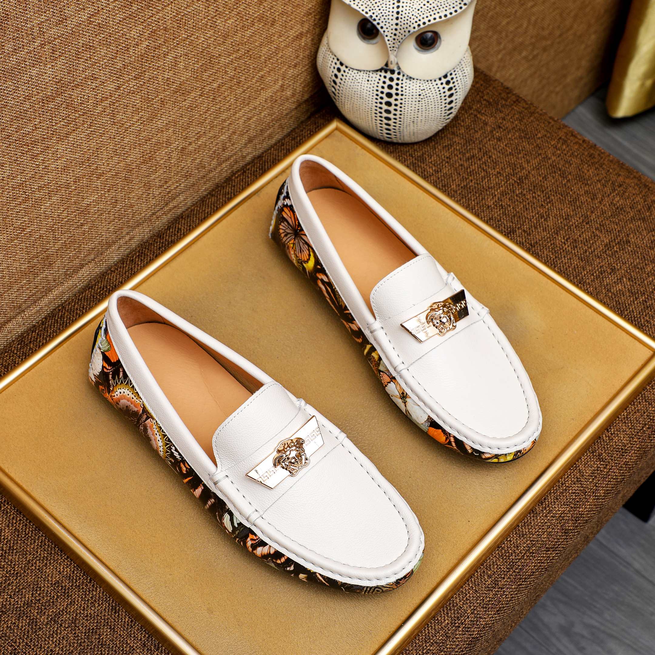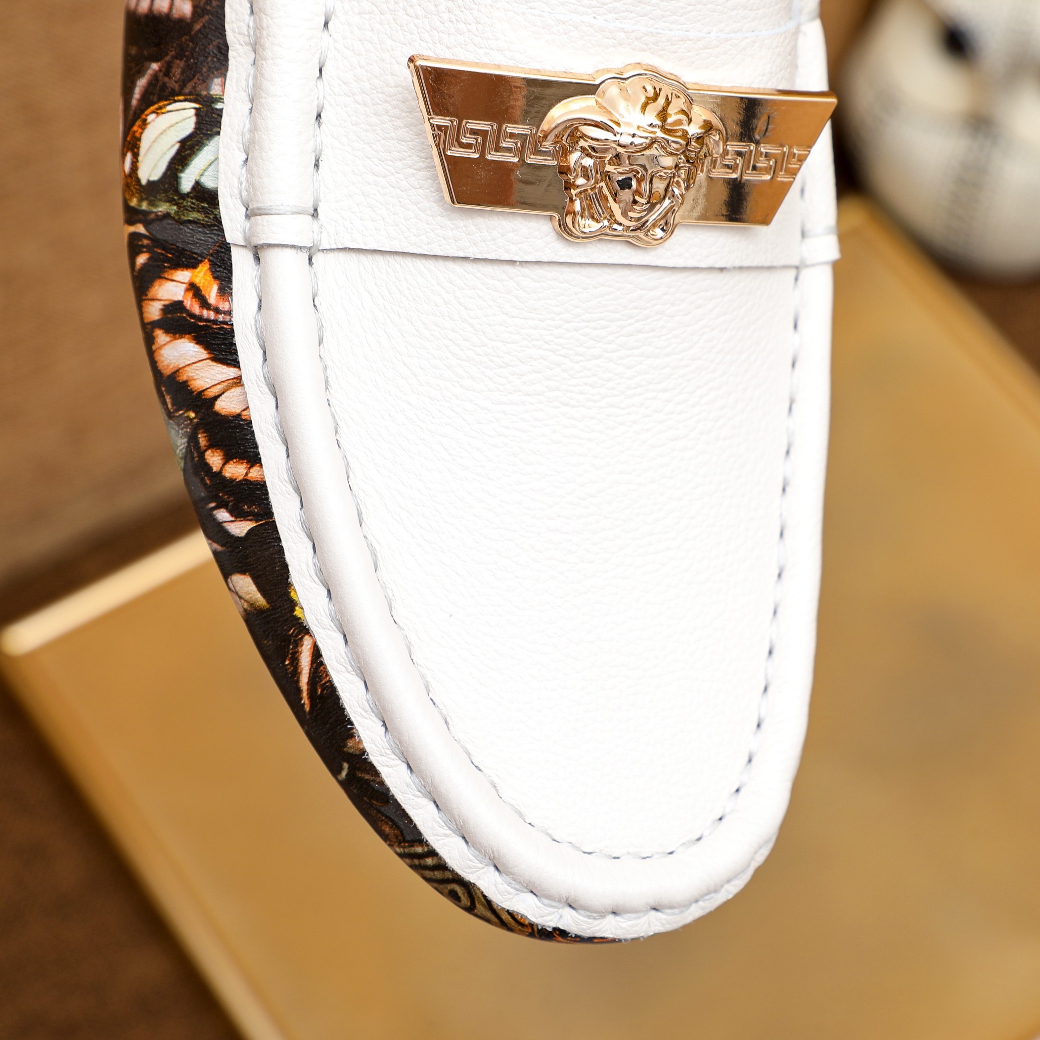 这款鞋子是AAAAA 1:1 质量 (非常棒). 使用了和原版一模一样的材料. 商标部分也保持了和范思哲/Versace一样. 图片拍摄是实物鞋子拍摄, 您所收到的实物保证和我们图片一模一样.