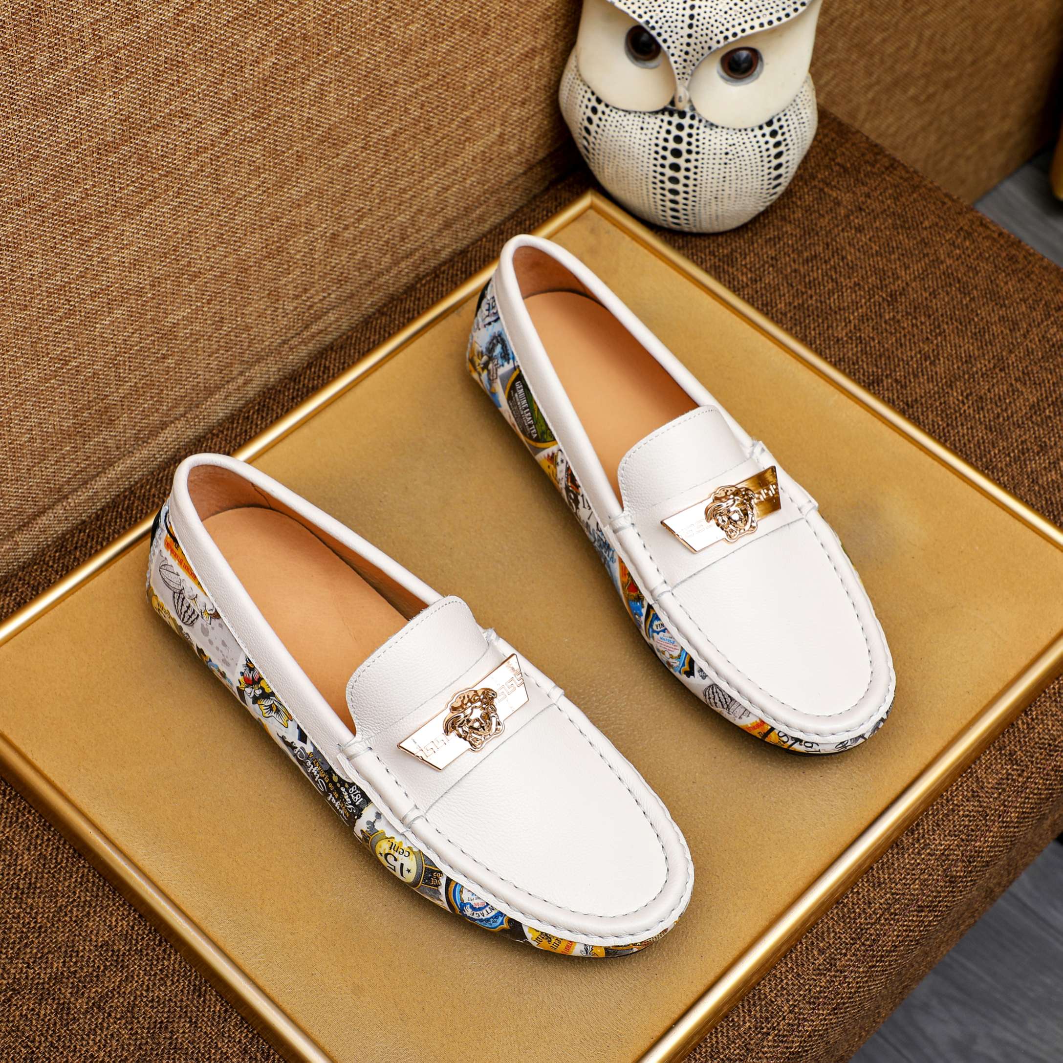 这款鞋子是AAAAA 1:1 质量 (非常棒). 使用了和原版一模一样的材料. 商标部分也保持了和范思哲/Versace一样. 图片拍摄是实物鞋子拍摄, 您所收到的实物保证和我们图片一模一样.