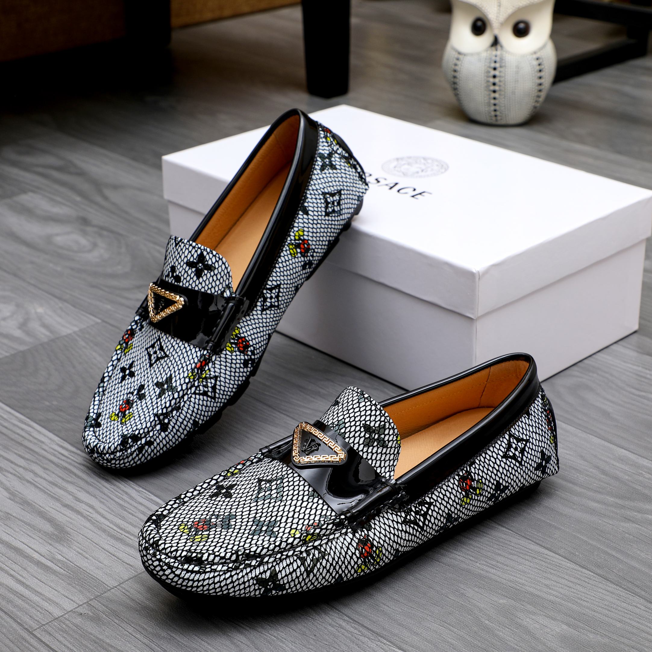 这款鞋子是AAAAA 1:1 质量 (非常棒). 使用了和原版一模一样的材料. 商标部分也保持了和范思哲/Versace一样. 图片拍摄是实物鞋子拍摄, 您所收到的实物保证和我们图片一模一样.