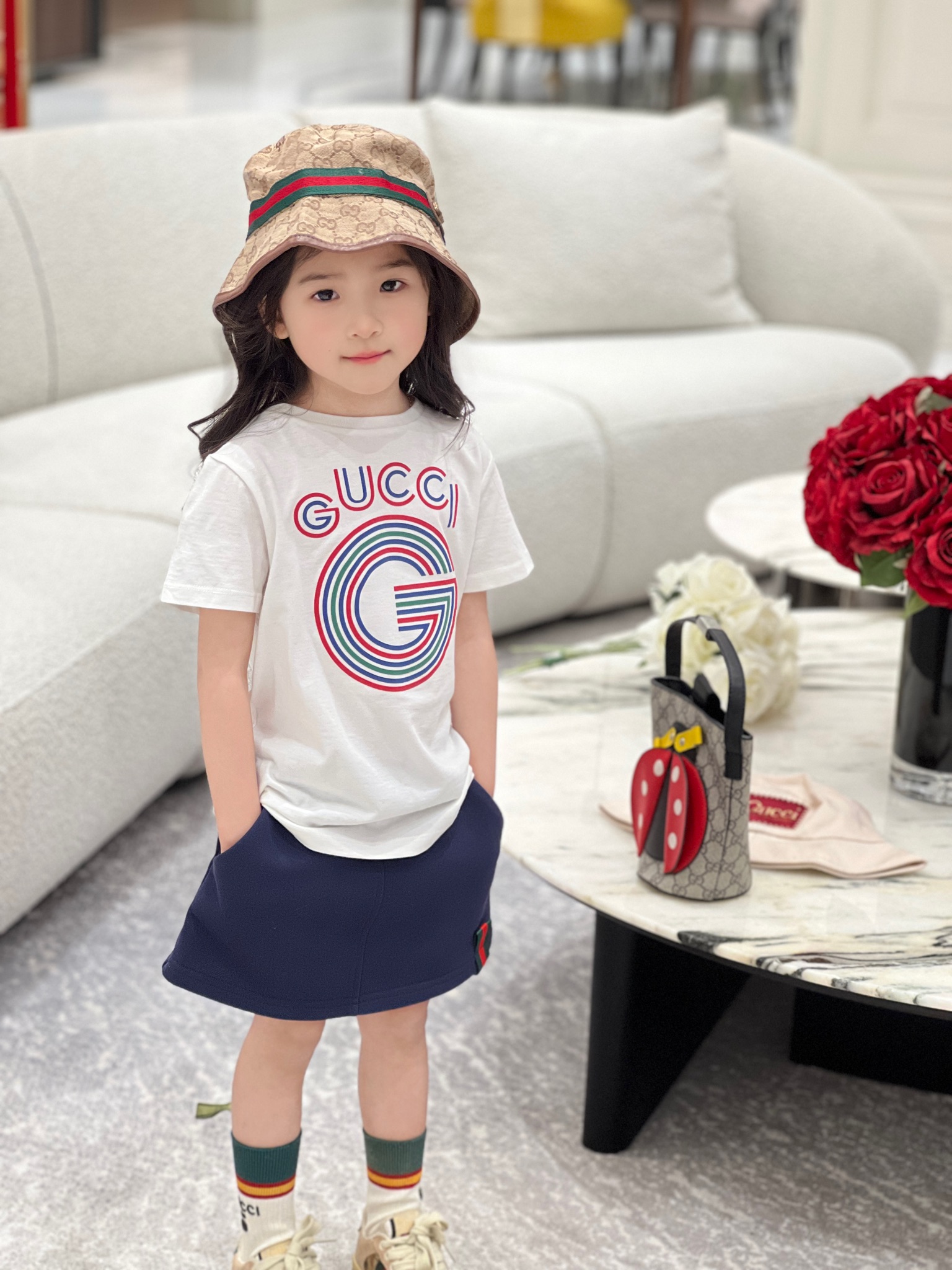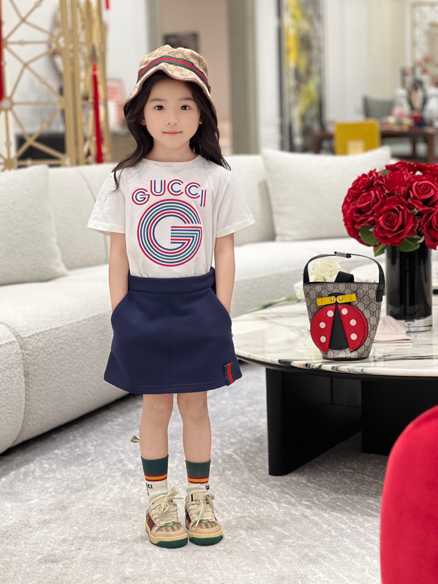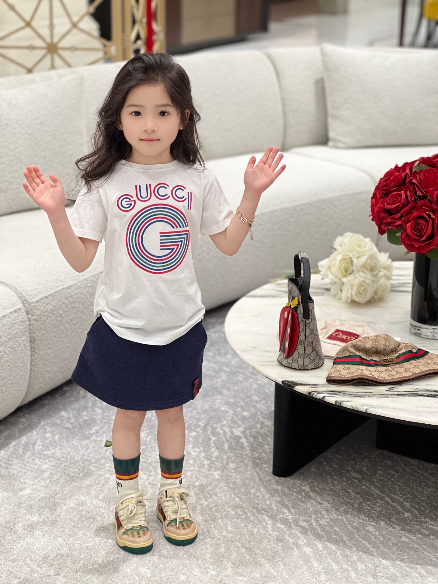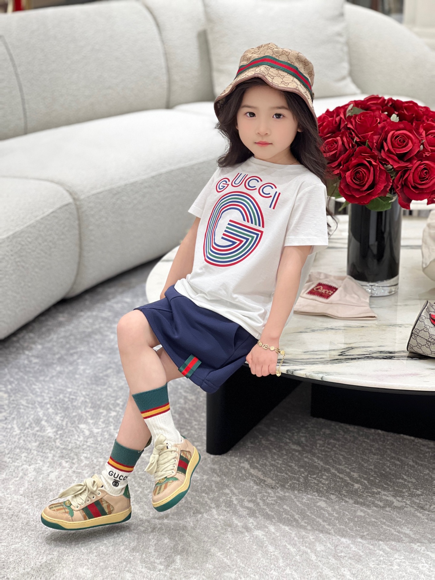 这款兒童鞋是AAAAA 1:1 质量 (非常棒). 使用了和原版一模一样的材料. 商标部分也保持了和古奇/Gucci一样. 图片拍摄是实物兒童鞋拍摄, 您所收到的实物保证和我们图片一模一样.